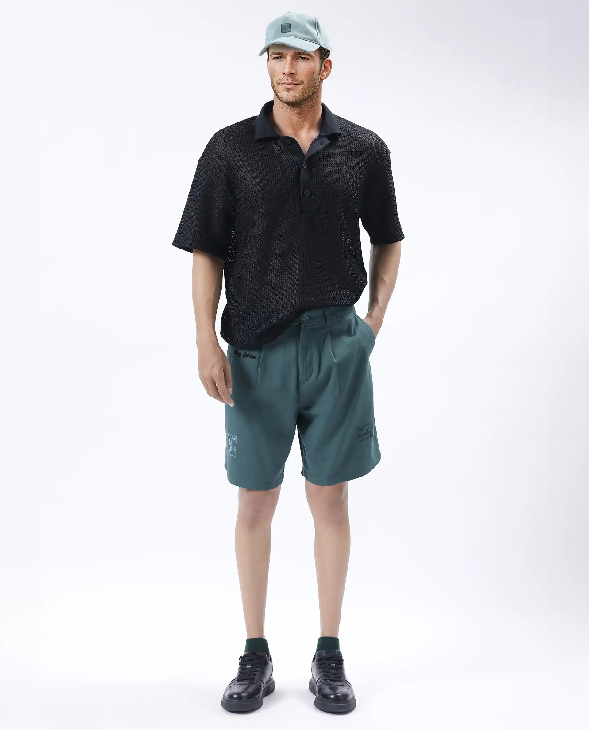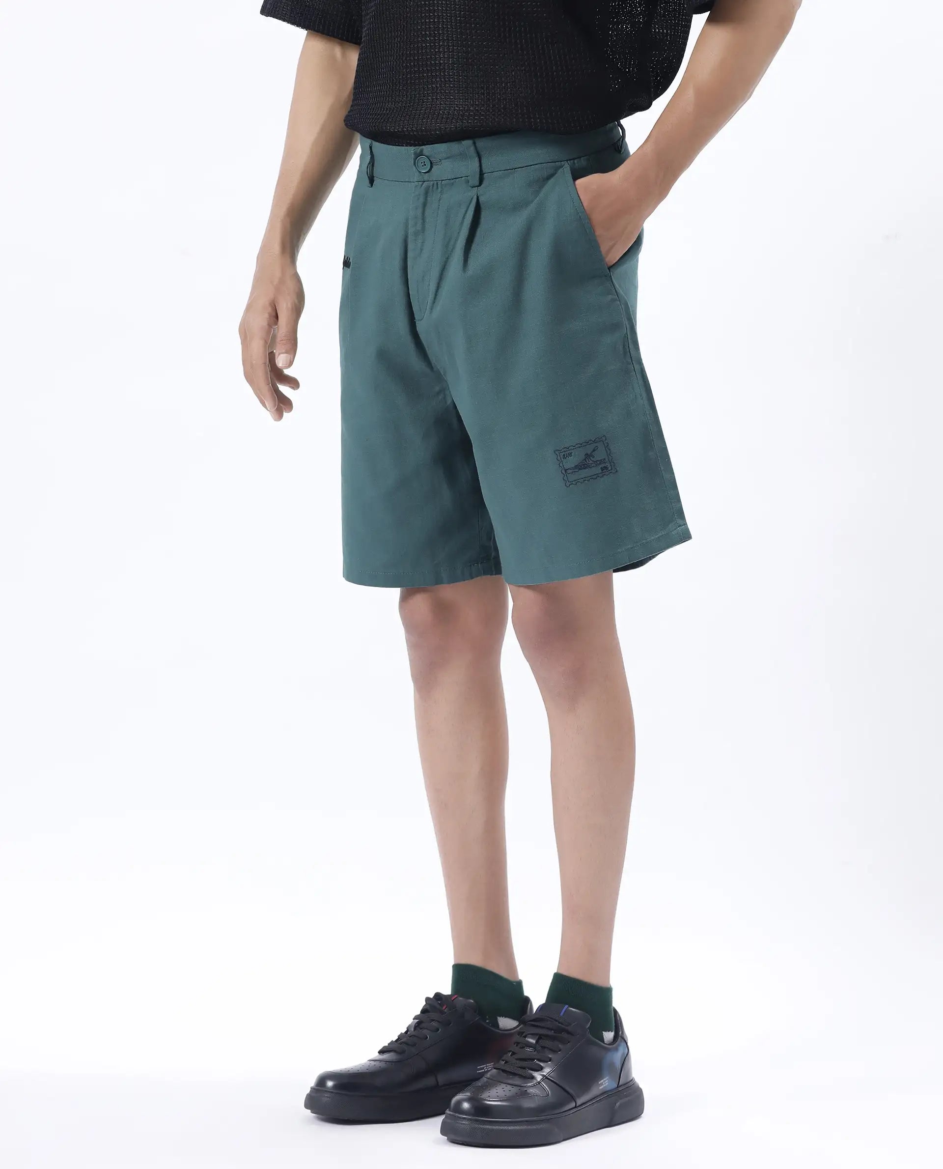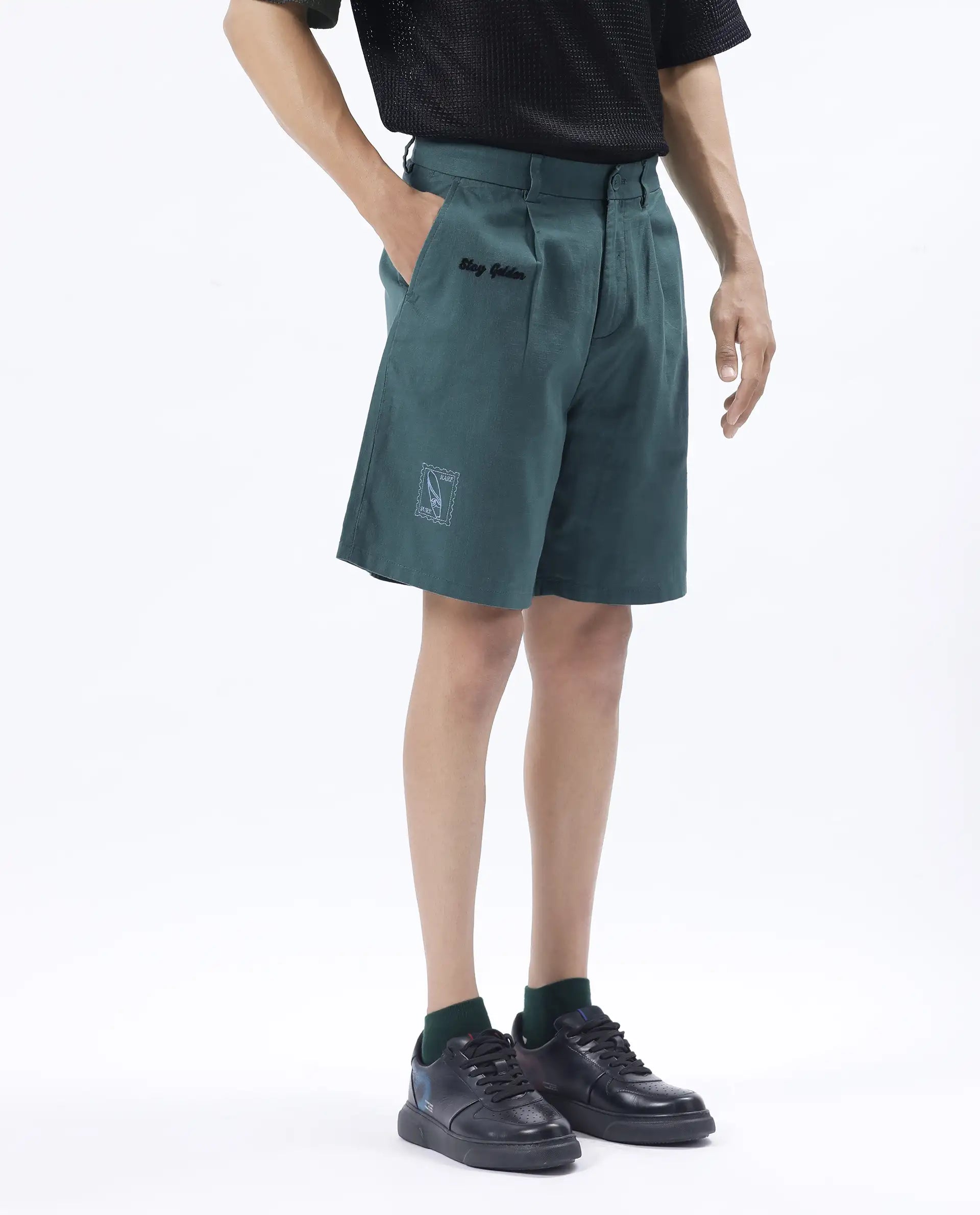 REGULAR FIT EMBROIDERED SHORTS