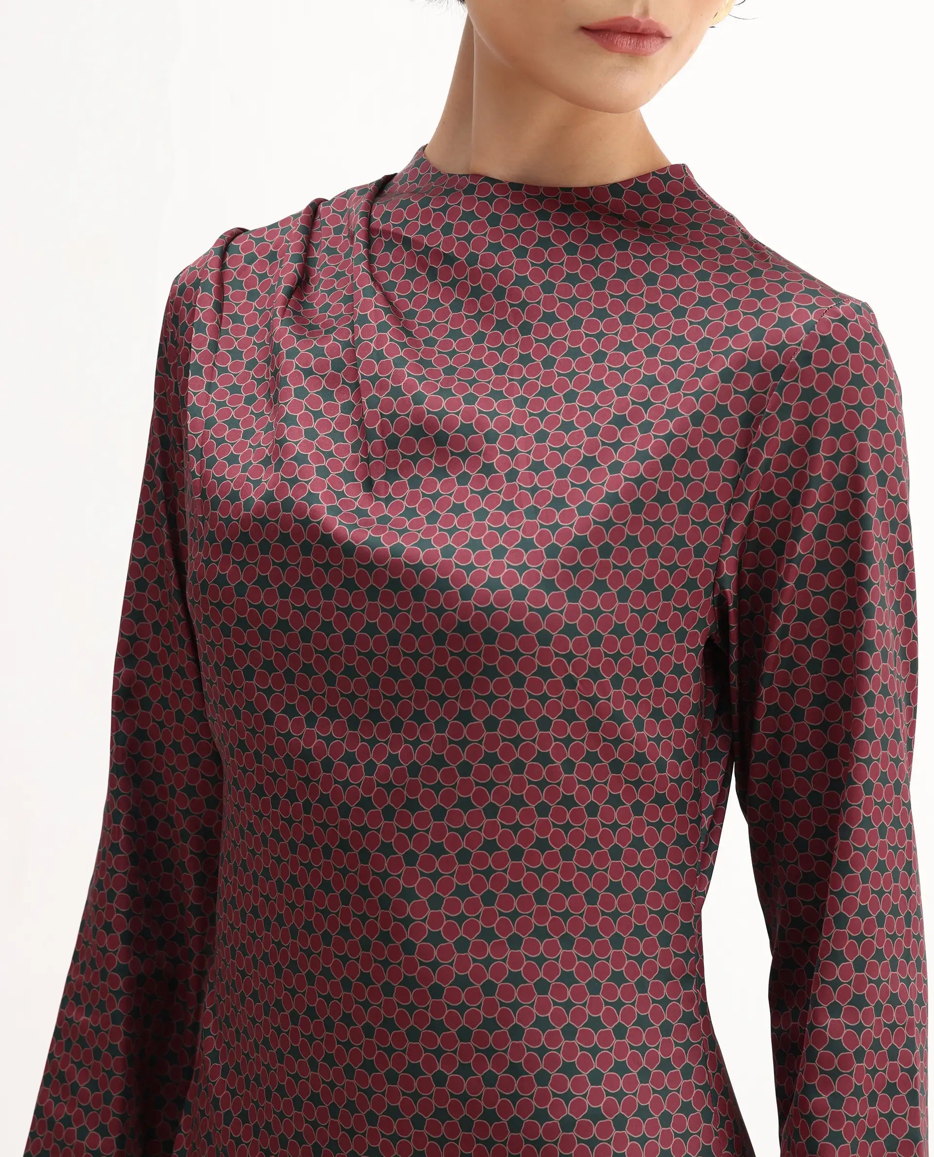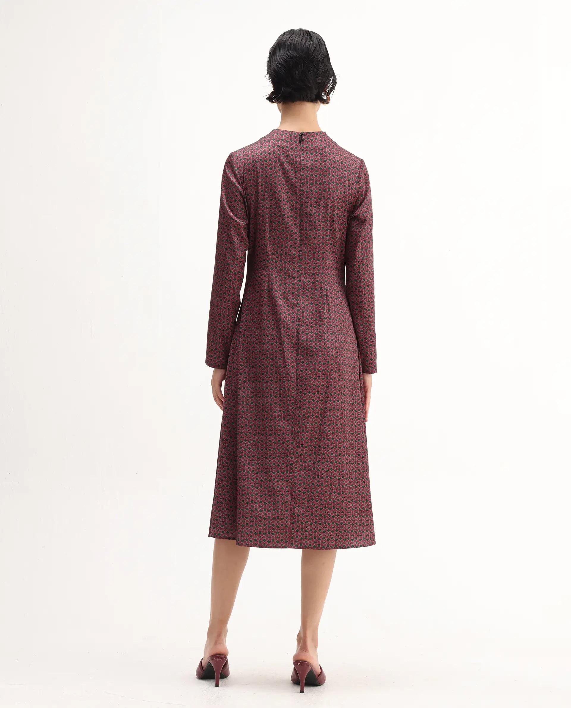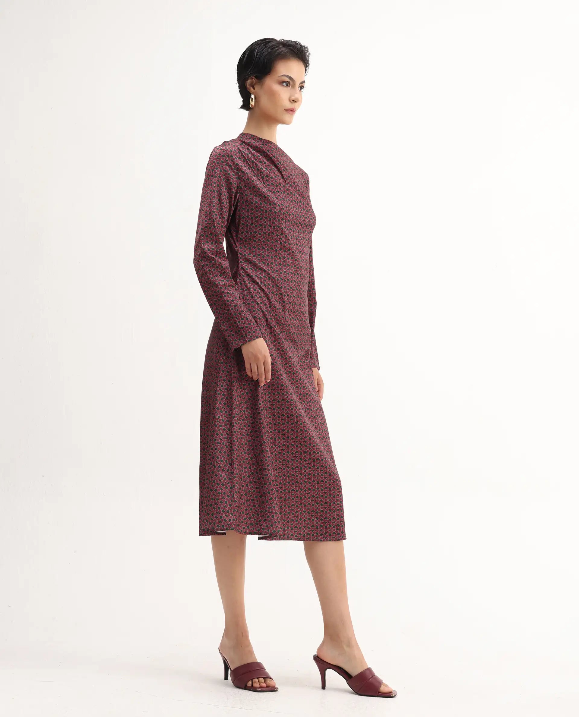 This Rareism midi dress features a fitted silhouette crafted from dark green polyester fabric, offering both comfort and durability. Its high neck and regular sleeves provide a refined look, while the zipper closure ensures easy wear. The geometric print adds a modern touch, making it an ideal choice for sophisticated day or evening occasions.
