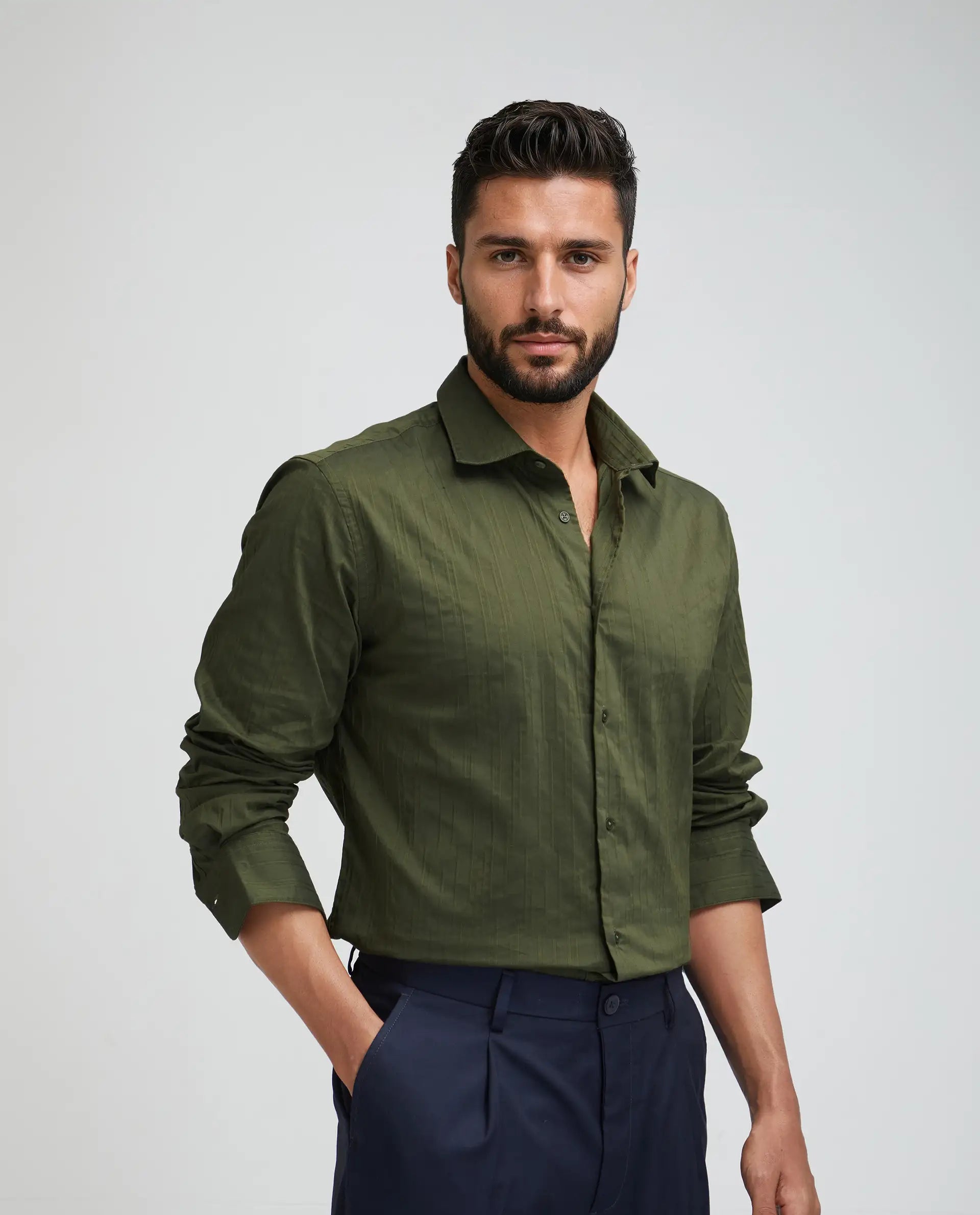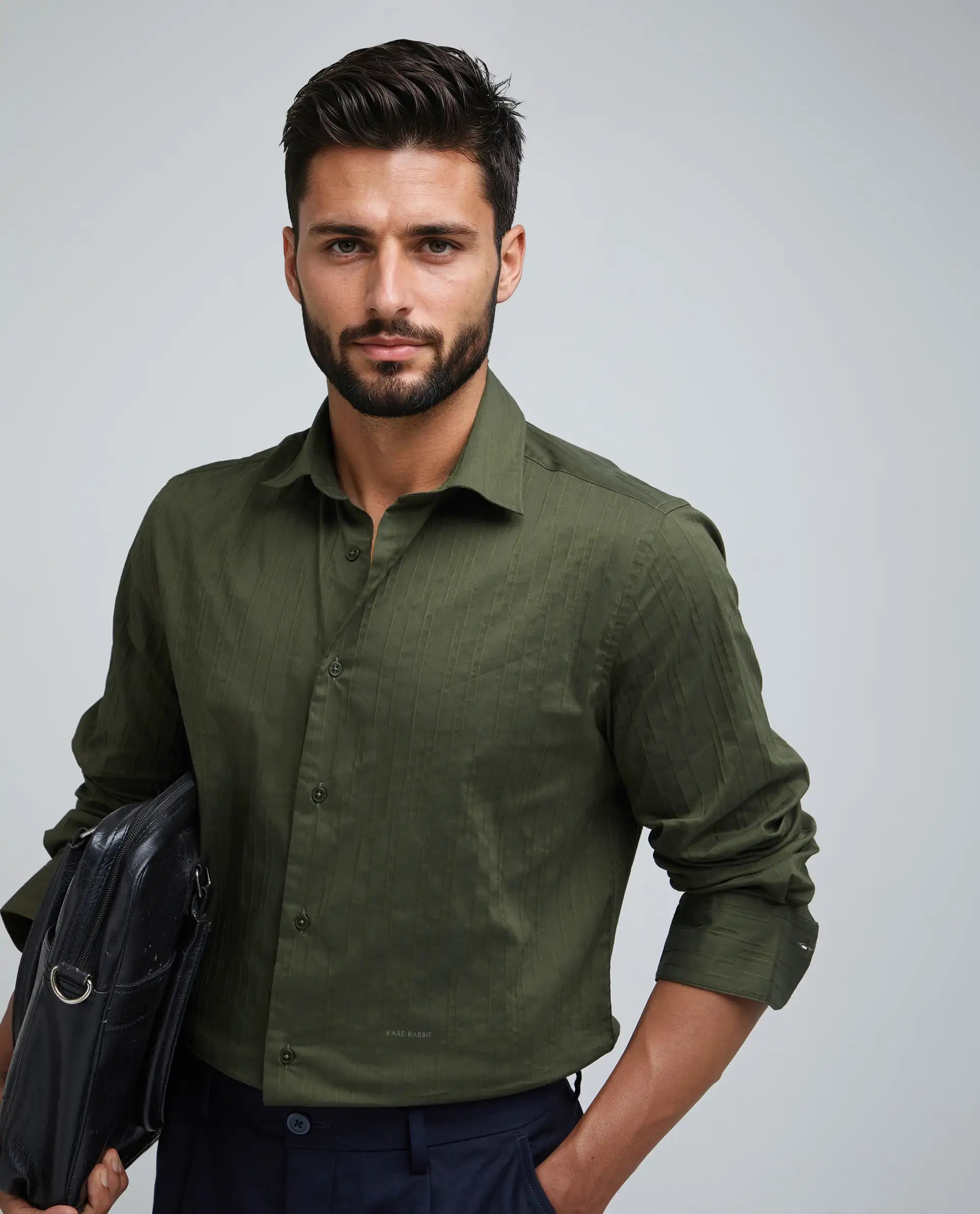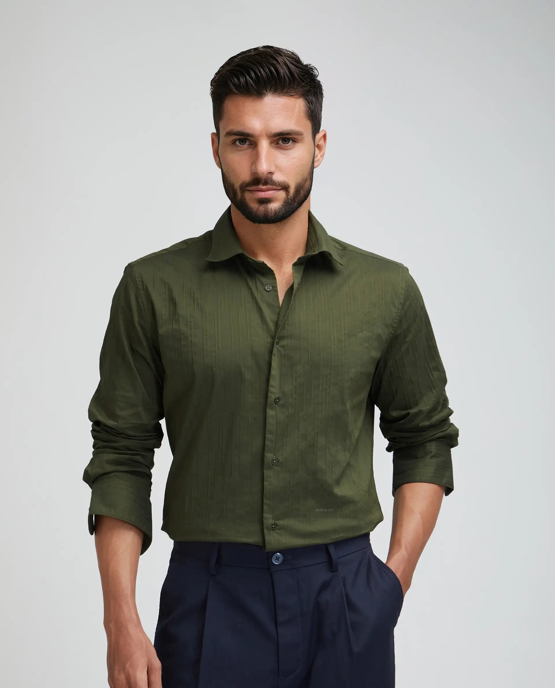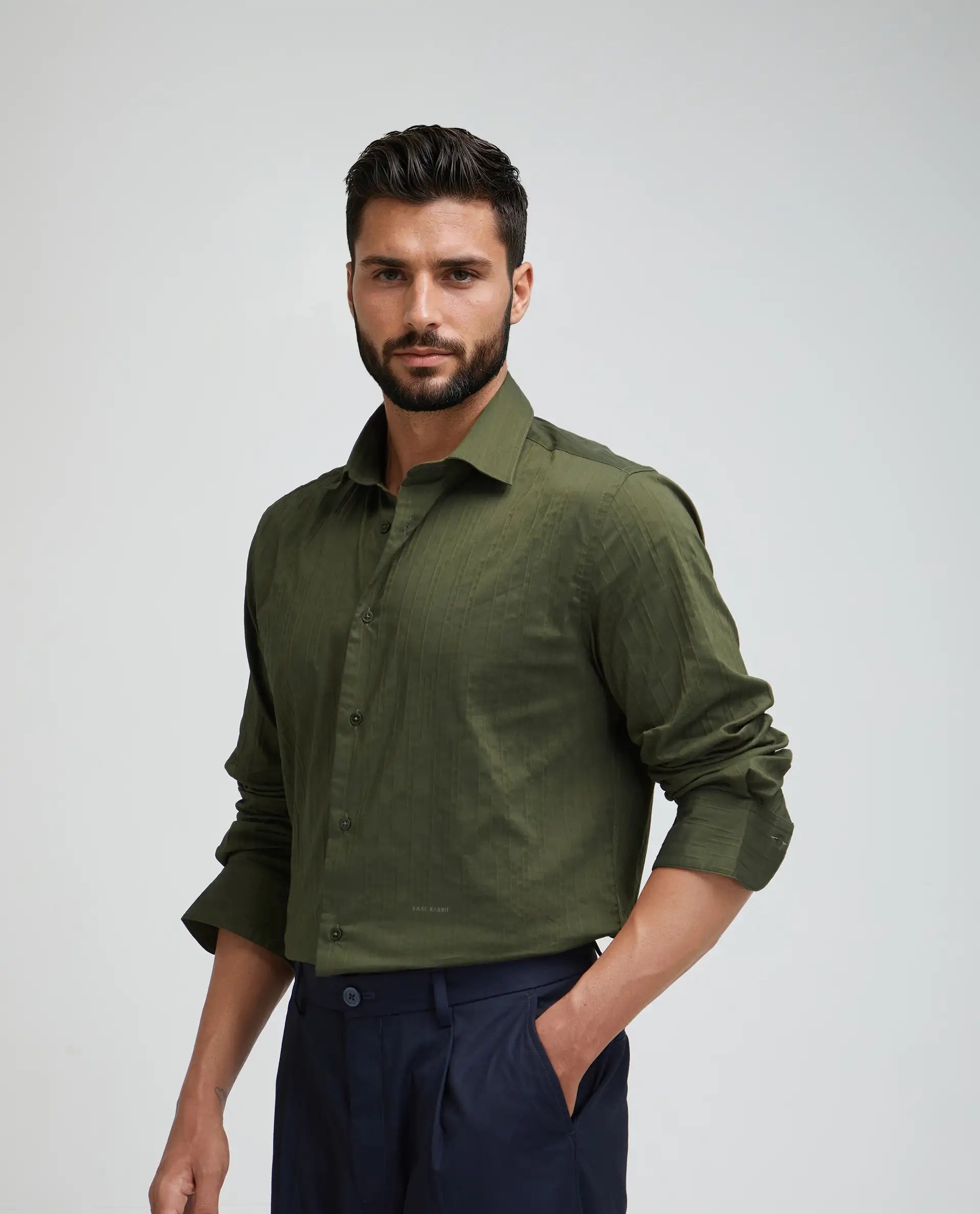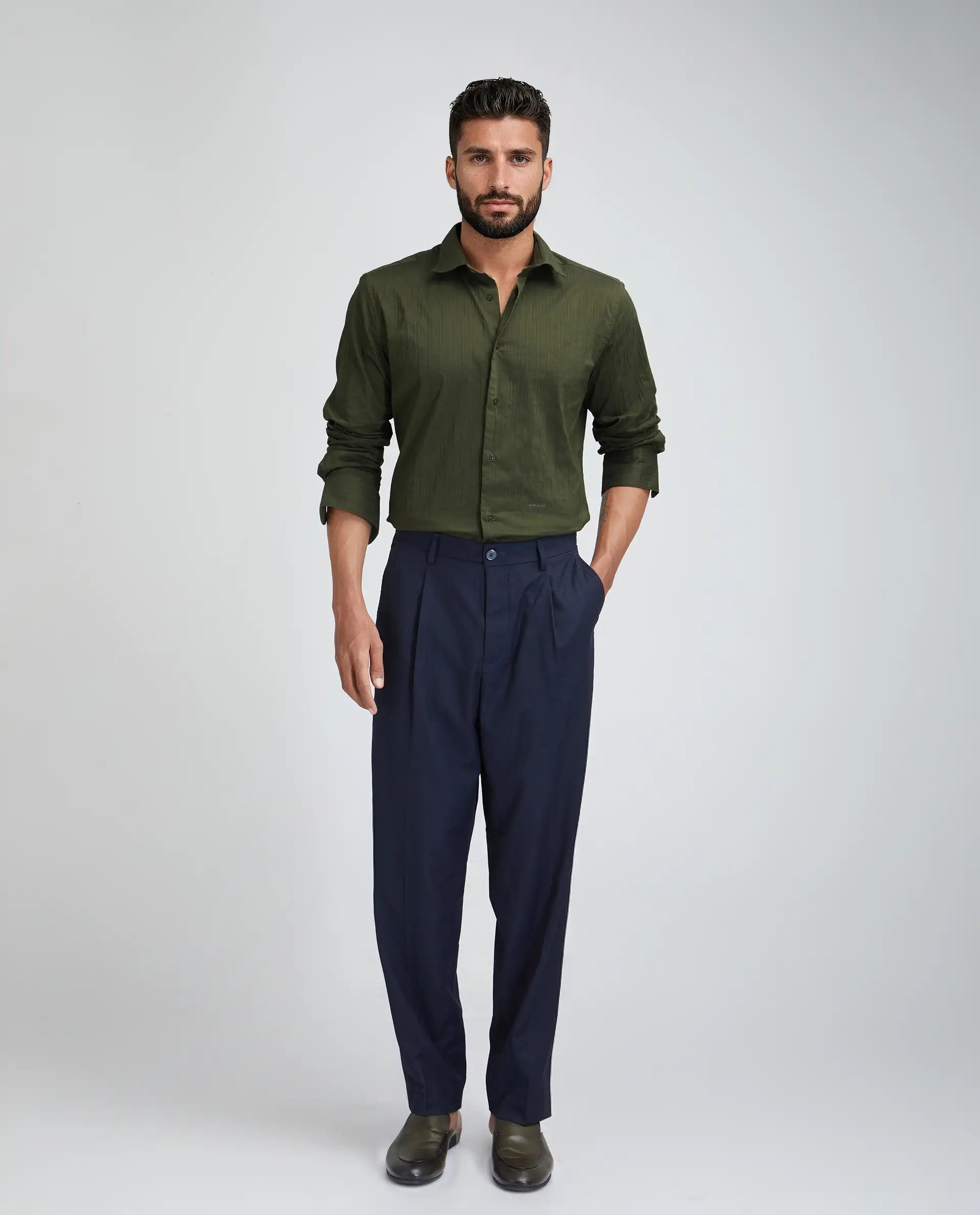 This mens shirt from RARE RABBIT carries a contemporary and minimal charm. Its neat styling keeps the outfit looking fresh and composed. A reliable pick for someone who prefers a soft, modern aesthetic.
