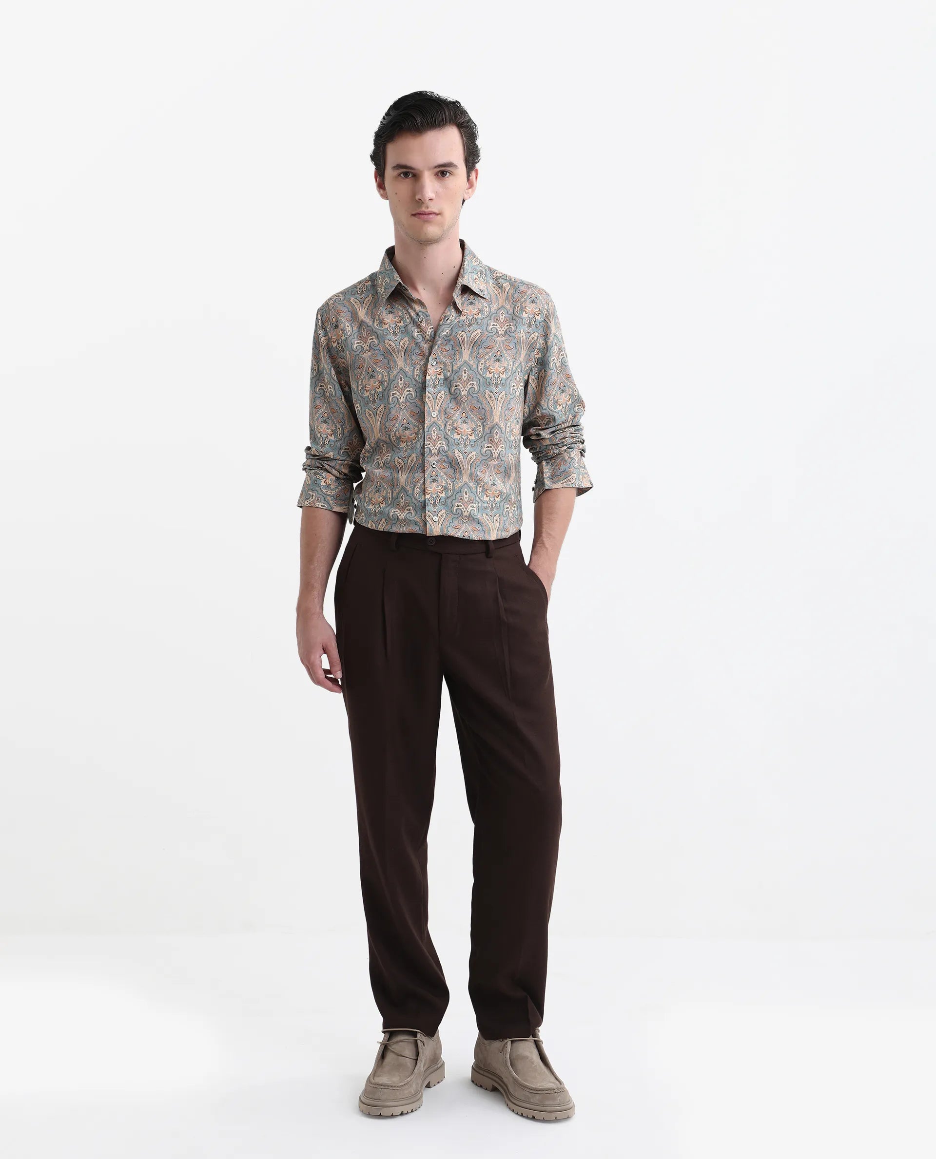 This mens shirt from RARE RABBIT carries a contemporary and minimal charm. Its neat styling keeps the outfit looking fresh and composed. A reliable pick for someone who prefers a soft, modern aesthetic.