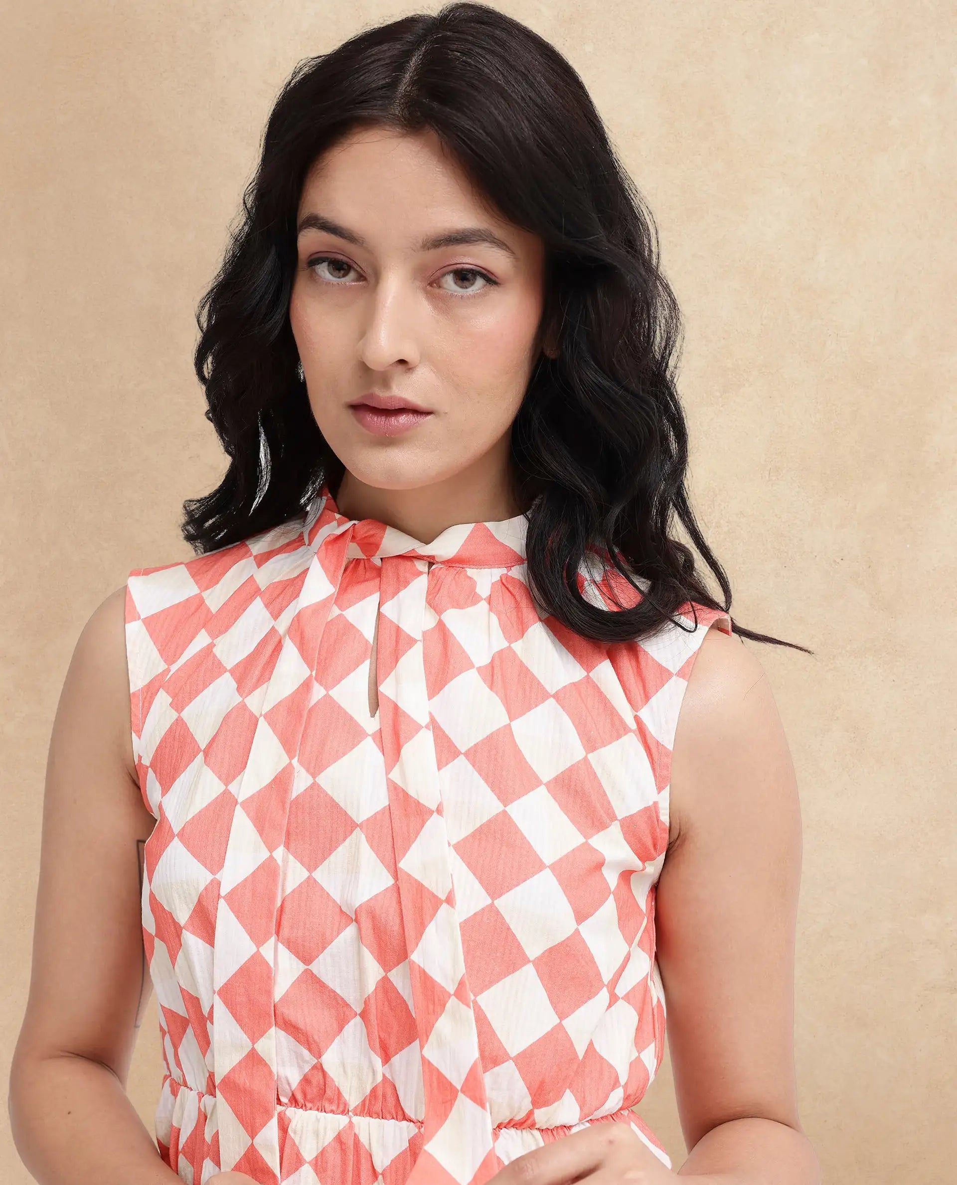 GEOMETRIC PRINT KNEE LENGTH DRESS