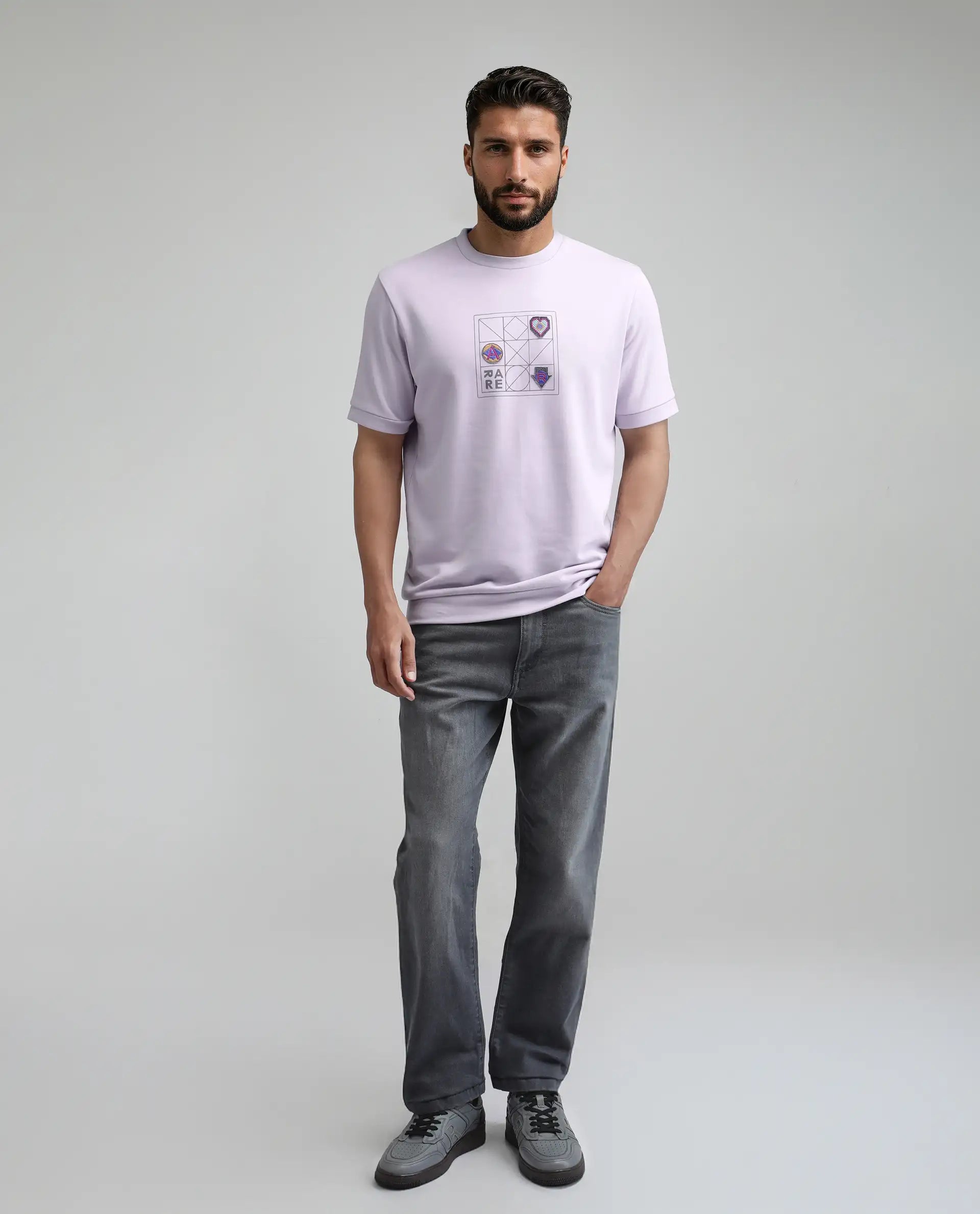 This mens t-shirt from RARE RABBIT carries a contemporary and minimal charm. Its neat styling keeps the outfit looking fresh and composed. A reliable pick for someone who prefers a soft, modern aesthetic.