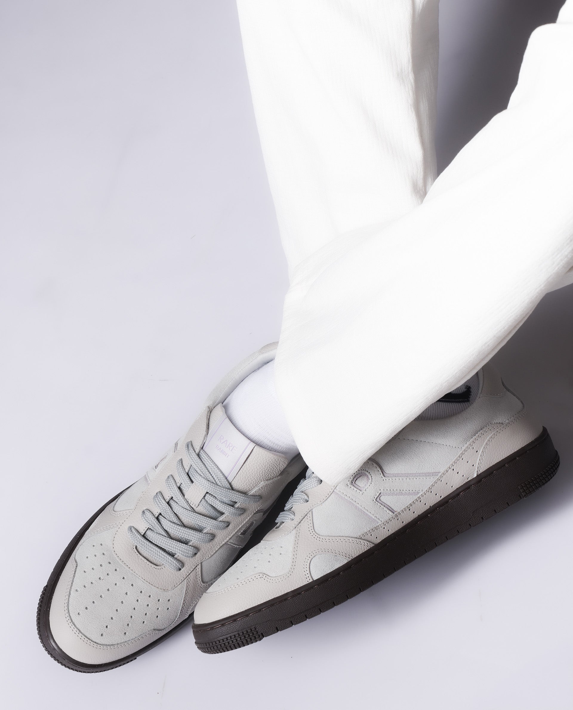 Introducing the Kepler Pro Light Grey Plain Shoes for men by Rare Rabbit. These sneakers are designed to elevate your style and provide ultimate comfort. With its sleek design and unique color, you'll stand out from the crowd. Stay trendy, stay comfortable, stay quirky.