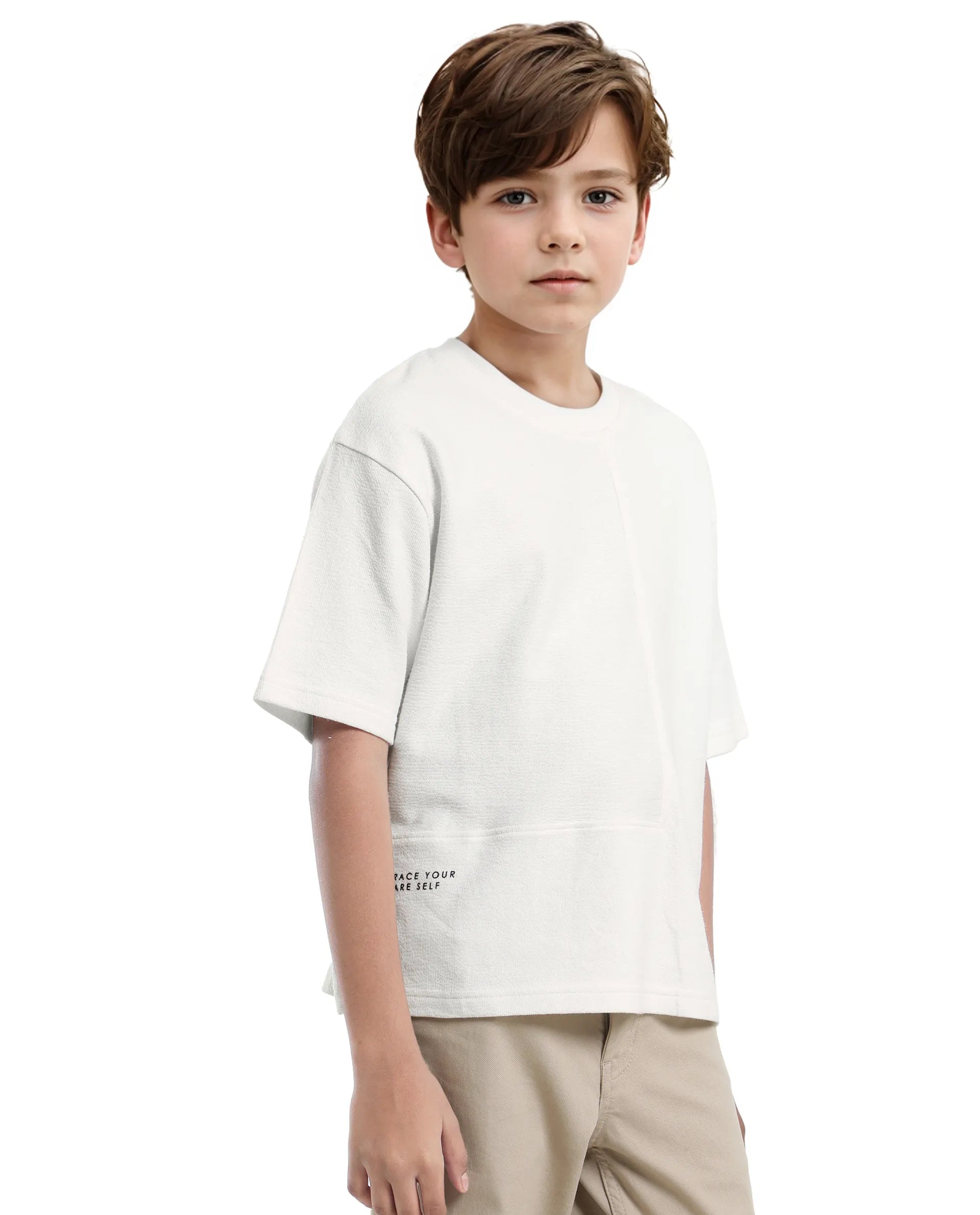 This boys t-shirt from RARE ONES carries a contemporary and minimal charm. Its neat styling keeps the outfit looking fresh and composed. A reliable pick for someone who prefers a soft, modern aesthetic.