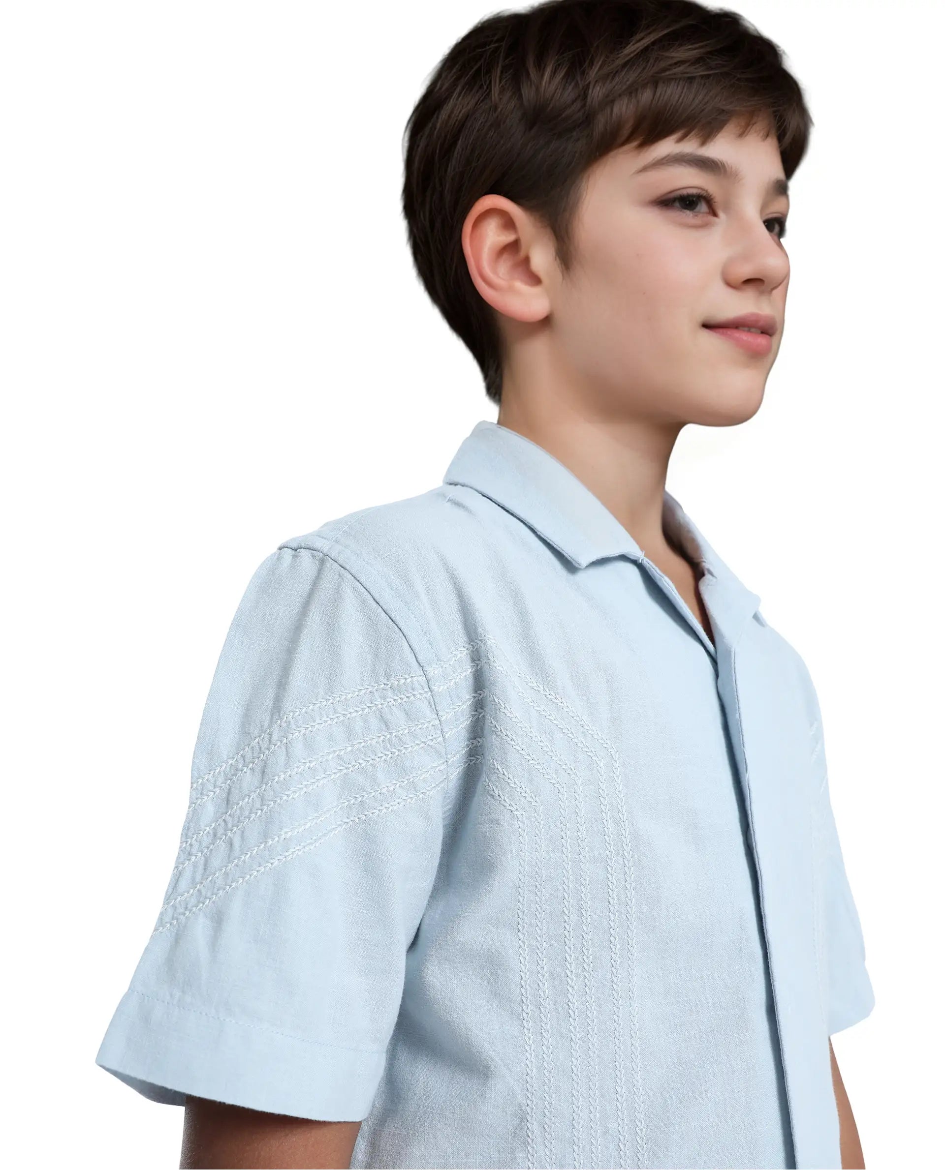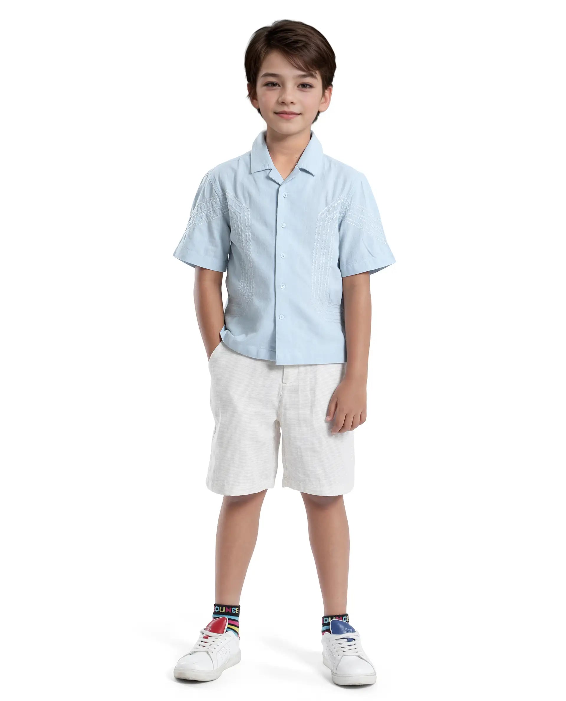 This boys shirt from RARE ONES carries a contemporary and minimal charm. Its neat styling keeps the outfit looking fresh and composed. A reliable pick for someone who prefers a soft, modern aesthetic.