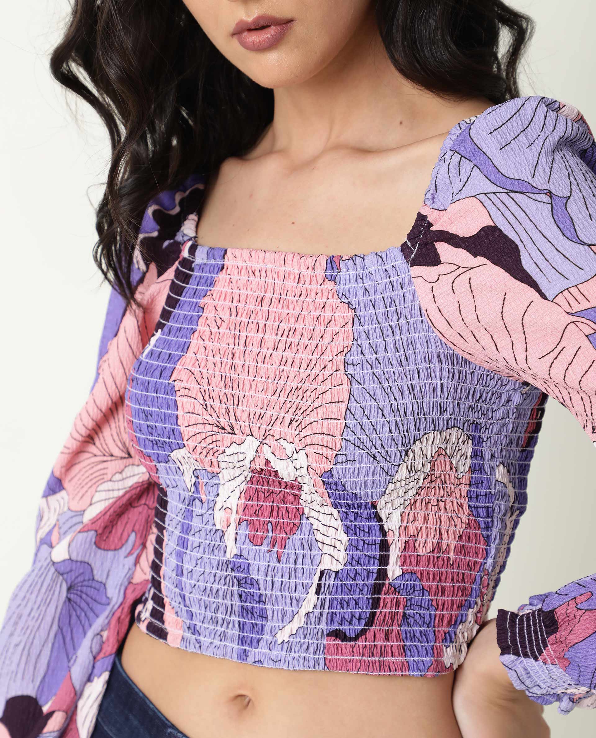 -With square neckline with a small frill trim and narrow, covered elicitation around the shoulders.