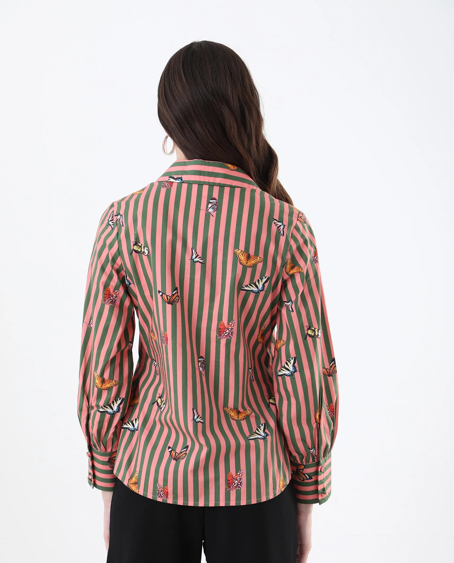 1. Features a unique stripe pattern paired with a vibrant butterfly print for a bold, playful look.