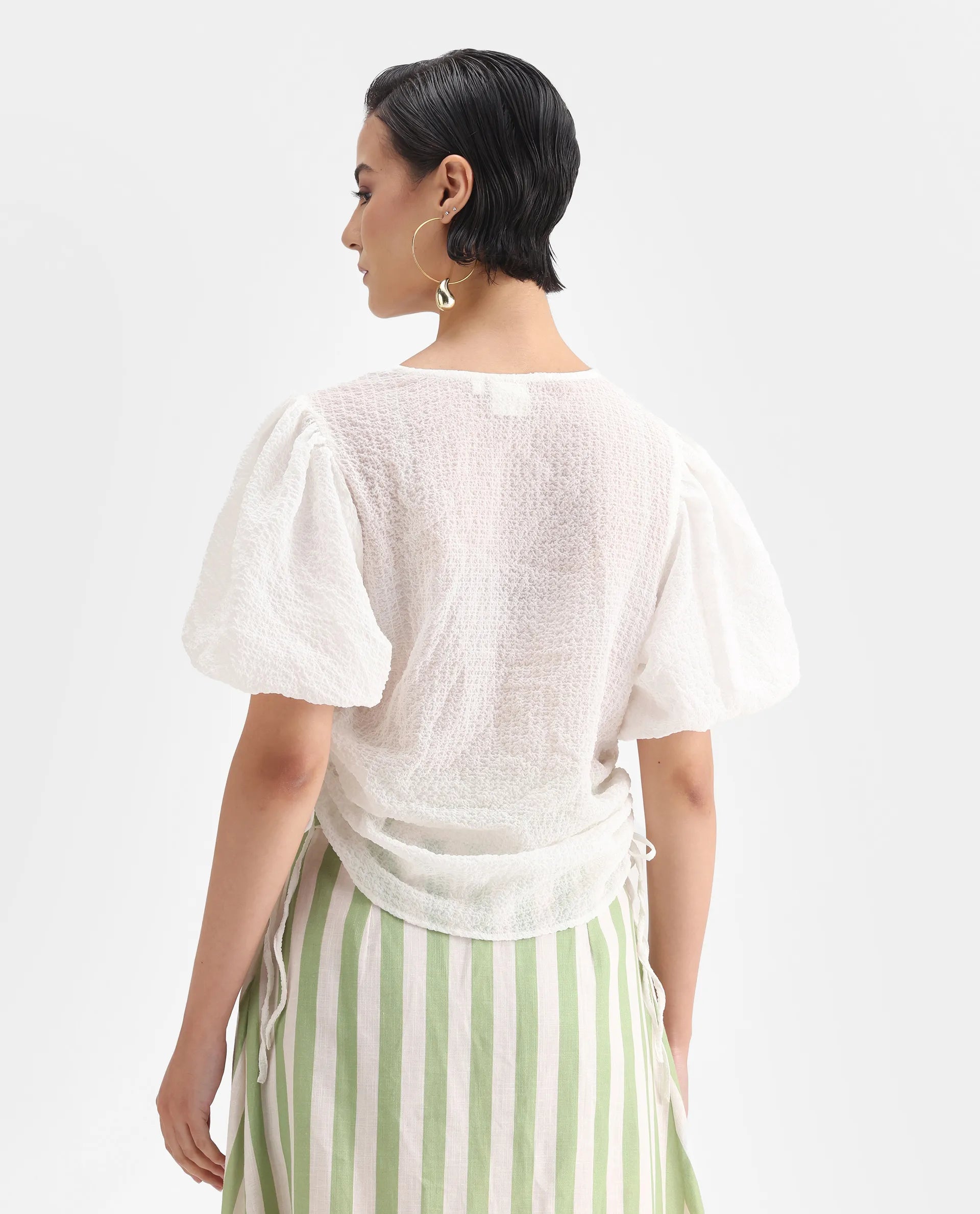 This top effortlessly combines playful style with classic elegance, making it a must-have for any wardrobe.