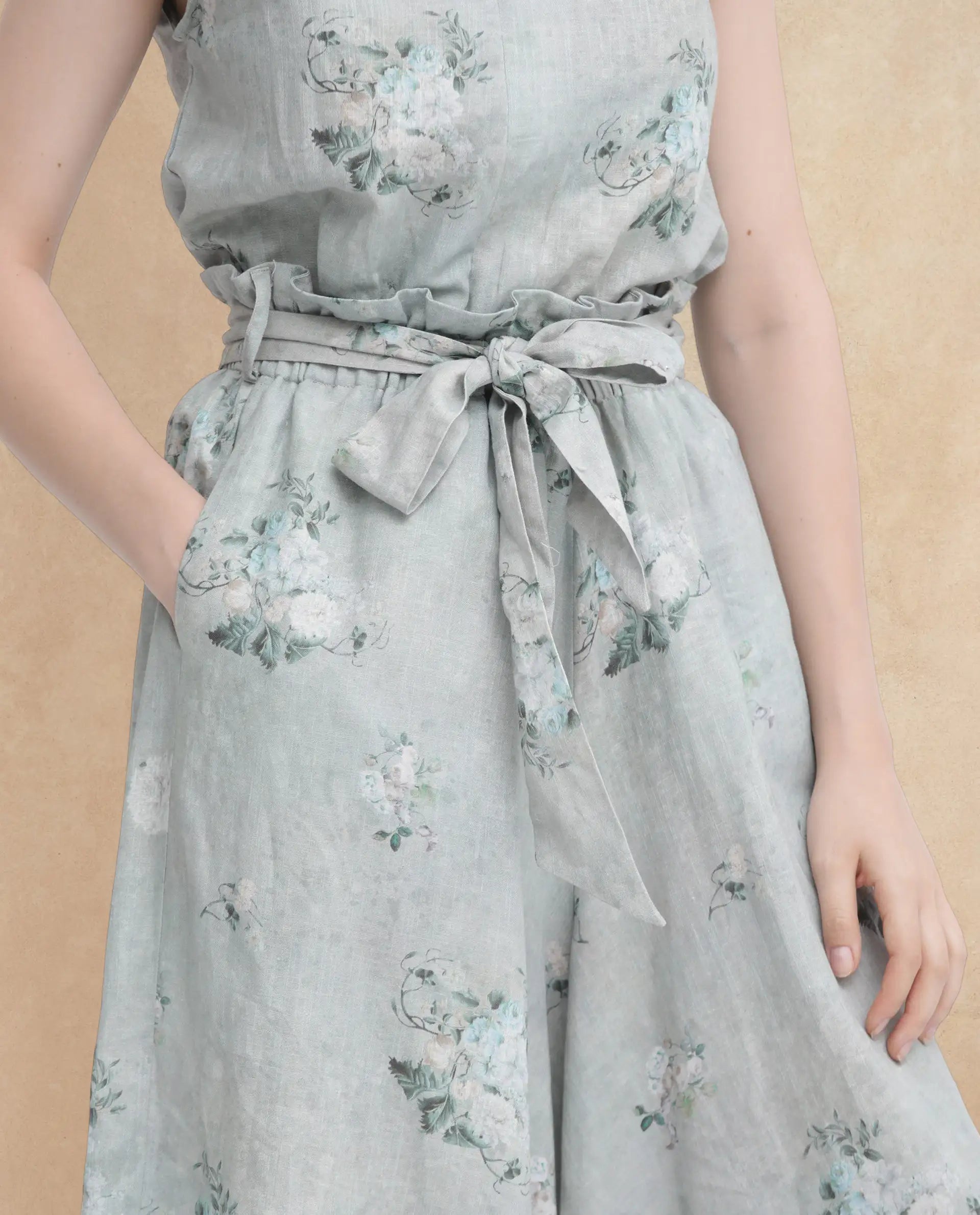 3. The elasticated waist with a self-fabric belt ensures a comfortable fit, while the flared hem adds a playful flair to your look. - Everyday linen trousers adorned with a charming floral print - Wide-leg pants for a flattering silhouette - Elasticated waist with self-fabric belt for a comfortable fit - Flared hem adds a playful touch - Mid-waist design offers versatility Pair these chic trousers with a tucked-in blouse or a fitted top for effortless style. Perfect for casual outings, brunch with friends, or even a day at the office. Dress them up with heels or keep it casual with sandals for a versatile look that transitions seamlessly from day to night.