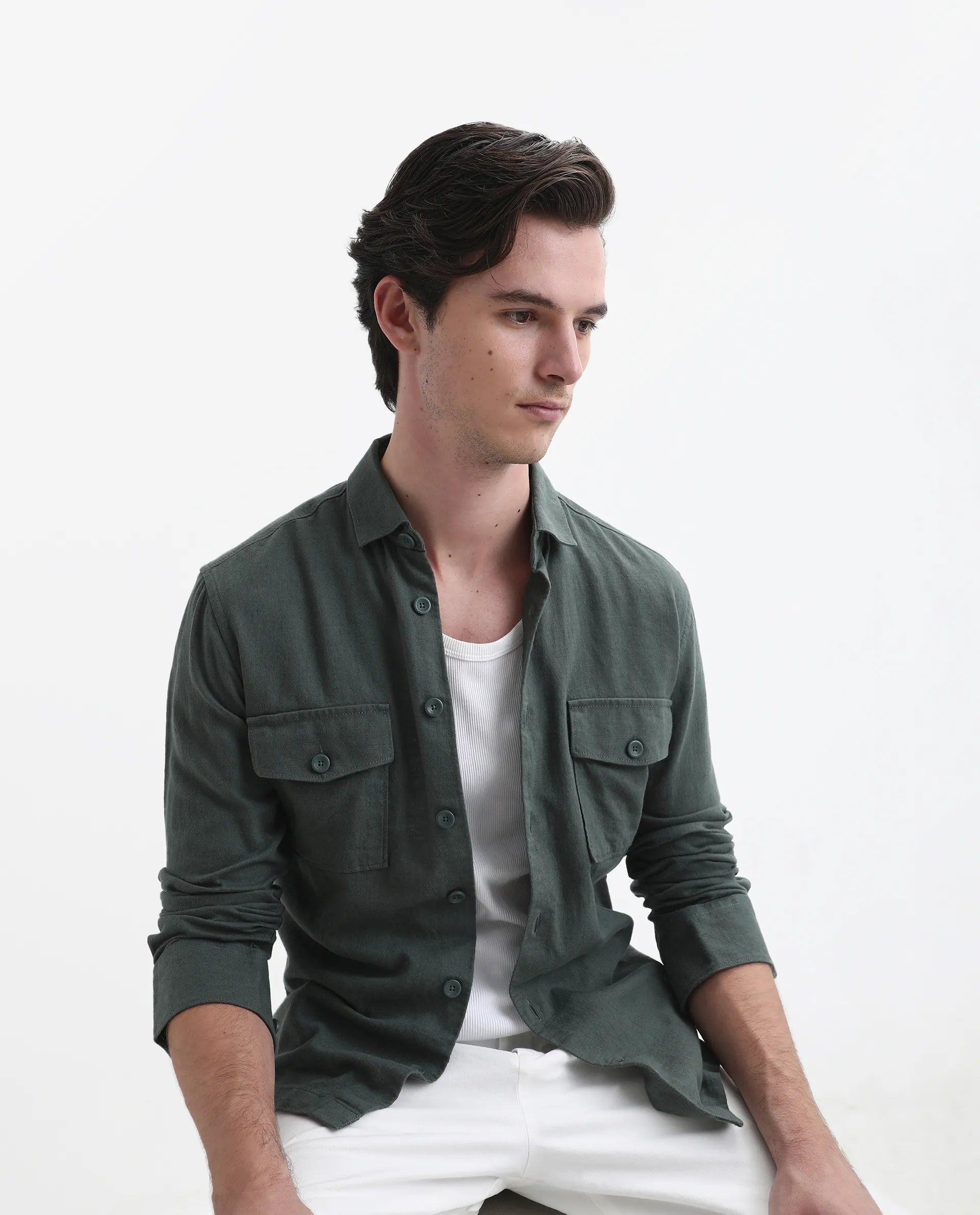 This mens shirt from RARE RABBIT carries a contemporary and minimal charm. Its neat styling keeps the outfit looking fresh and composed. A reliable pick for someone who prefers a soft, modern aesthetic.