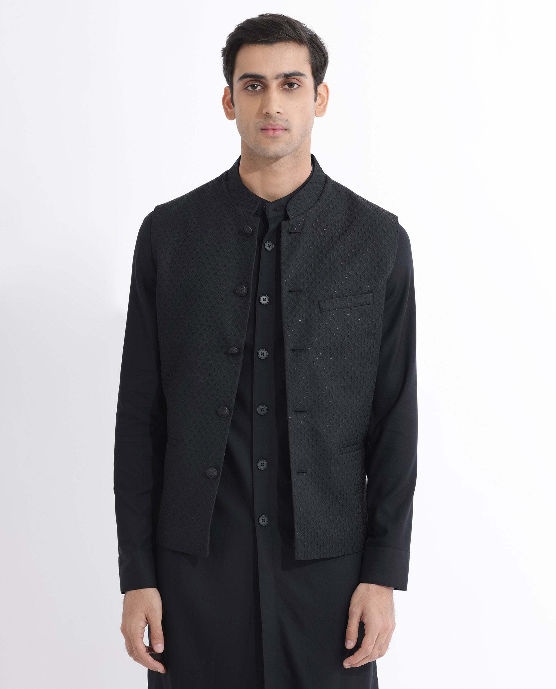 MANDARIN COLLAR EMBROIDERED BANDHGALA