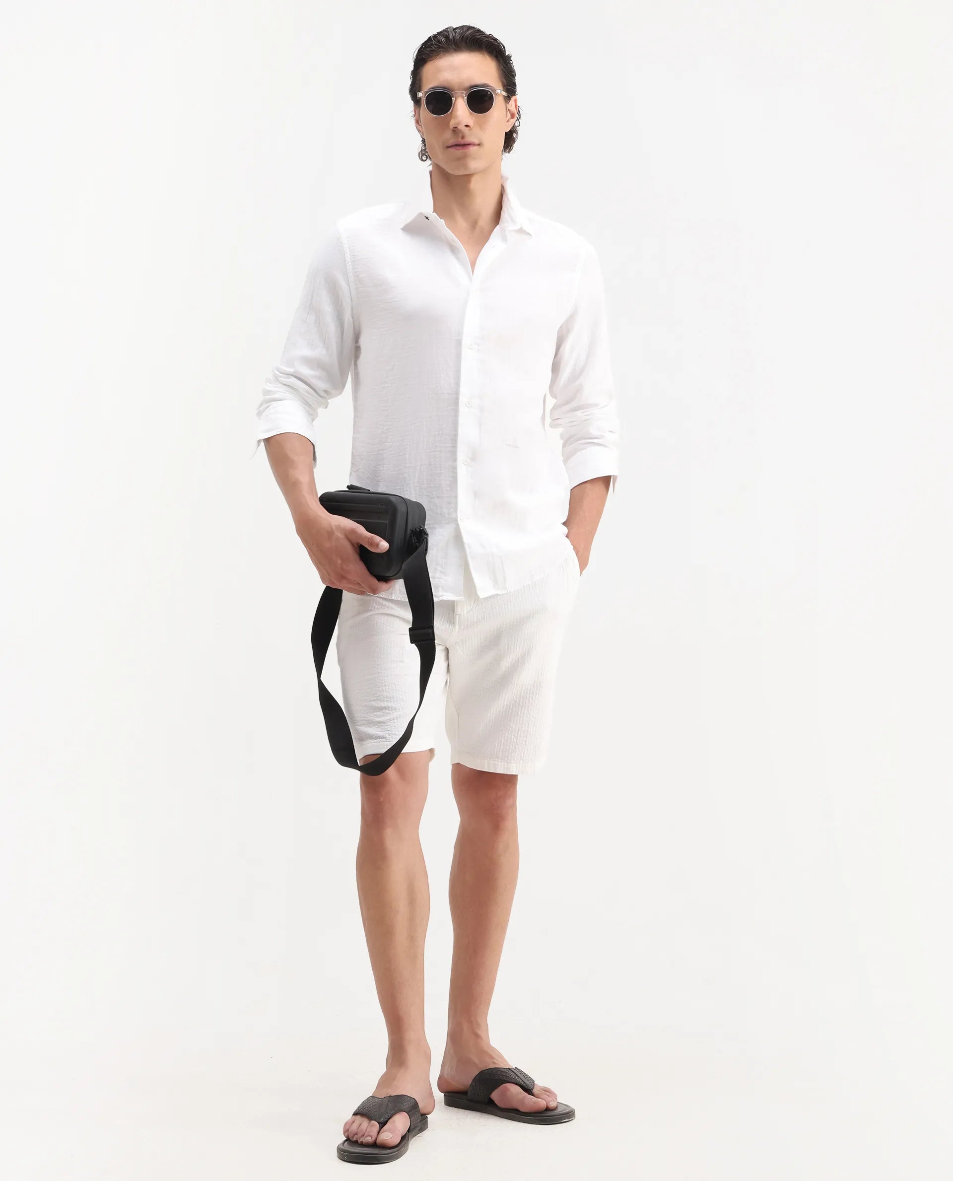 This mens shirt from RARE RABBIT carries a contemporary and minimal charm. Its neat styling keeps the outfit looking fresh and composed. A reliable pick for someone who prefers a soft, modern aesthetic.