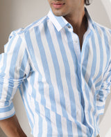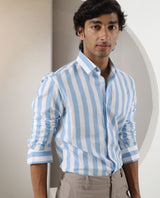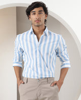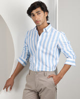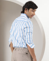 Rare Rabbit Men's Leeds Blue Cotton Fabric Full Sleeves Striped Shirt