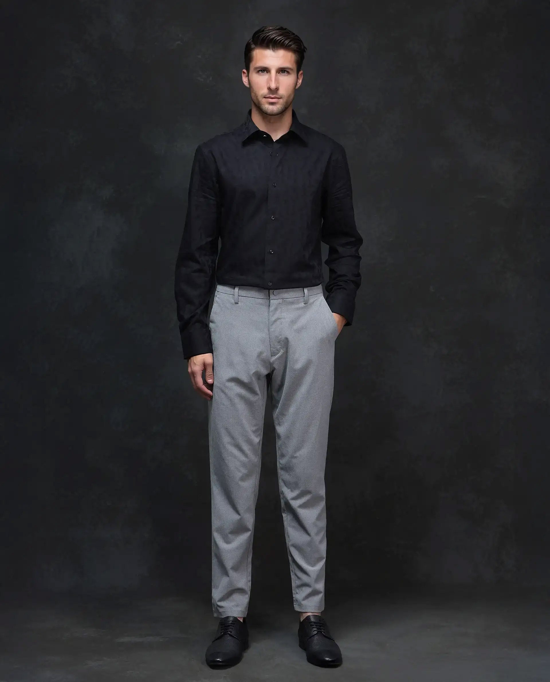This mens shirt from RARE RABBIT carries a contemporary and minimal charm. Its neat styling keeps the outfit looking fresh and composed. A reliable pick for someone who prefers a soft, modern aesthetic.