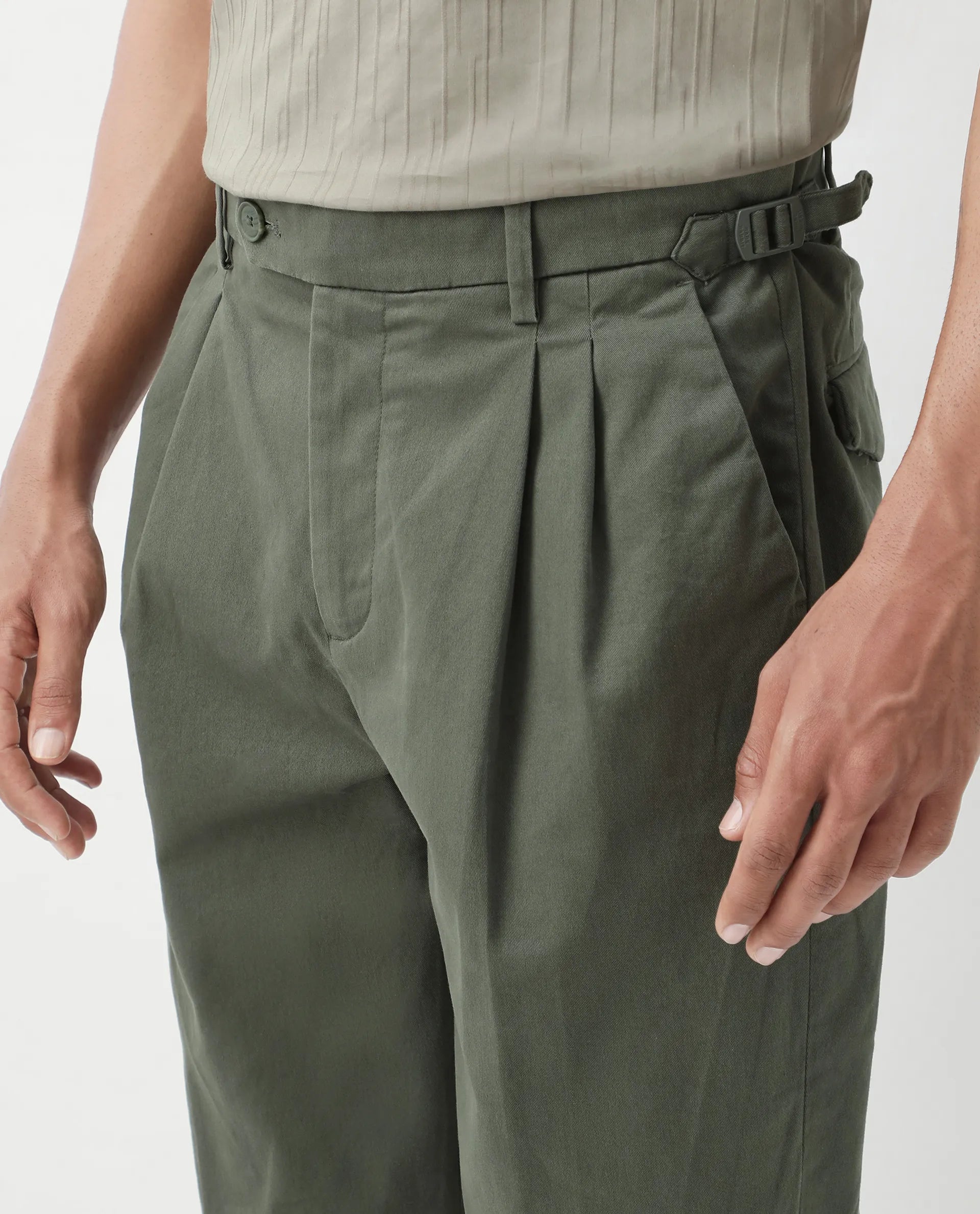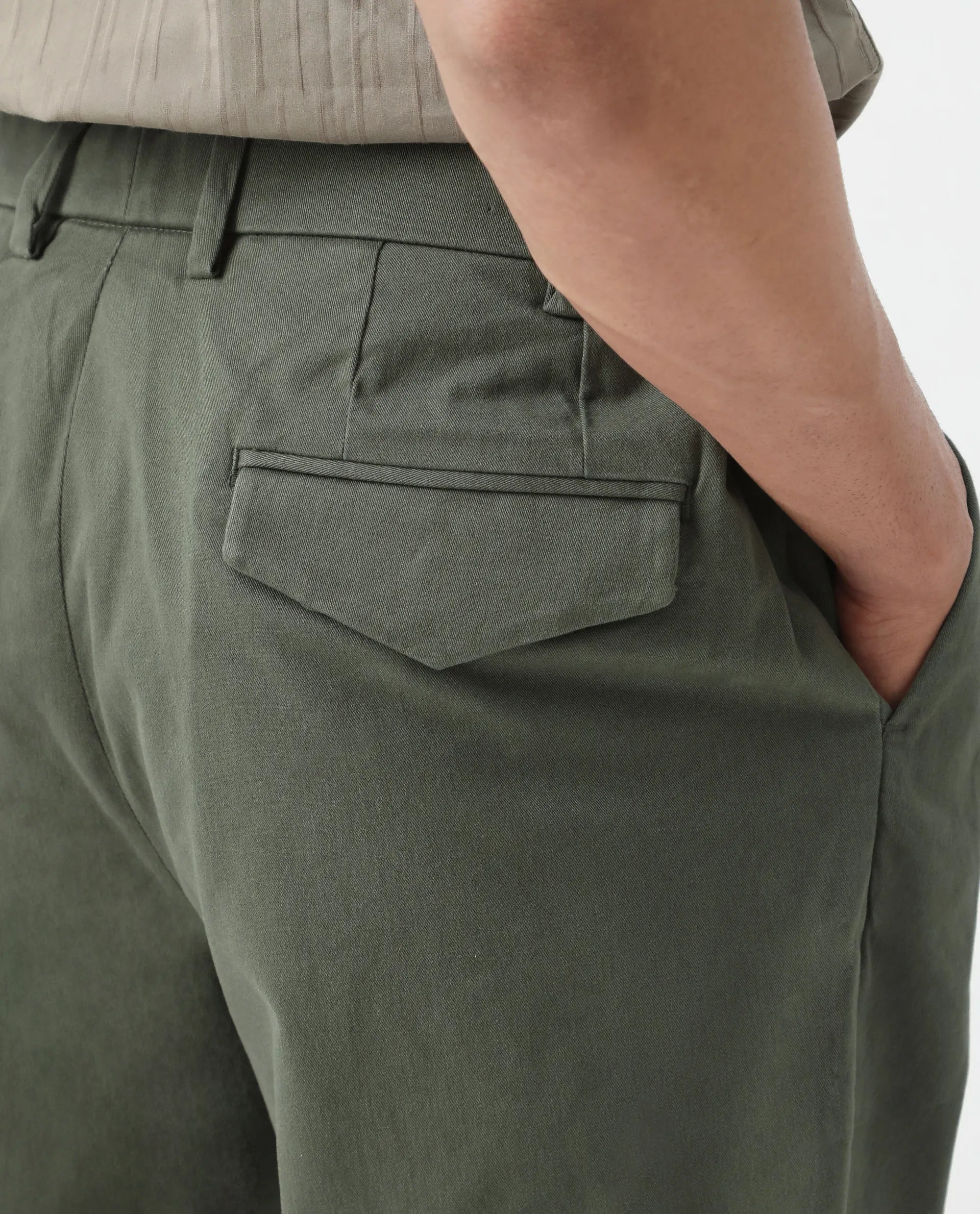 - The model (Chest-40, Waist-32, Hips-38, Height-188 cms) is wearing a size 32.
