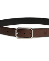 - A traditional mix, this dress belt features a reversible design with both side solid plain leather black and brown with a shiny nickle buckle –reversible