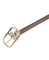 - Crafted from smooth leather with a classic single prong buckle hardware.
