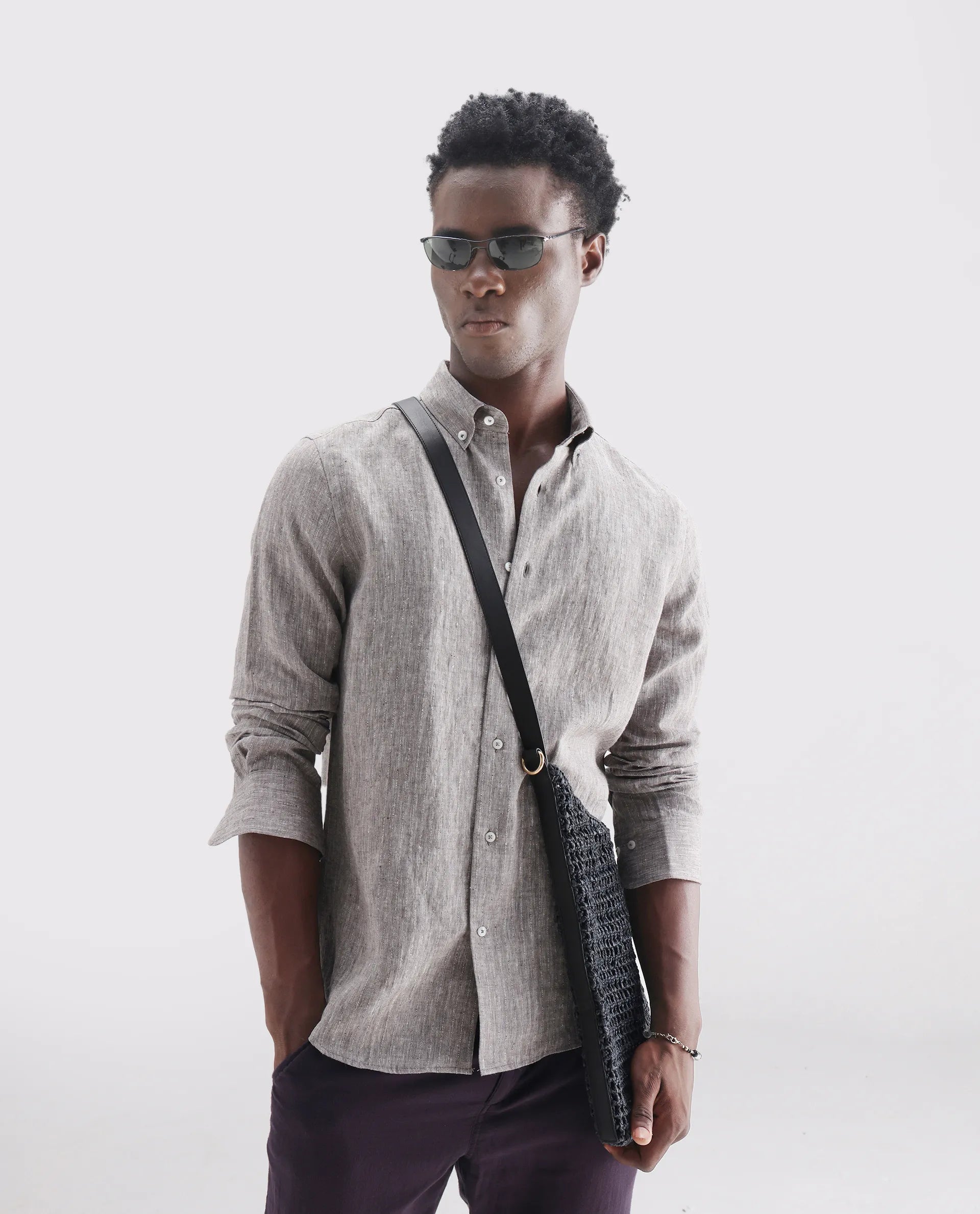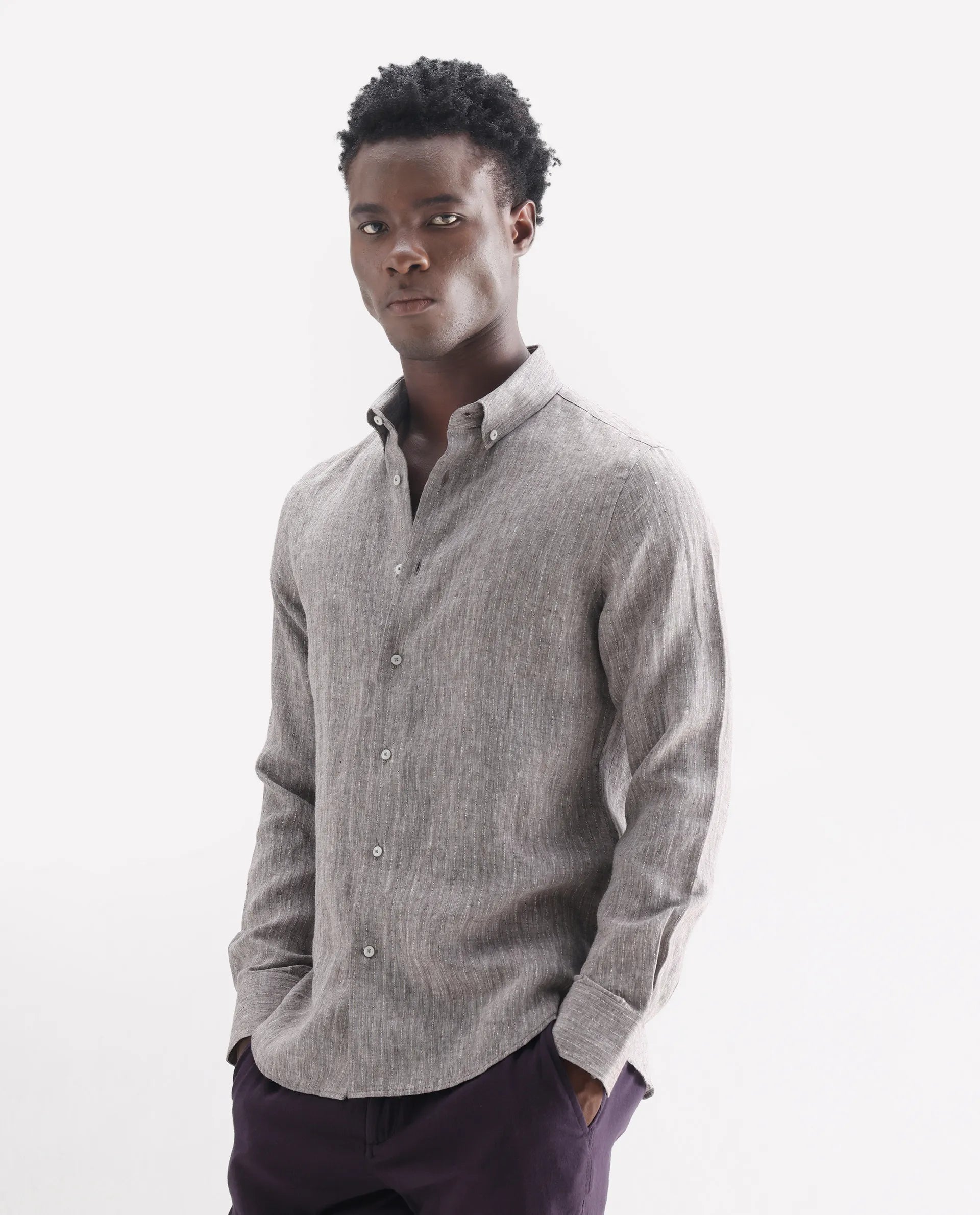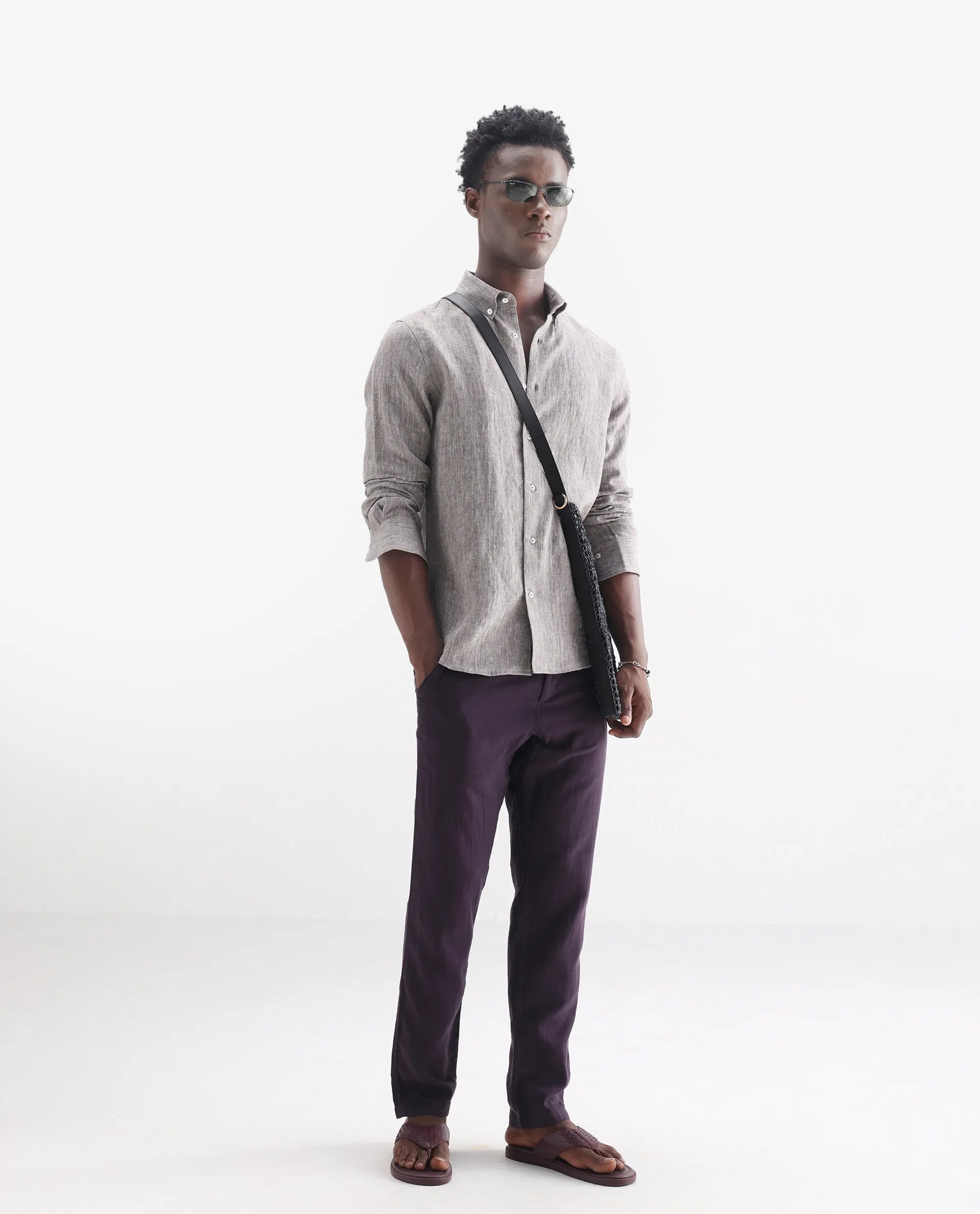 100% LINEN REGULAR FIT PLAIN SHIRT