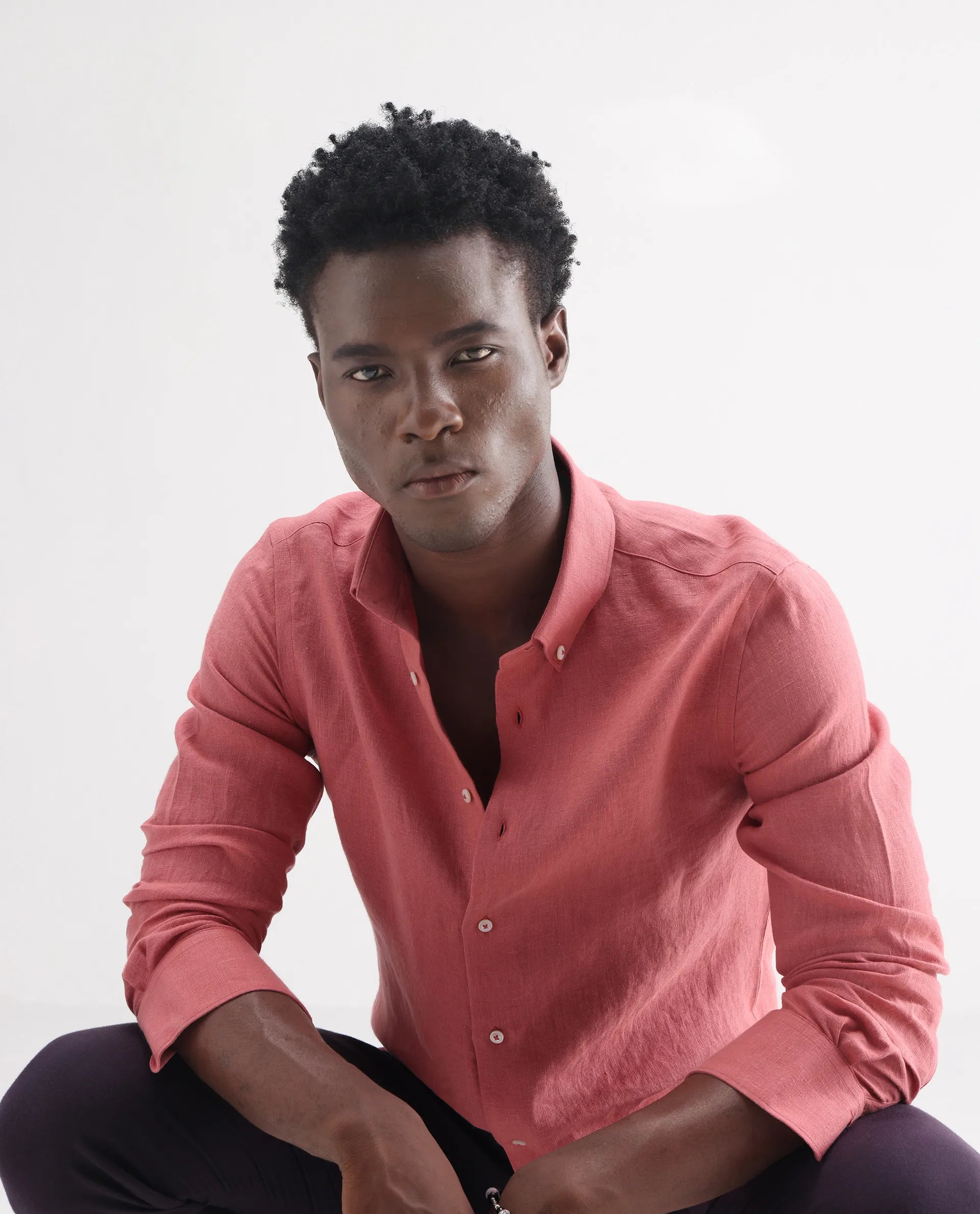 100% LINEN REGULAR FIT PLAIN SHIRT