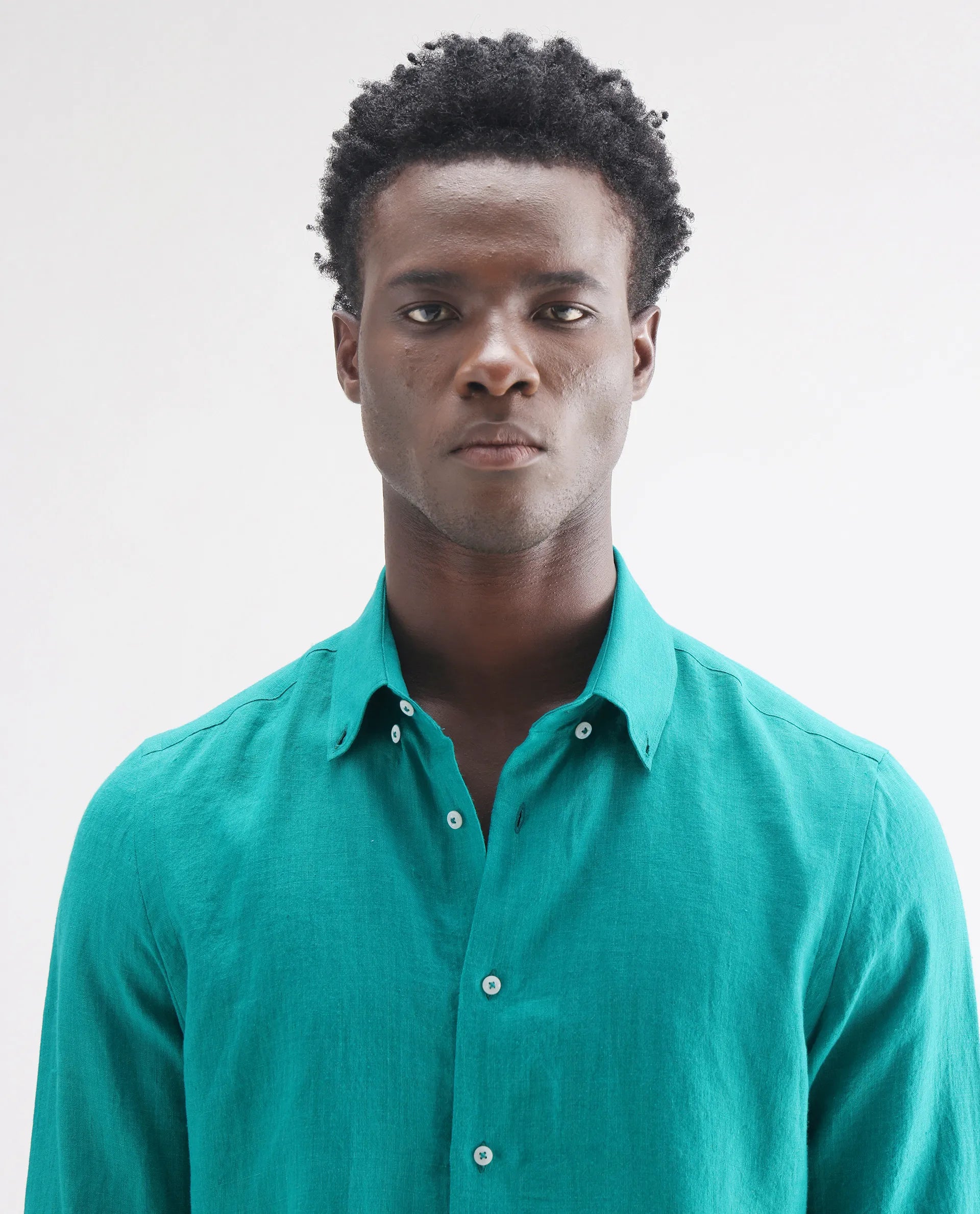 100% LINEN REGULAR FIT PLAIN SHIRT