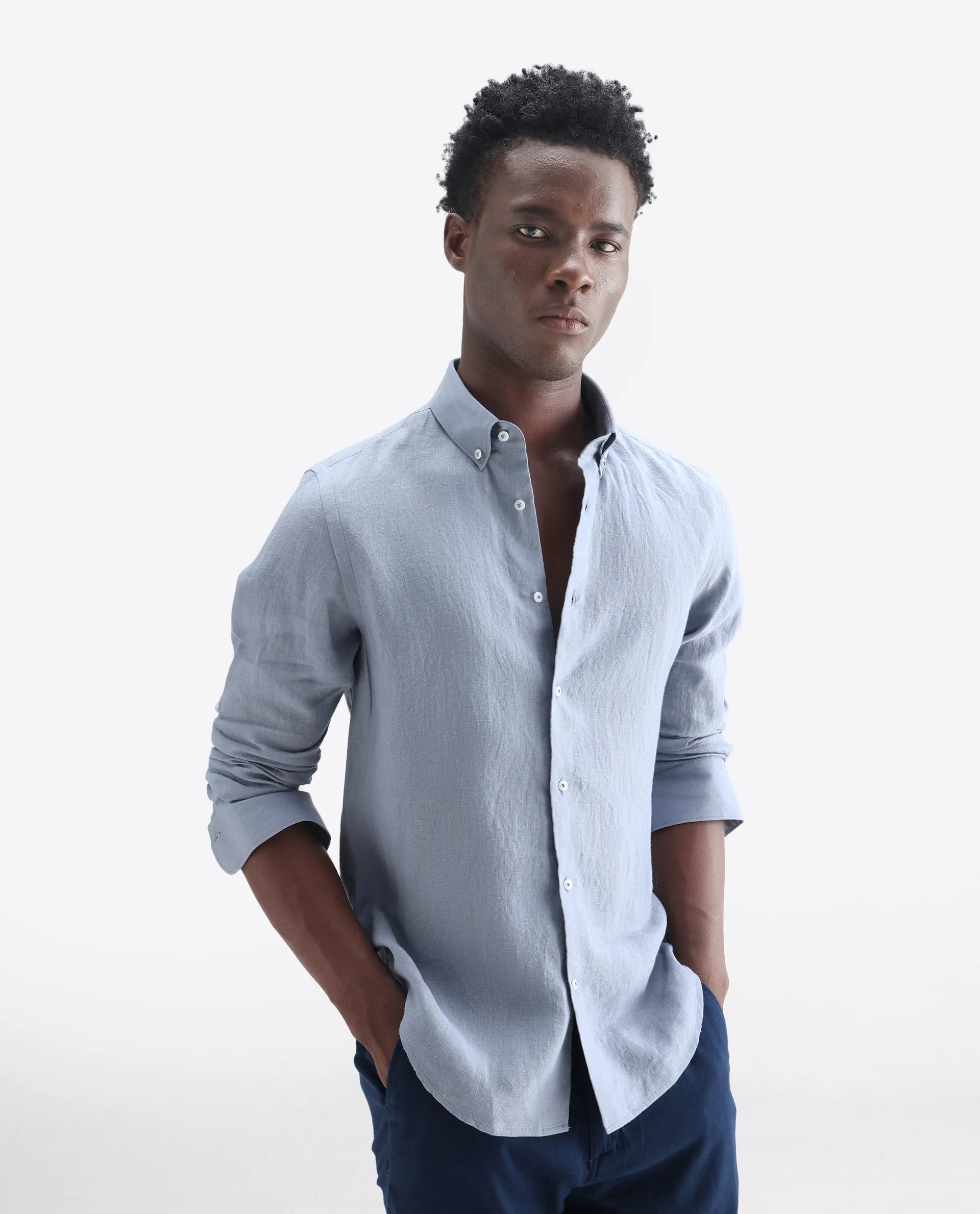 100% LINEN REGULAR FIT PLAIN SHIRT