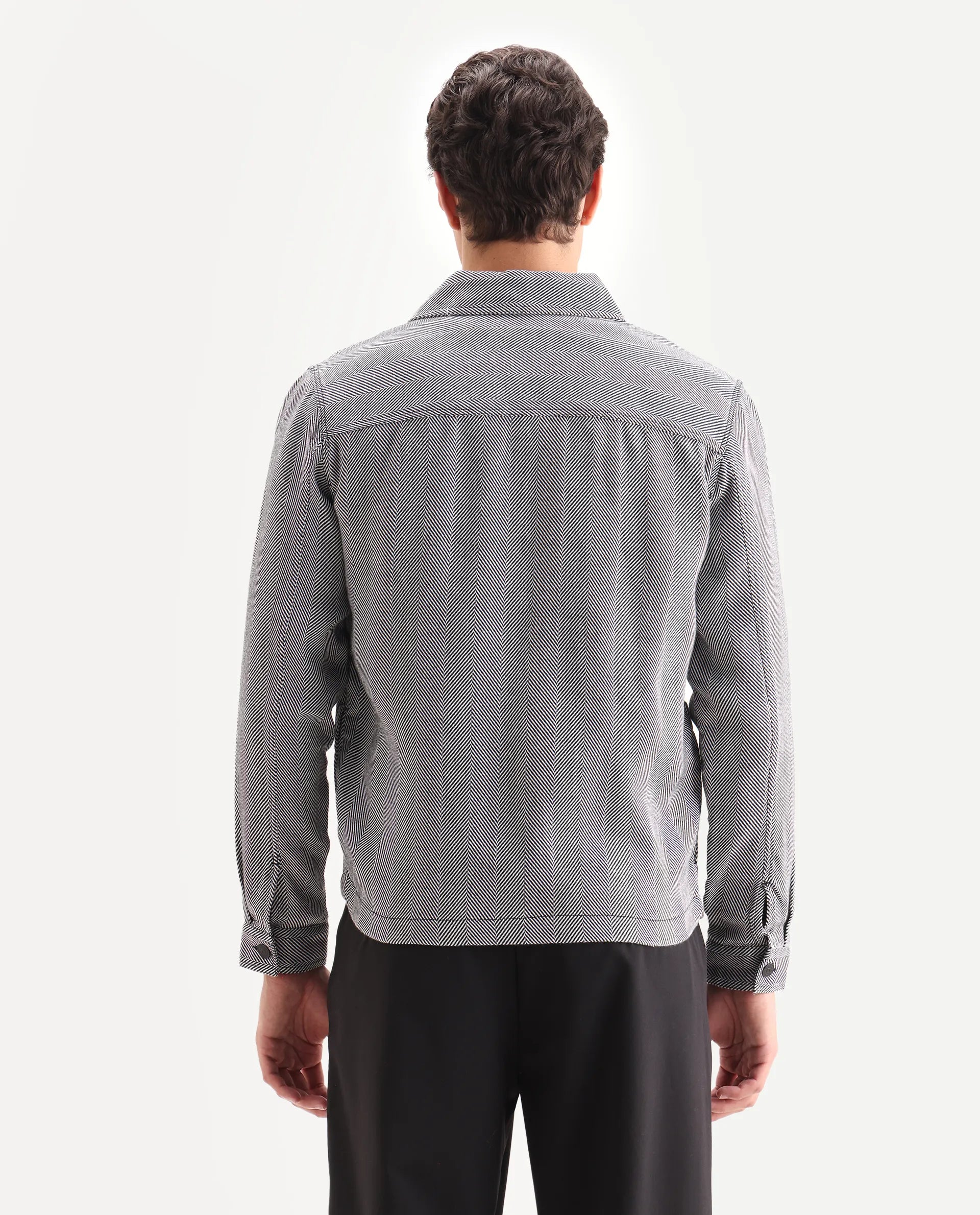 Rare Rabbit Men's Luha Black Polyester Blend Striped Print Regular Fit Full Sleeve Collared Shacket