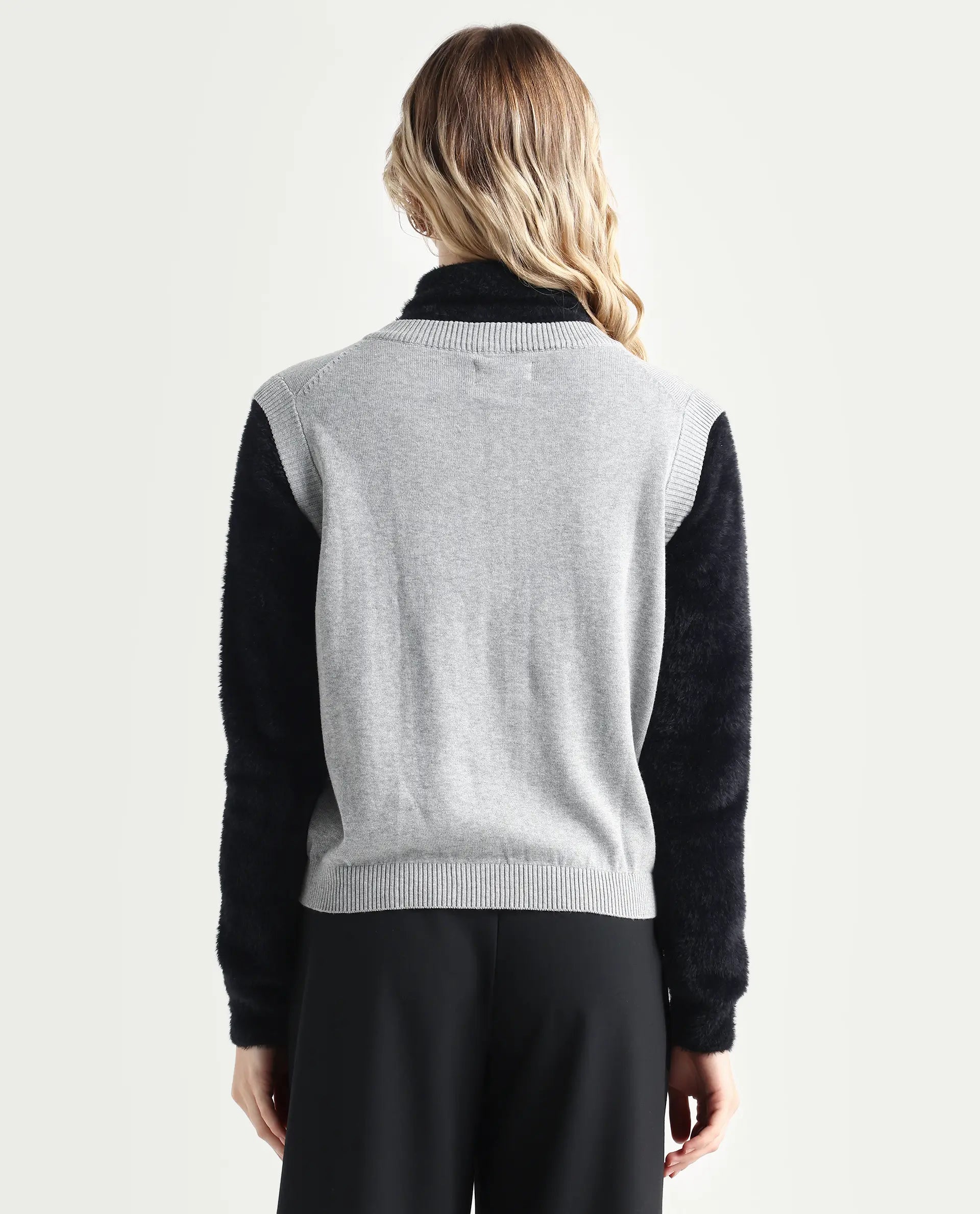 MADELYN - GREY PLAIN REGULAR FIT SWEATER