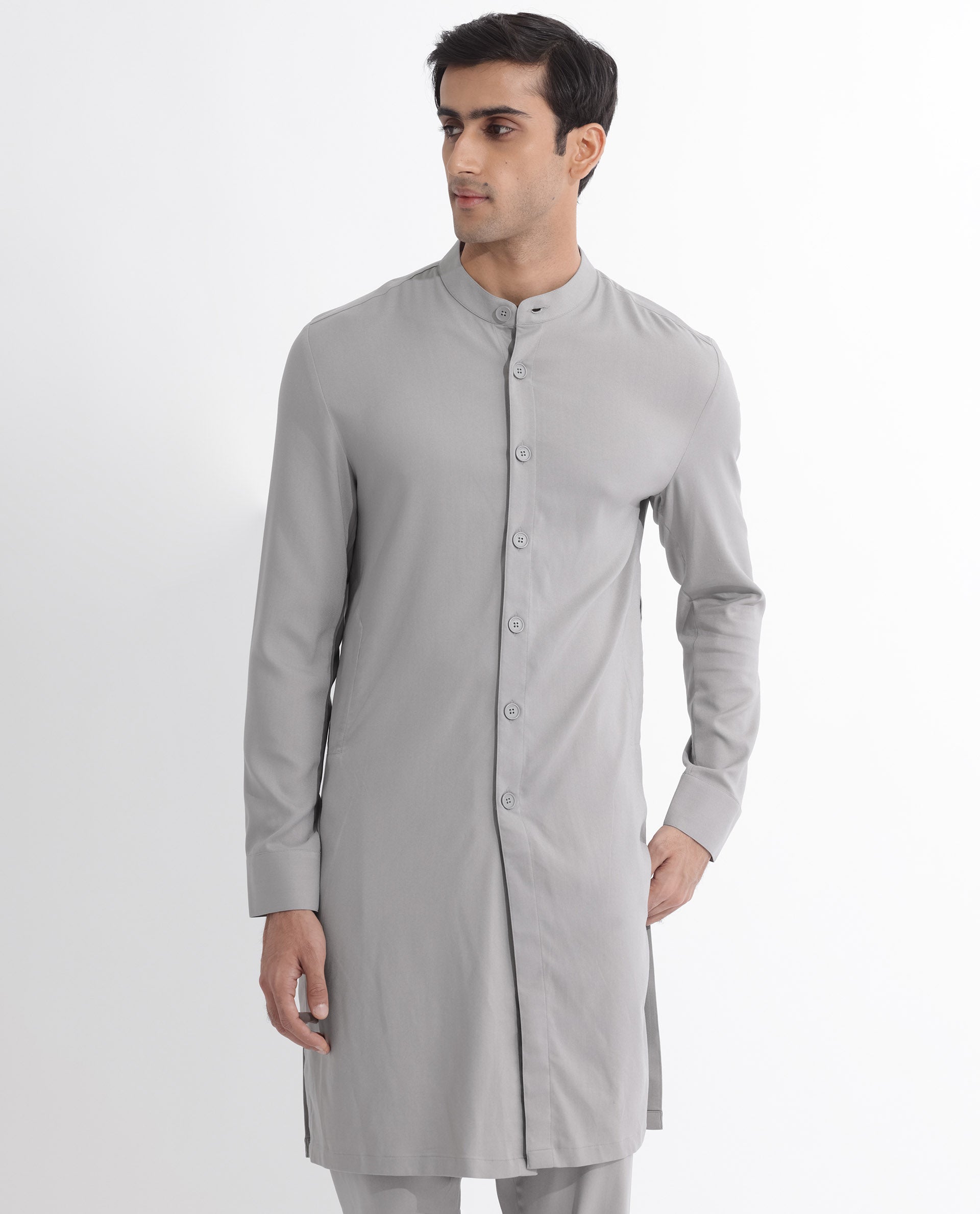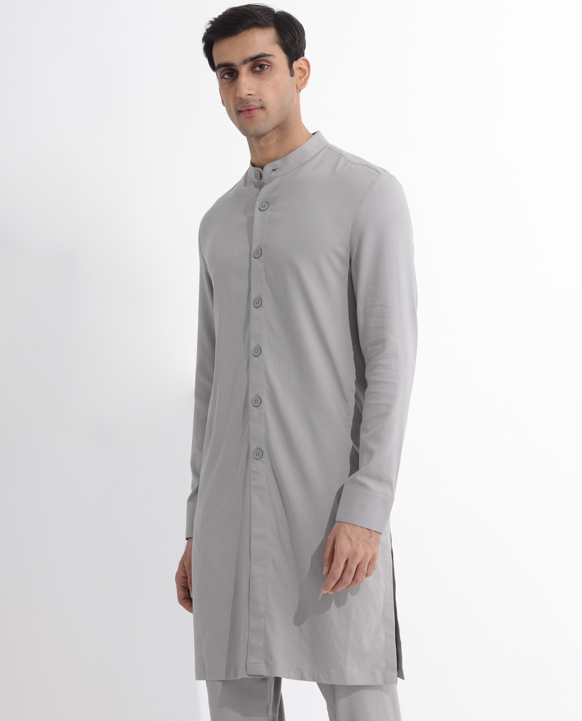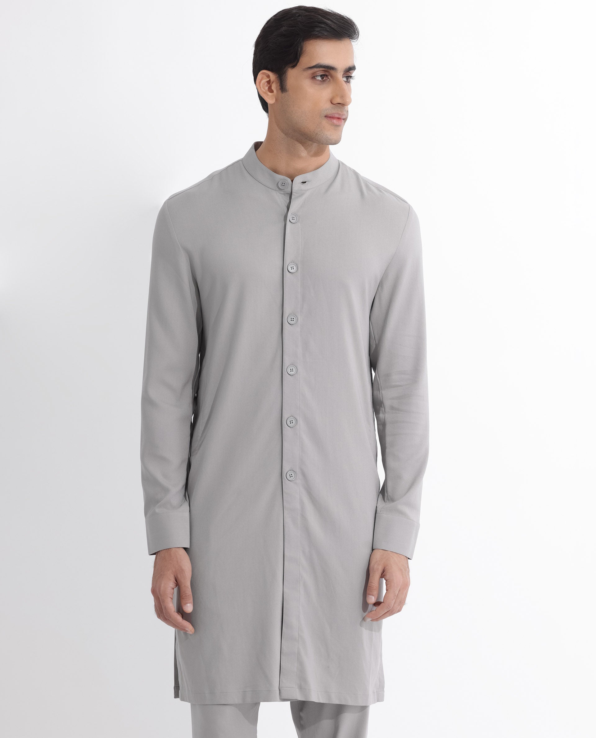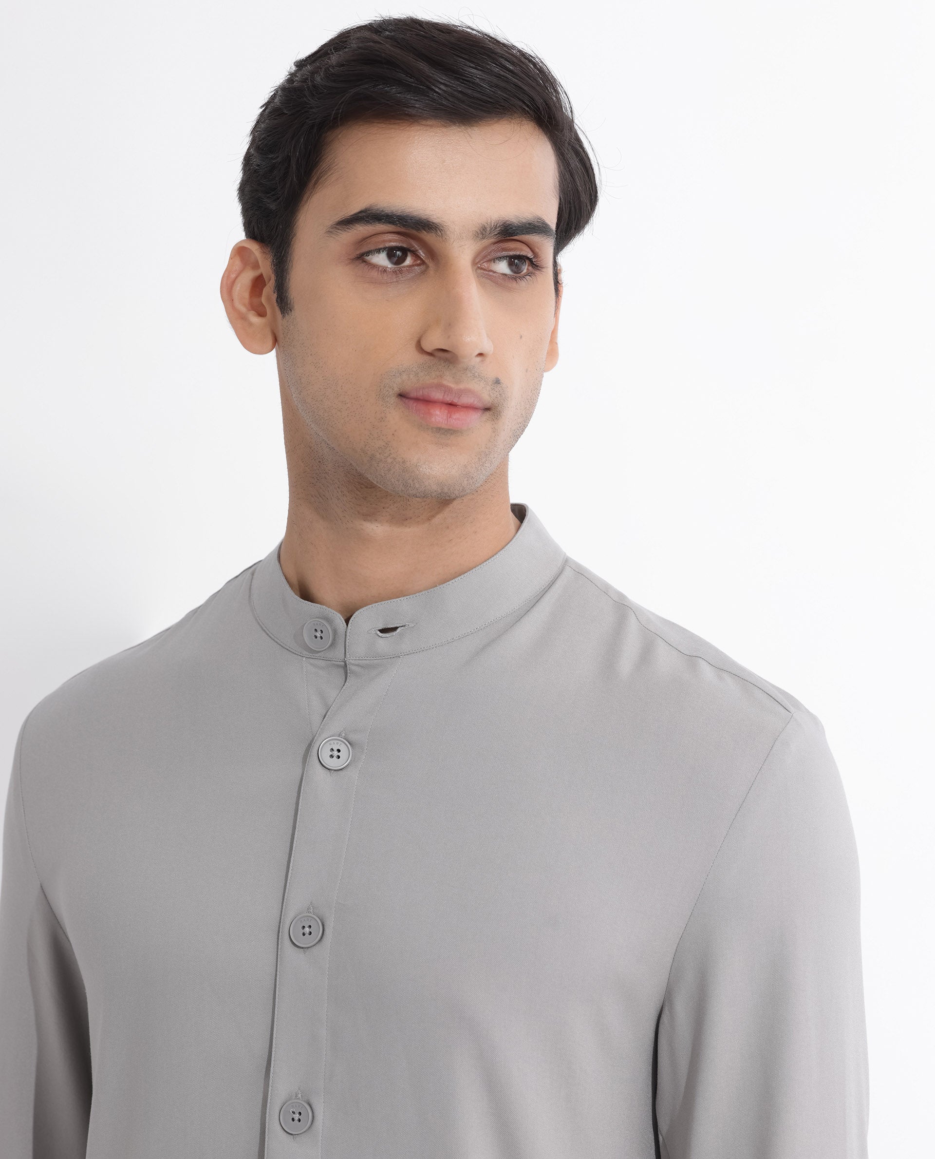 Rare Rabbit Men's Medok Grey Plain Regular Fit Full Sleeve Mandarin Collar Kurta