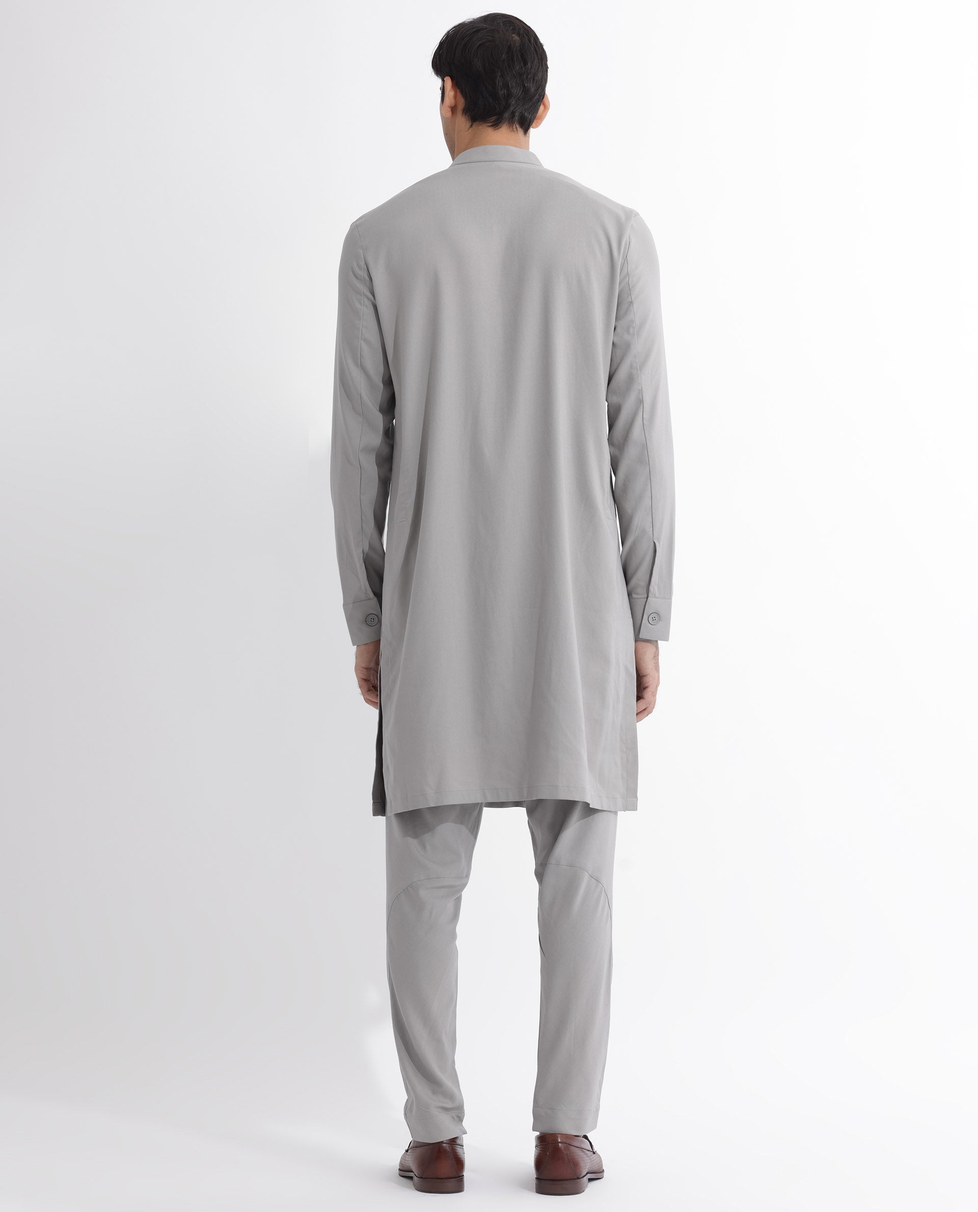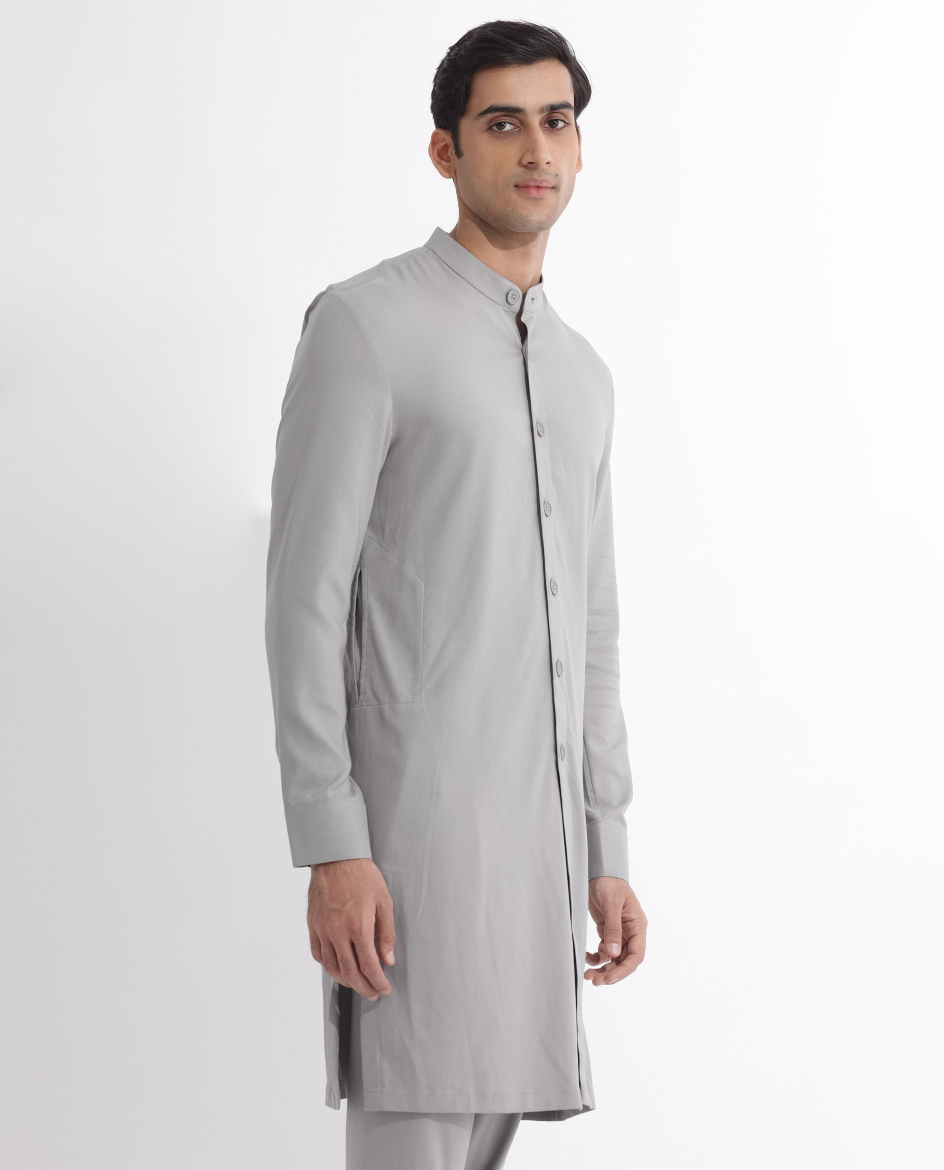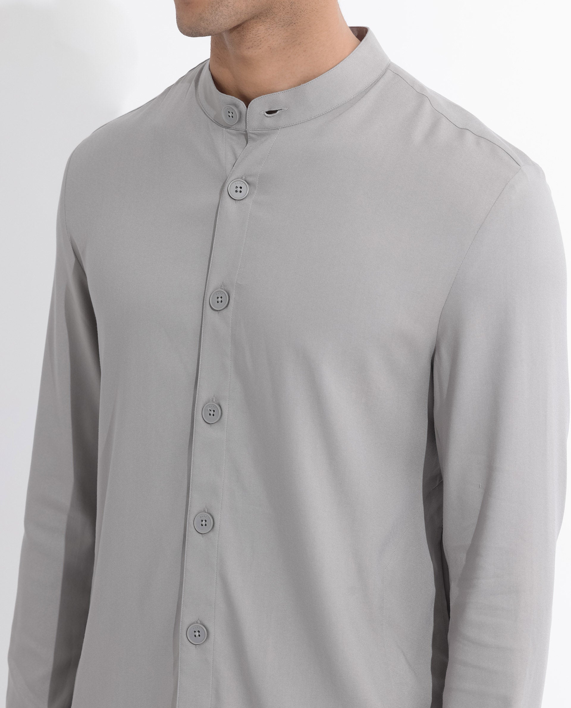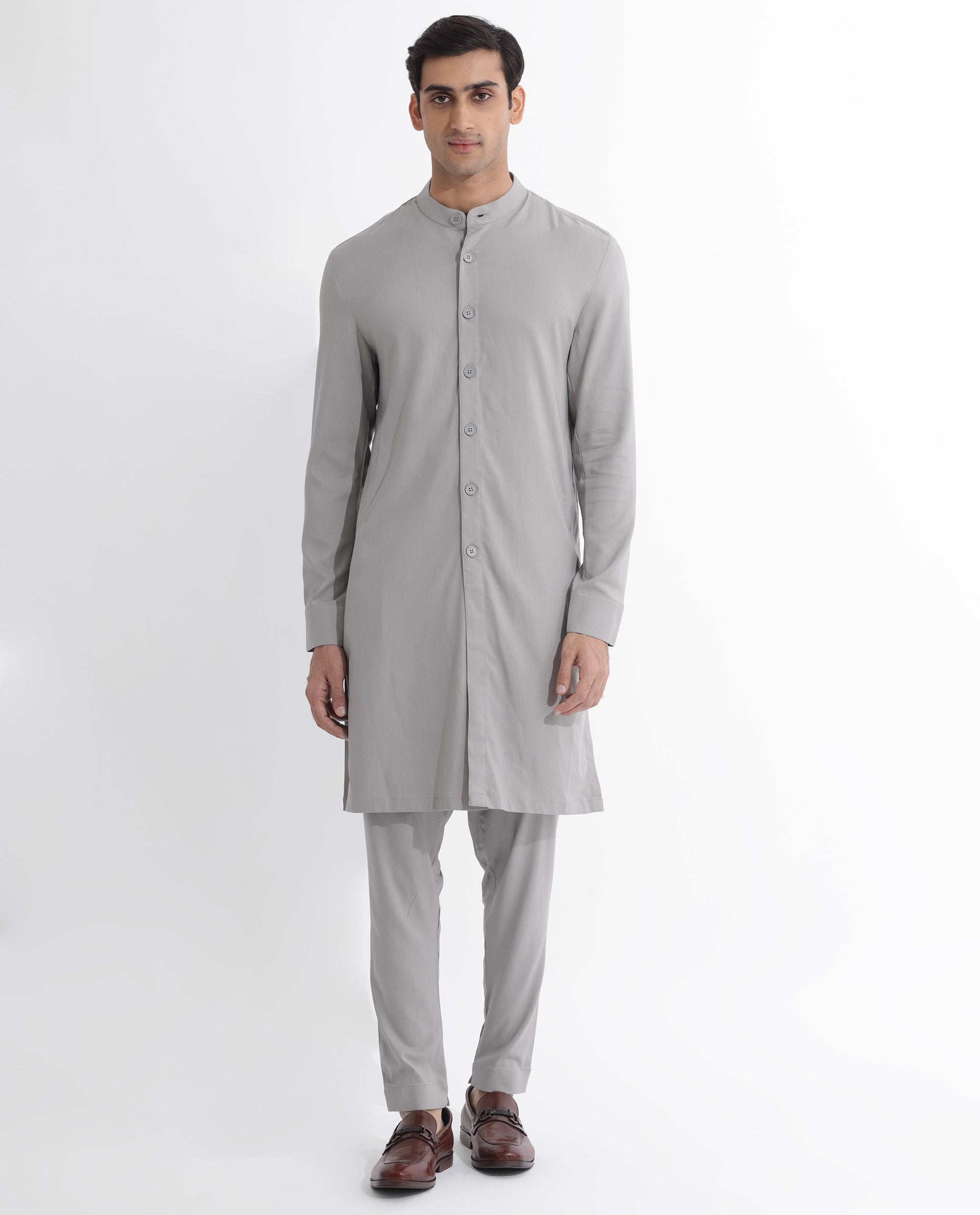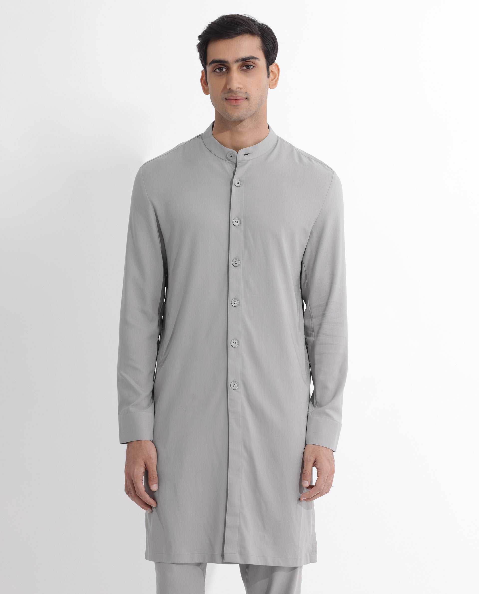 Rare Rabbit Men's Medok Grey Plain Regular Fit Full Sleeve Mandarin Collar Kurta
