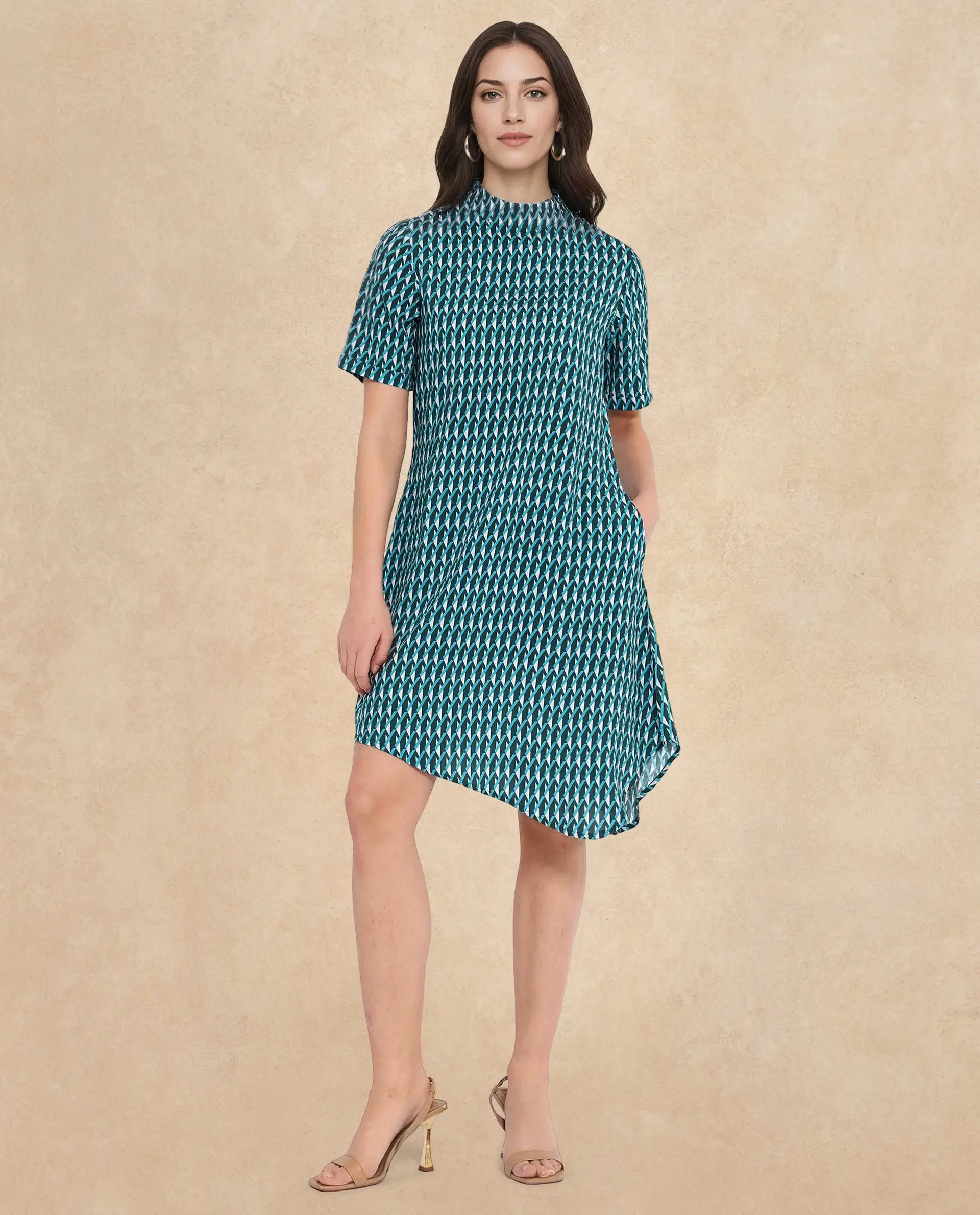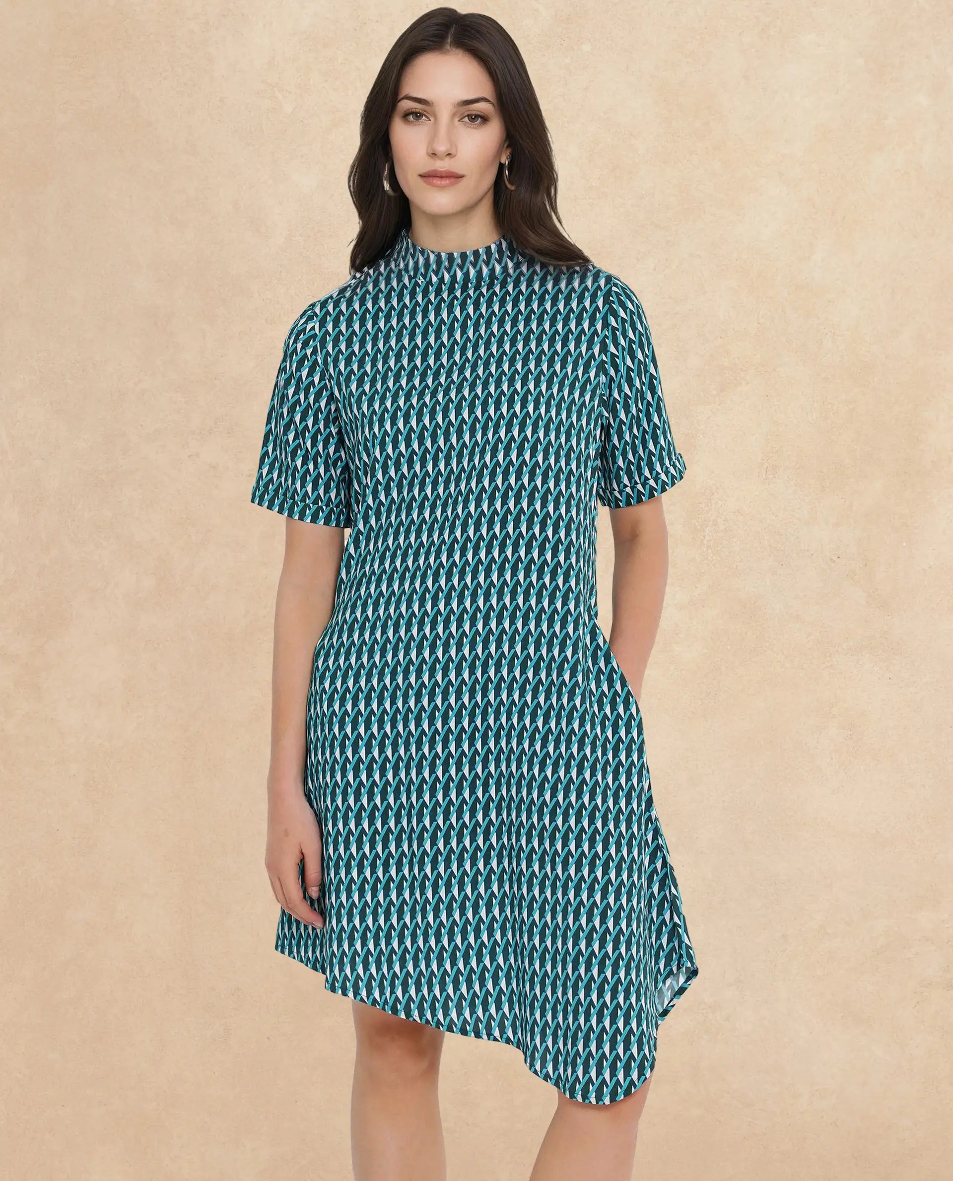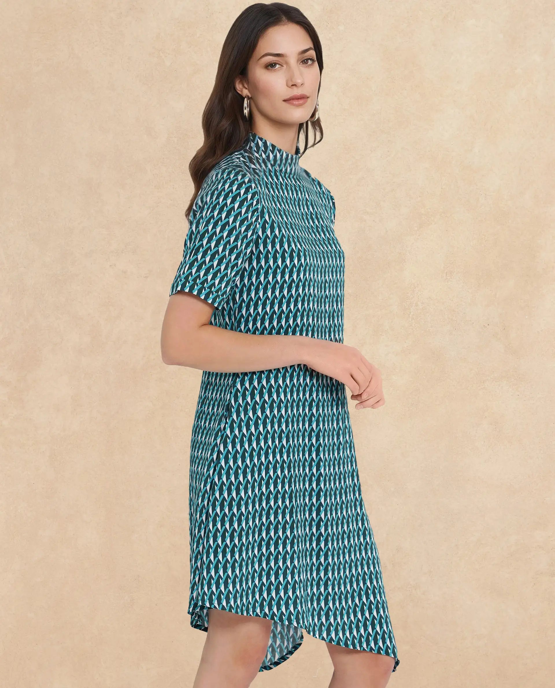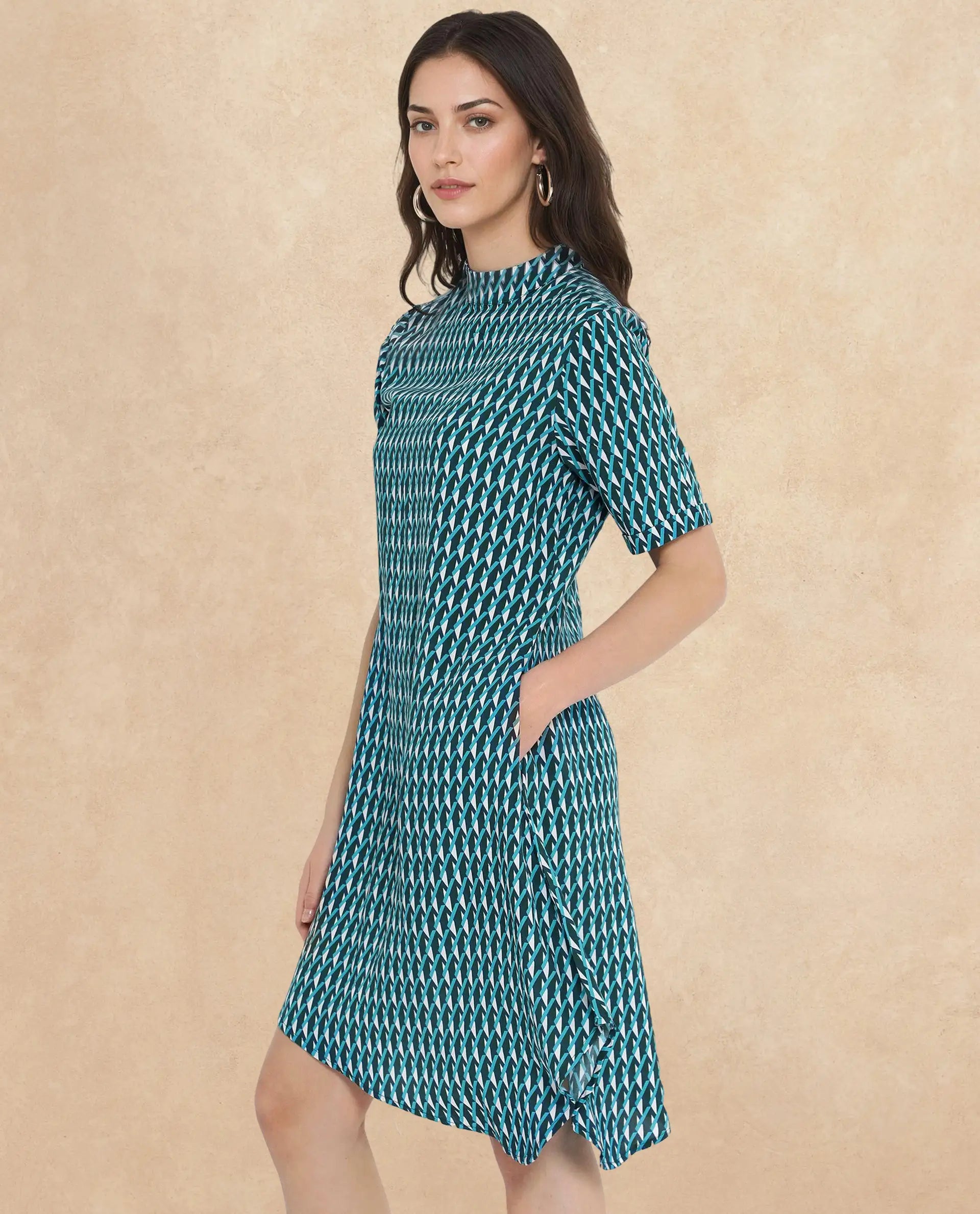 GEOMETRIC PRINT KNEE LENGTH DRESS
