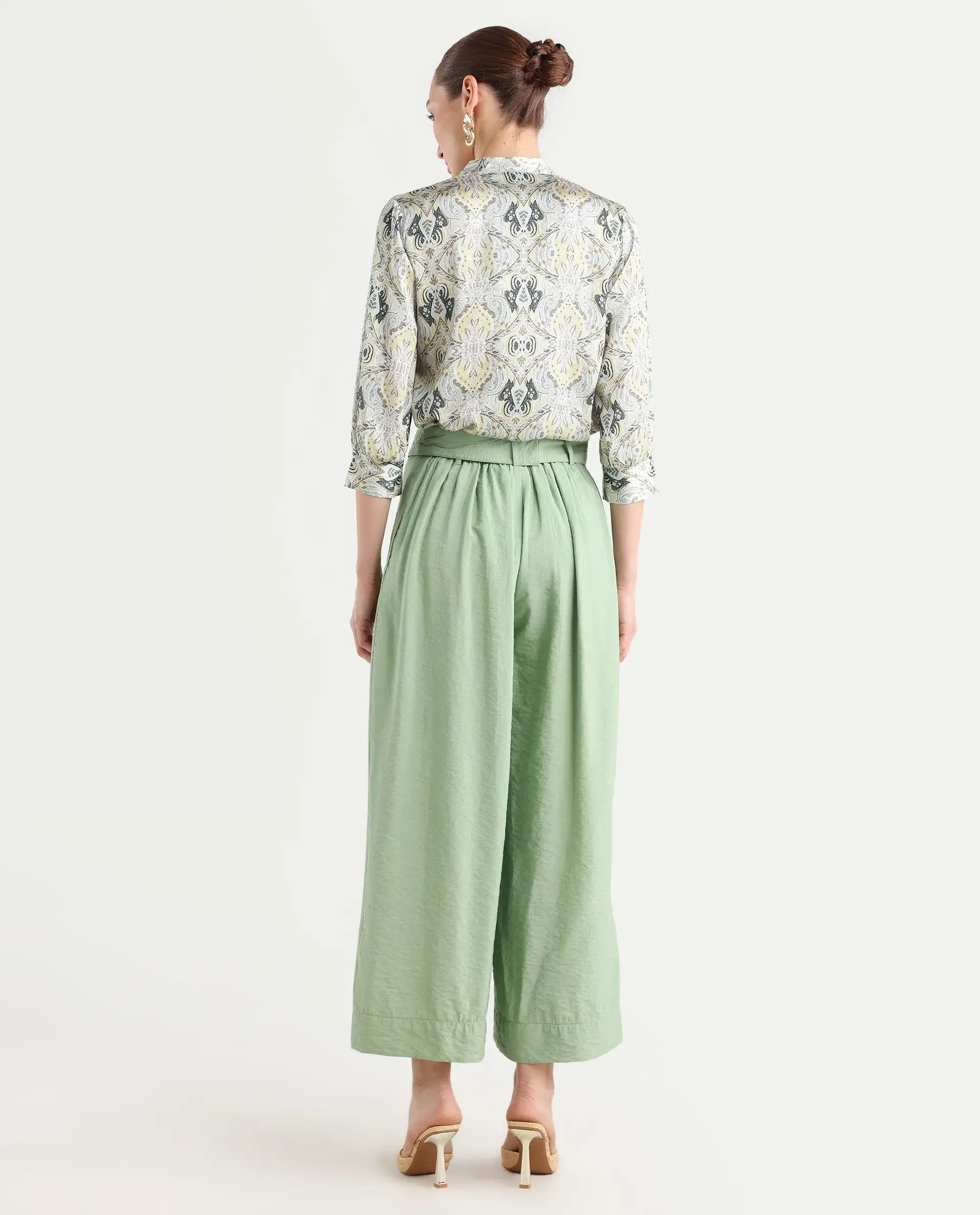 1. Embrace a relaxed fit with our Front Pleated Trousers, complete with a self-fabric belt for added style.