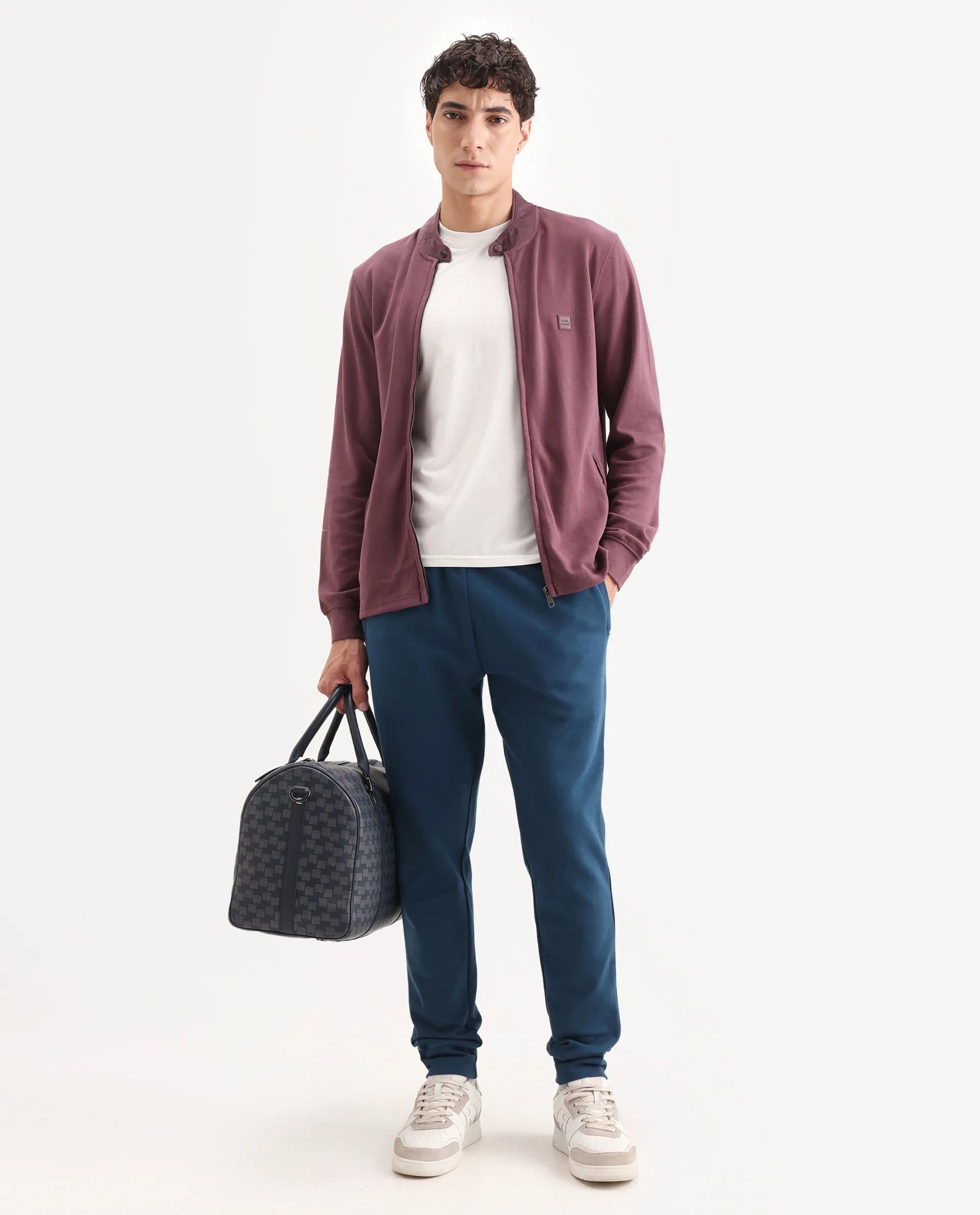 Rare Rabbit Men's Morris Maroon Cotton Plain Regular Fit Full Sleeve Mandarin Collar Jacket
