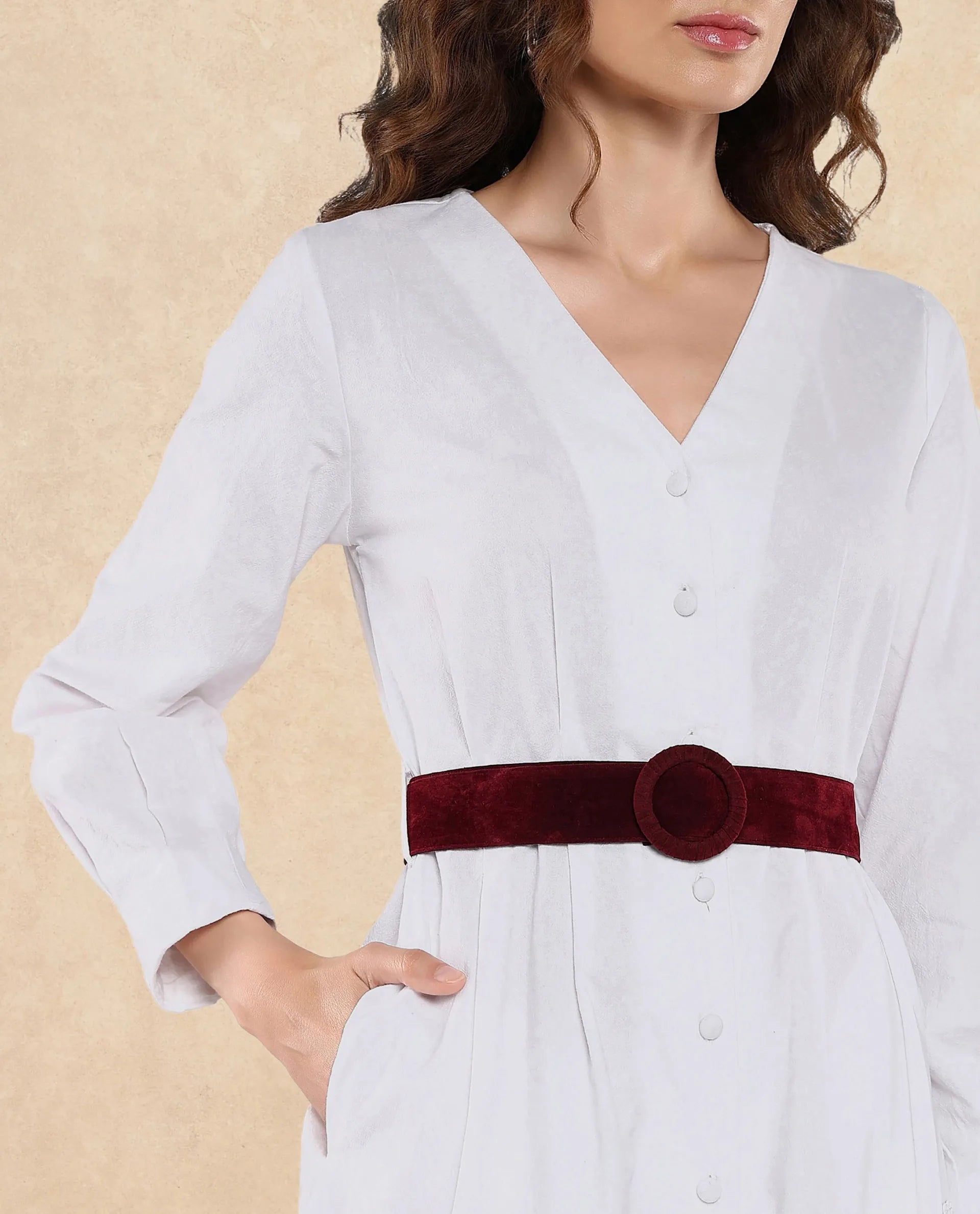 This garment is designed without a belt. Any belt shown is for styling and photographic purposes only and is not included with the item.