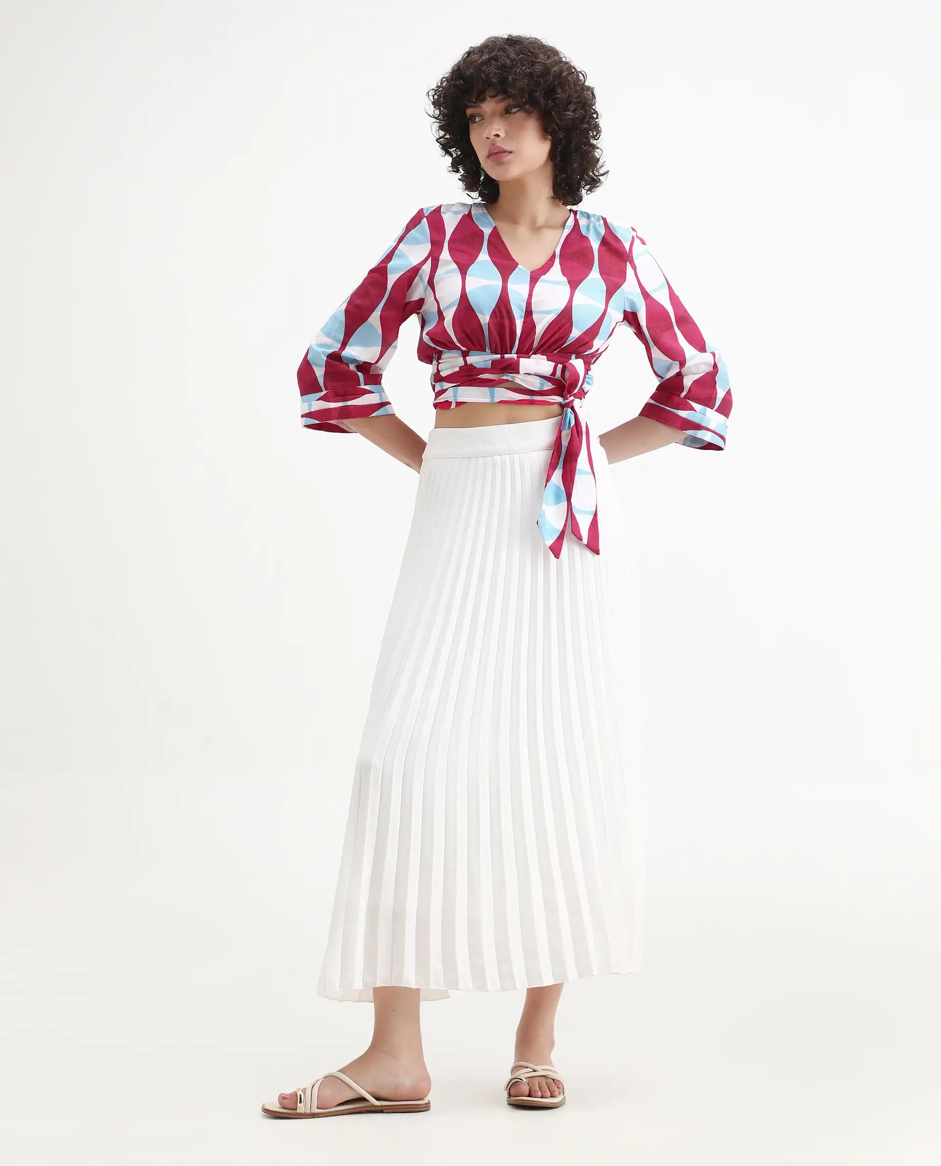 Pair this Geo Chic top with high-waisted skirts or jeans for a brunch-ready ensemble. Ideal for casual outings or when you want to infuse a geometric flair into your everyday style.