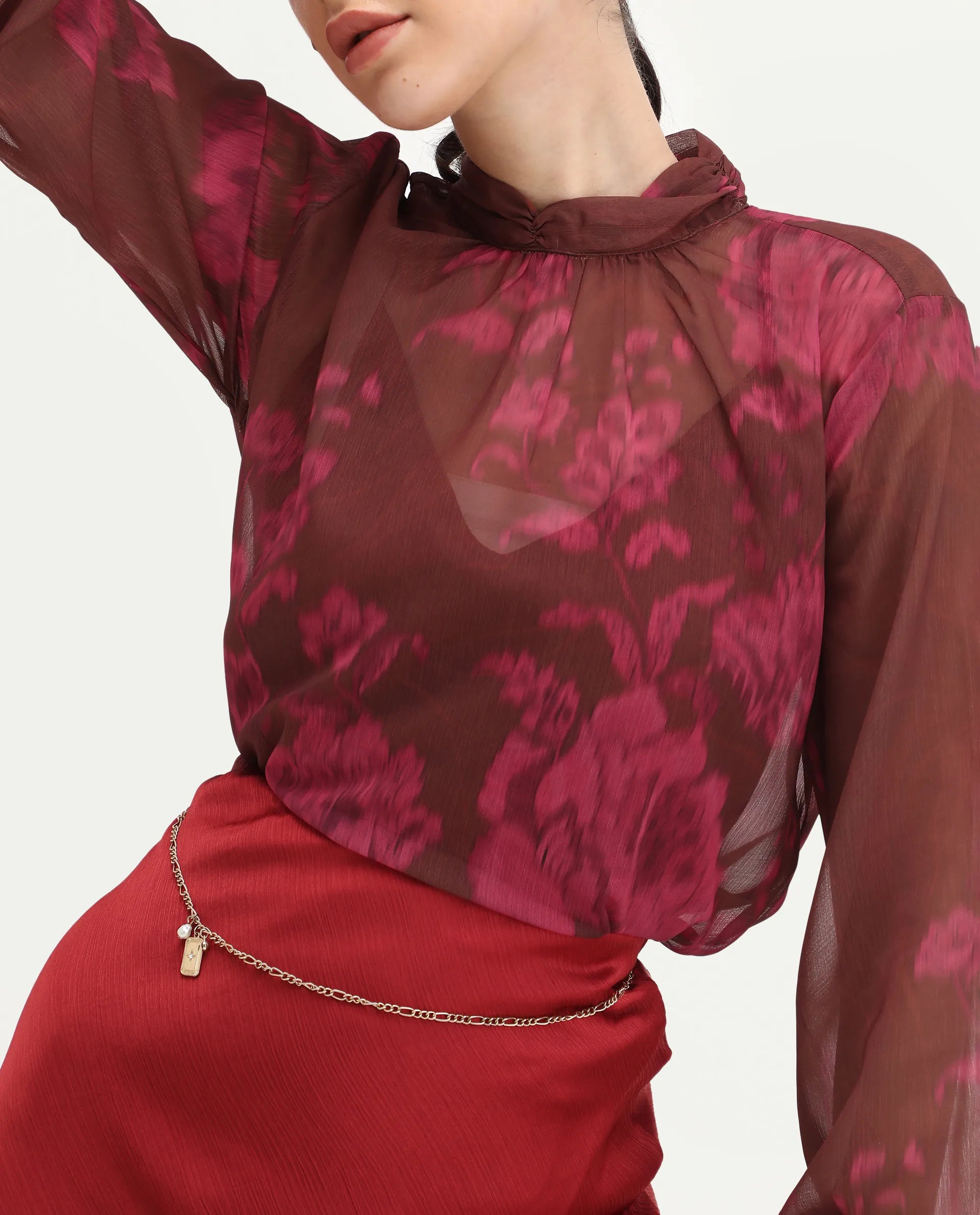 Elevate your wardrobe with the Rareism Women Neho Brown Printed Top, featuring elegant bishop sleeves and a refined band collar. The button closure adds a classic touch, while the relaxed fit ensures comfort throughout the day. Crafted with attention to detail, this top combines style and ease, making it a versatile choice for both casual and semi-formal occasions.