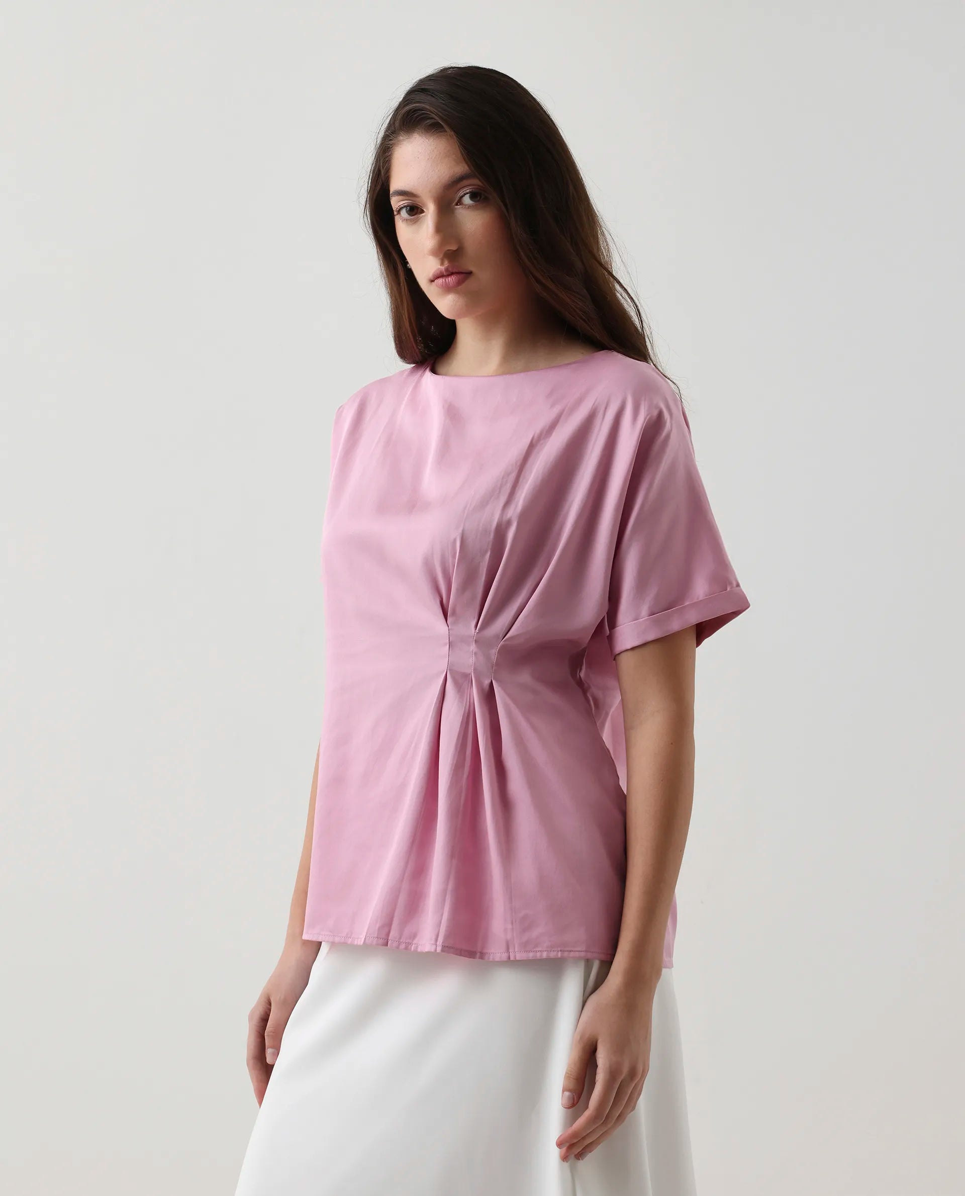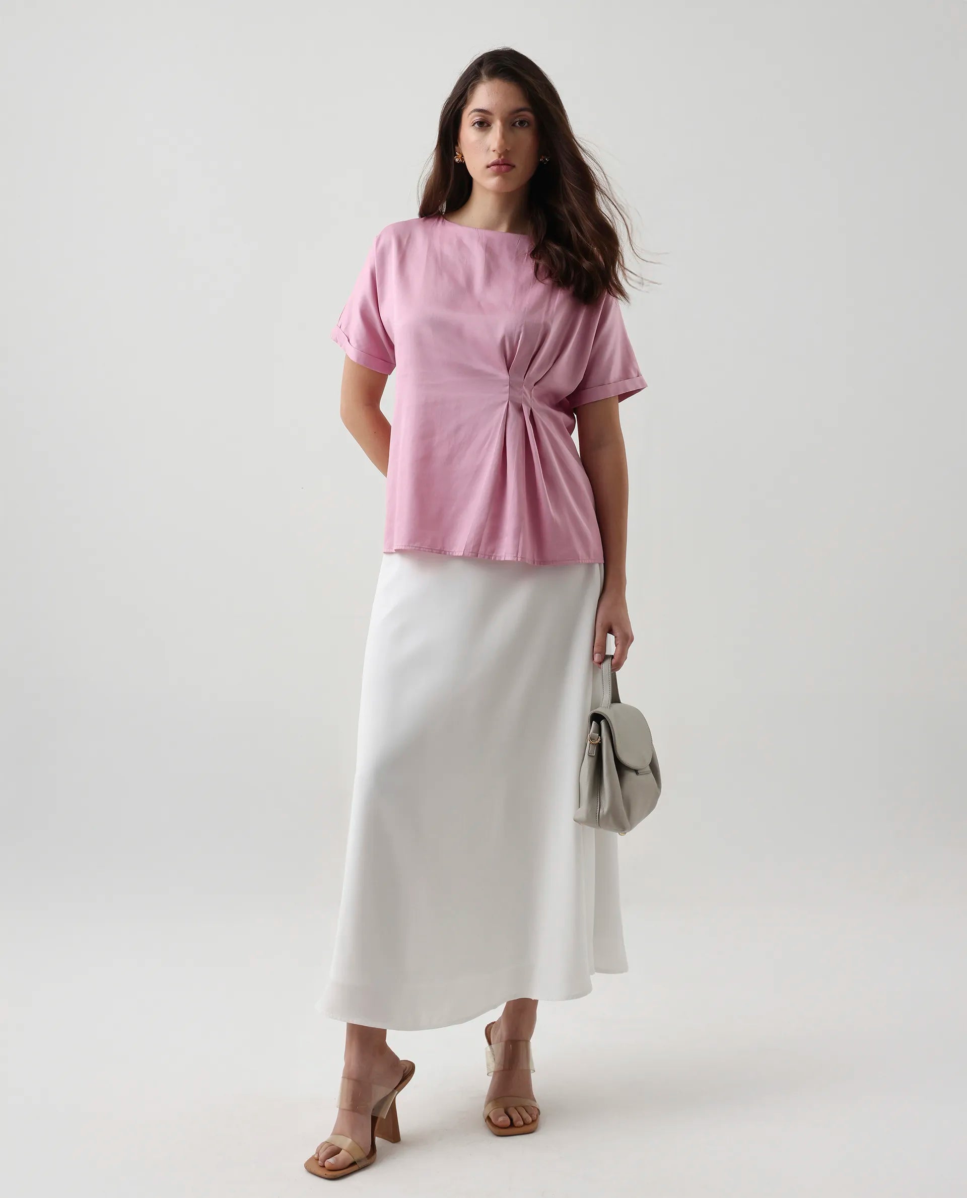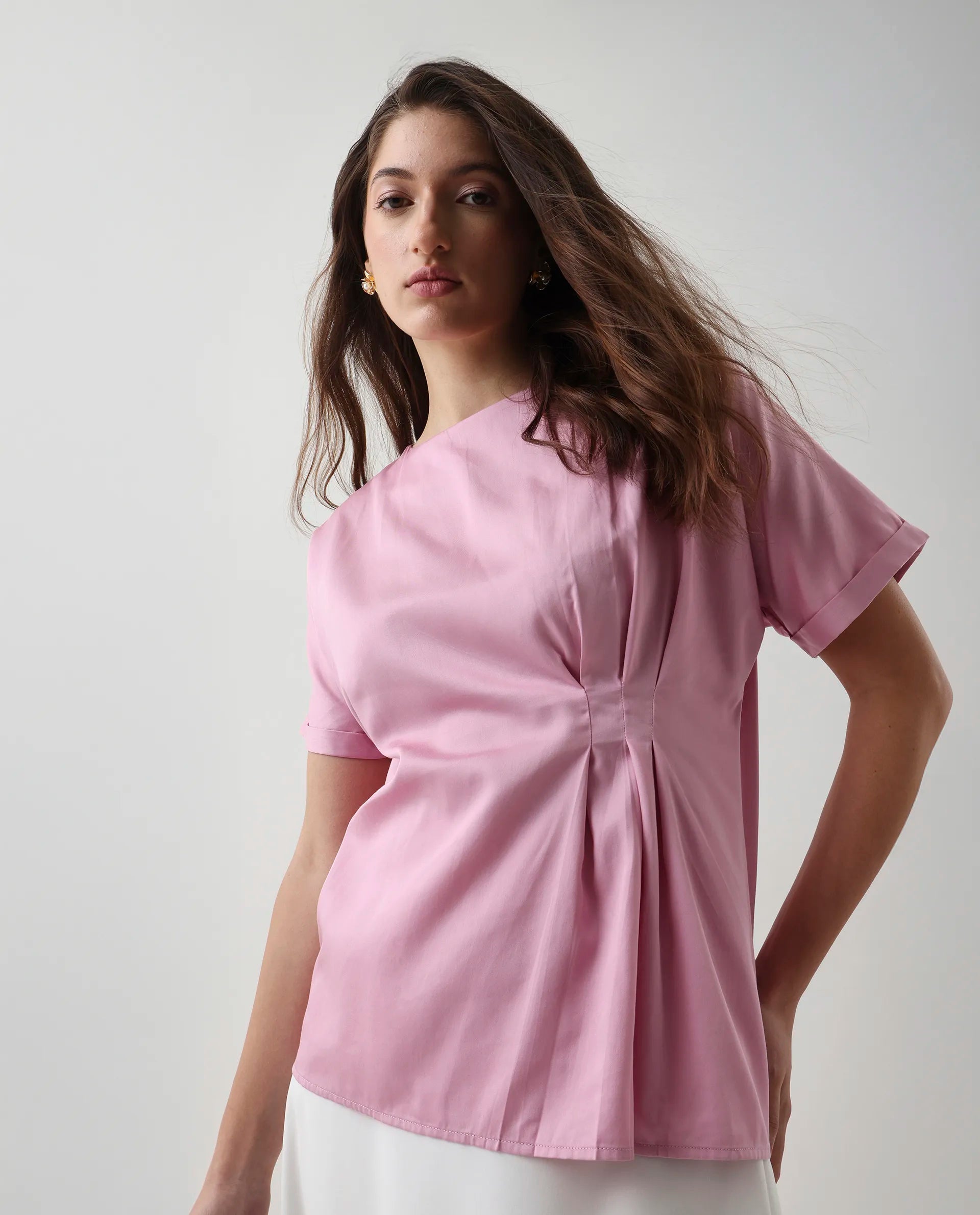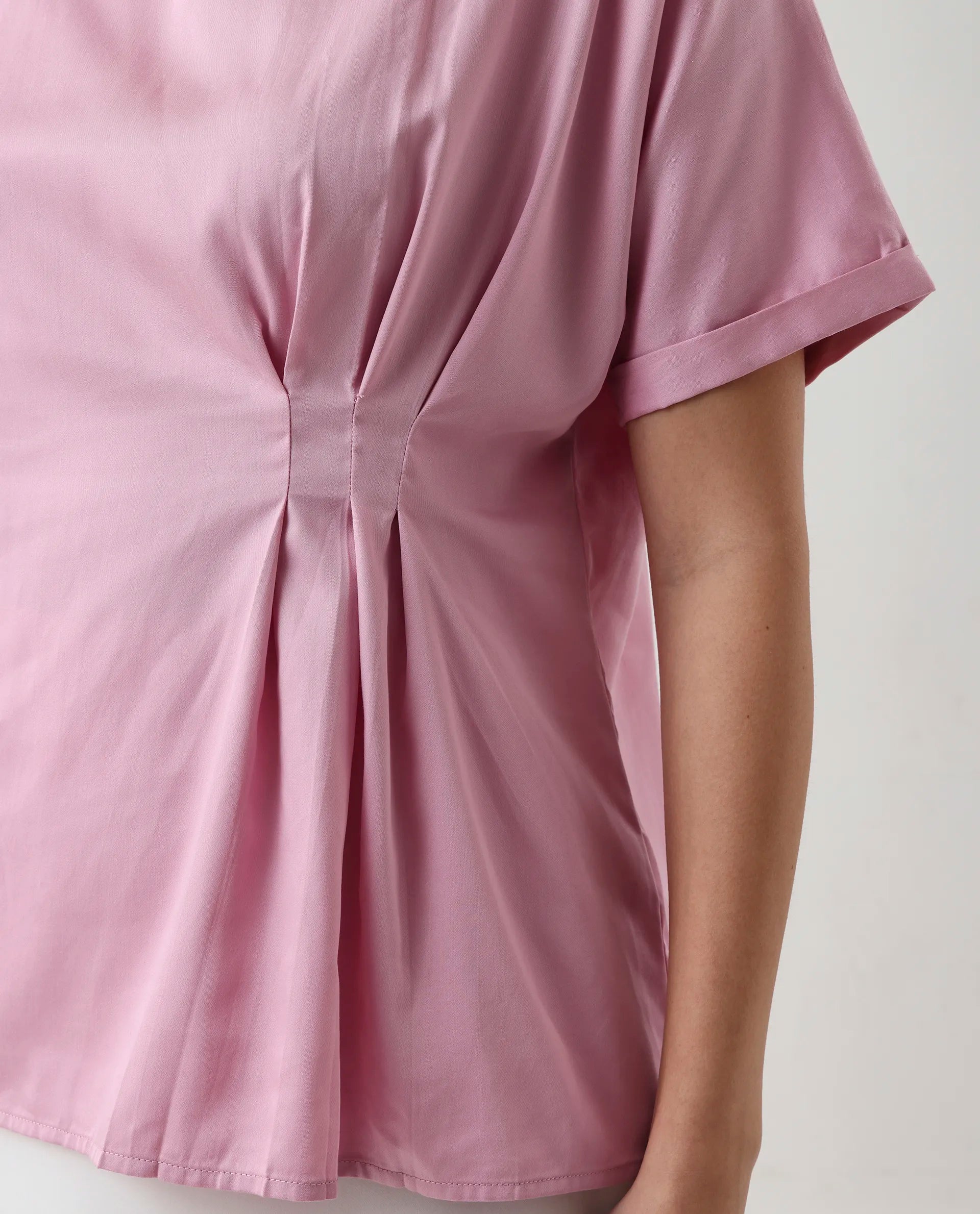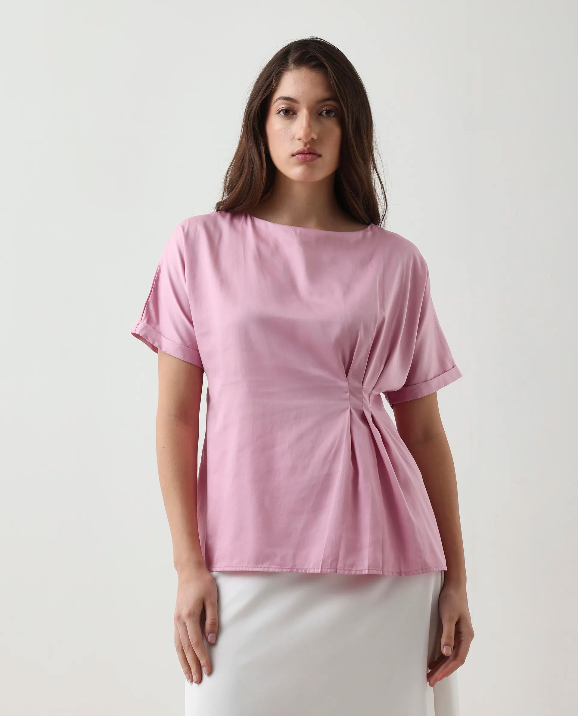 This Rareism women’s top features a dusky pink cotton blend fabric designed for comfort and breathability. It has a classic round neck and regular sleeves, offering a timeless silhouette. The button closure adds subtle detail while maintaining a clean, plain look, making it versatile for both casual and semi-formal occasions. Crafted to provide ease of movement and durability, this top is an essential addition to a refined wardrobe.