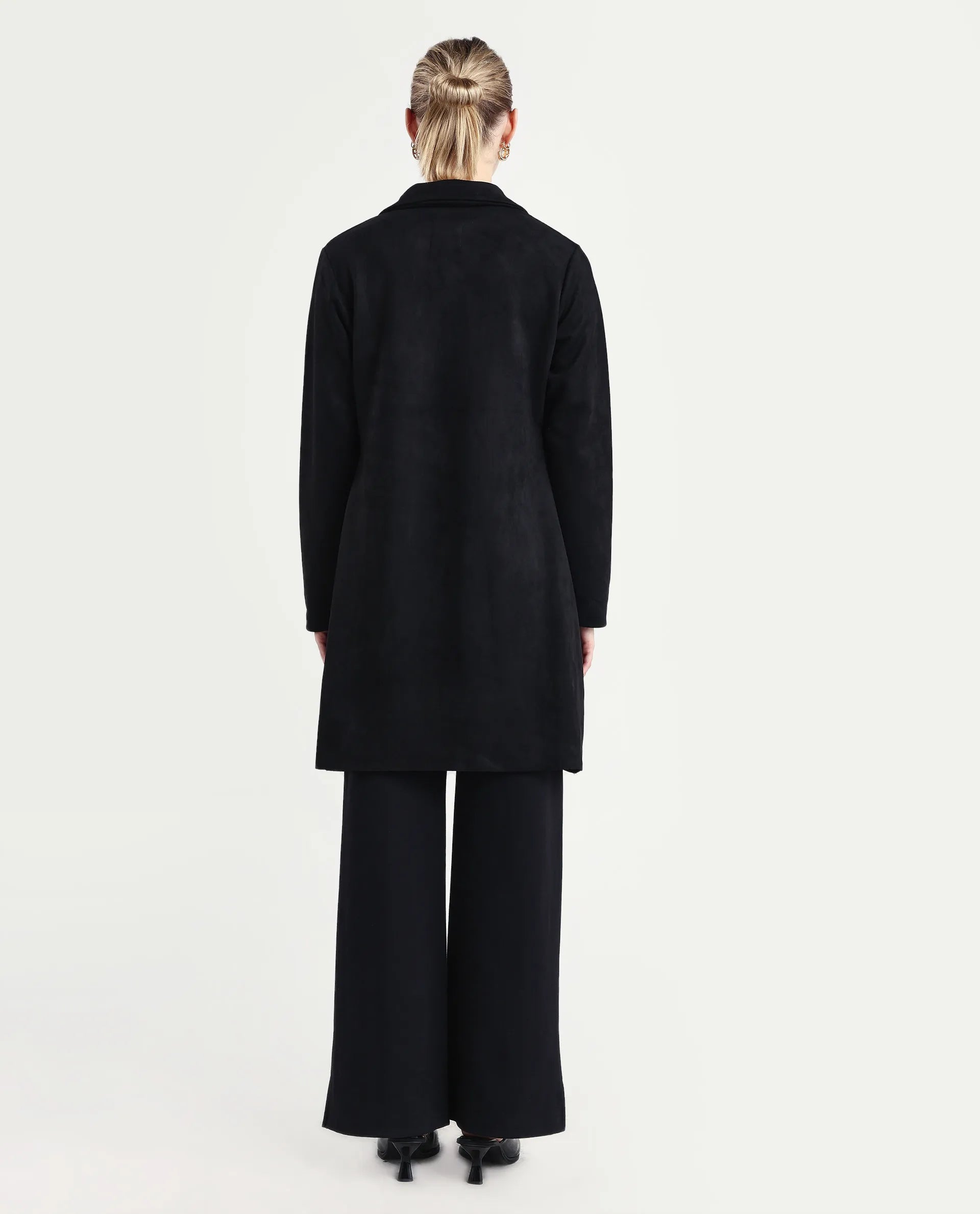 NIZARA - BLACK SOLID LAPEL COLLAR LONG COAT