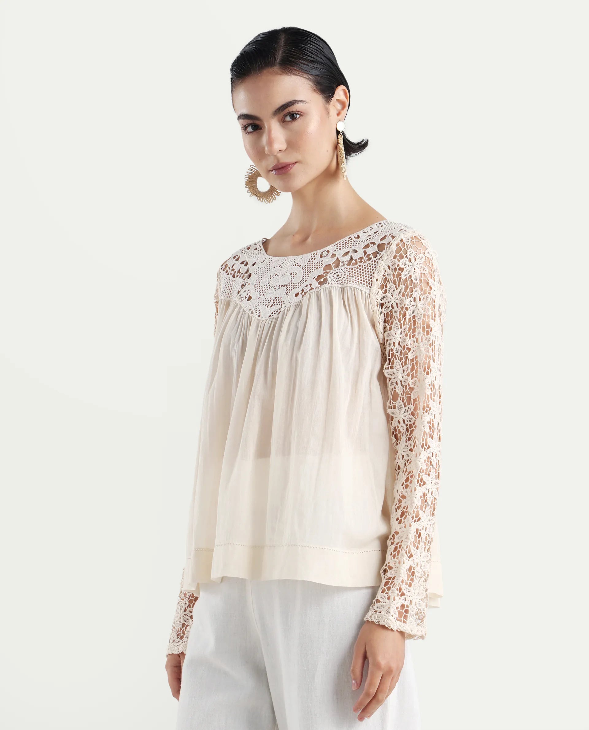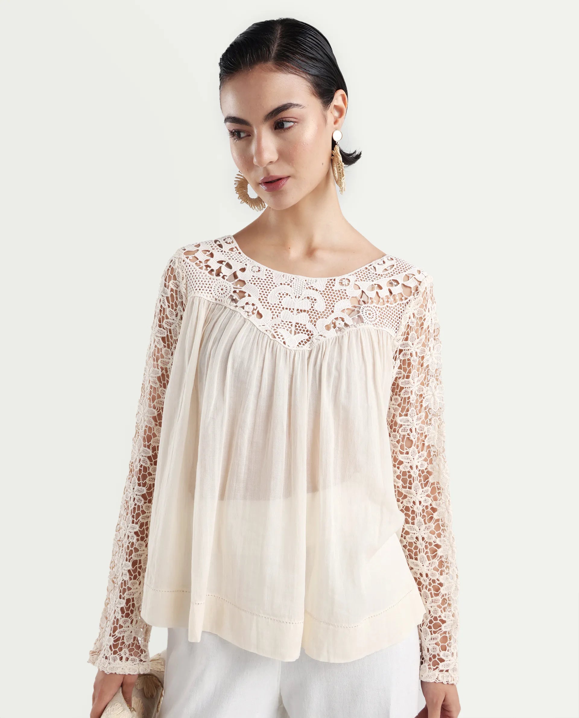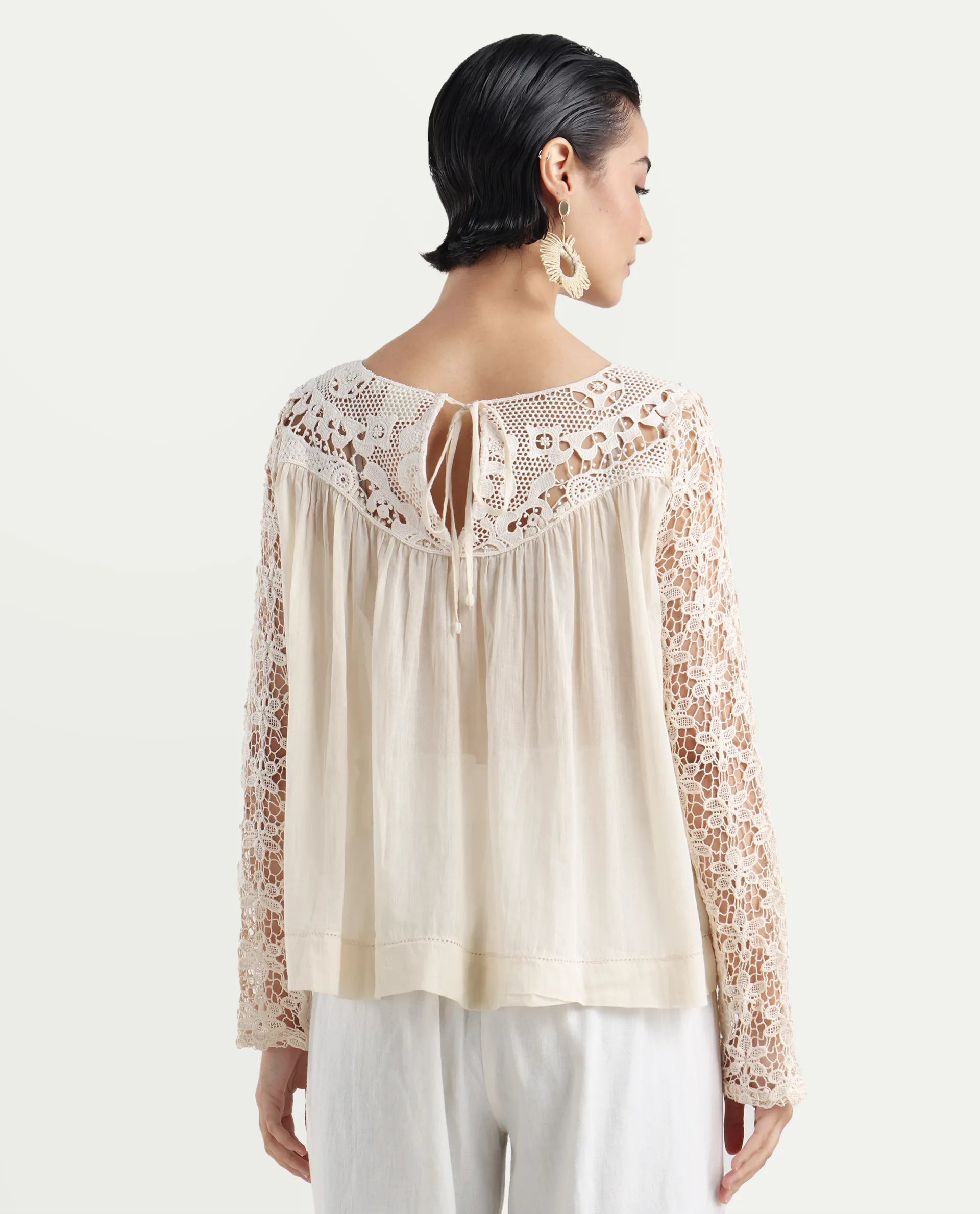 2. Elegant Lace Yoke: Features a delicate lace yoke detail, adding a touch of femininity and sophistication to the design.