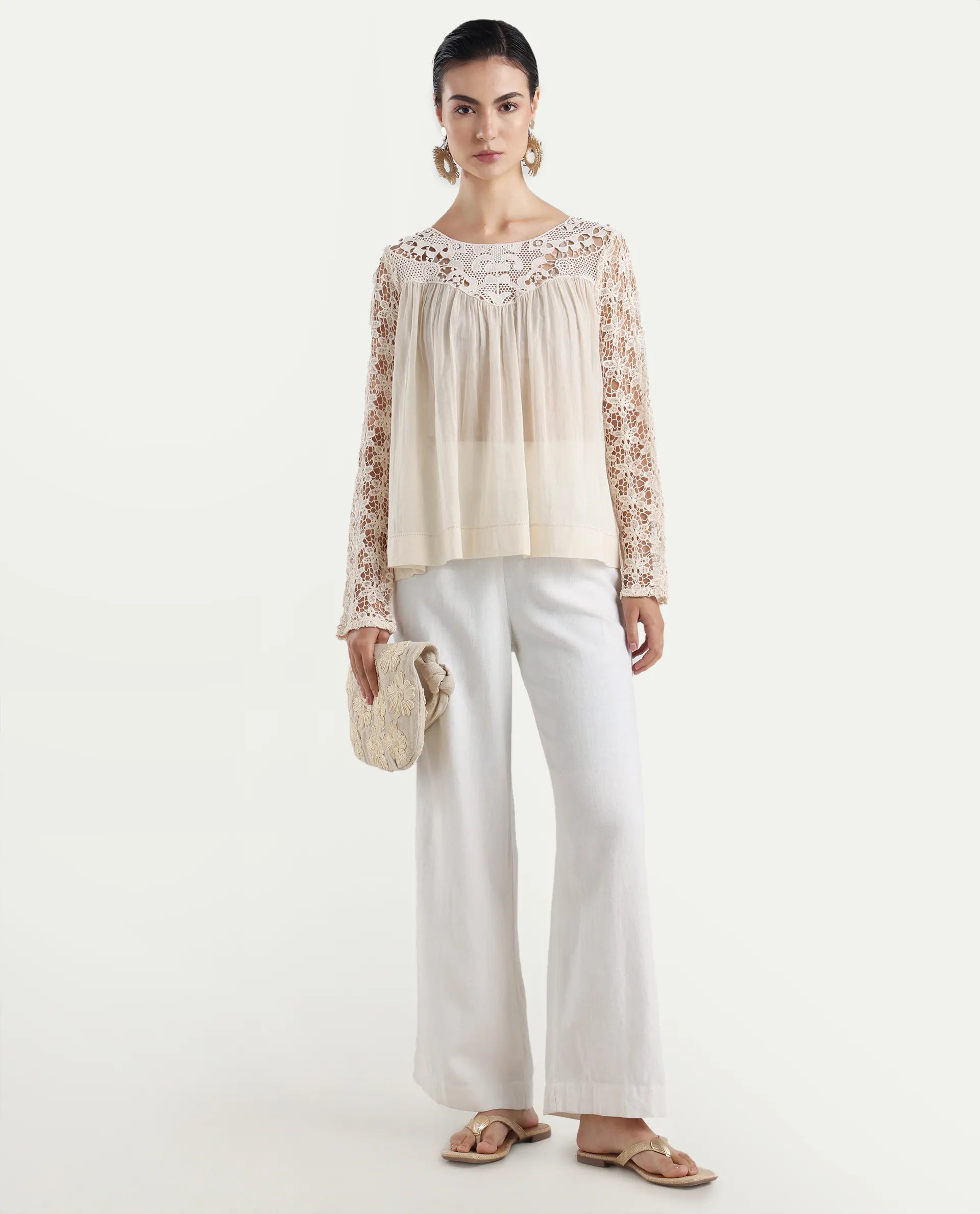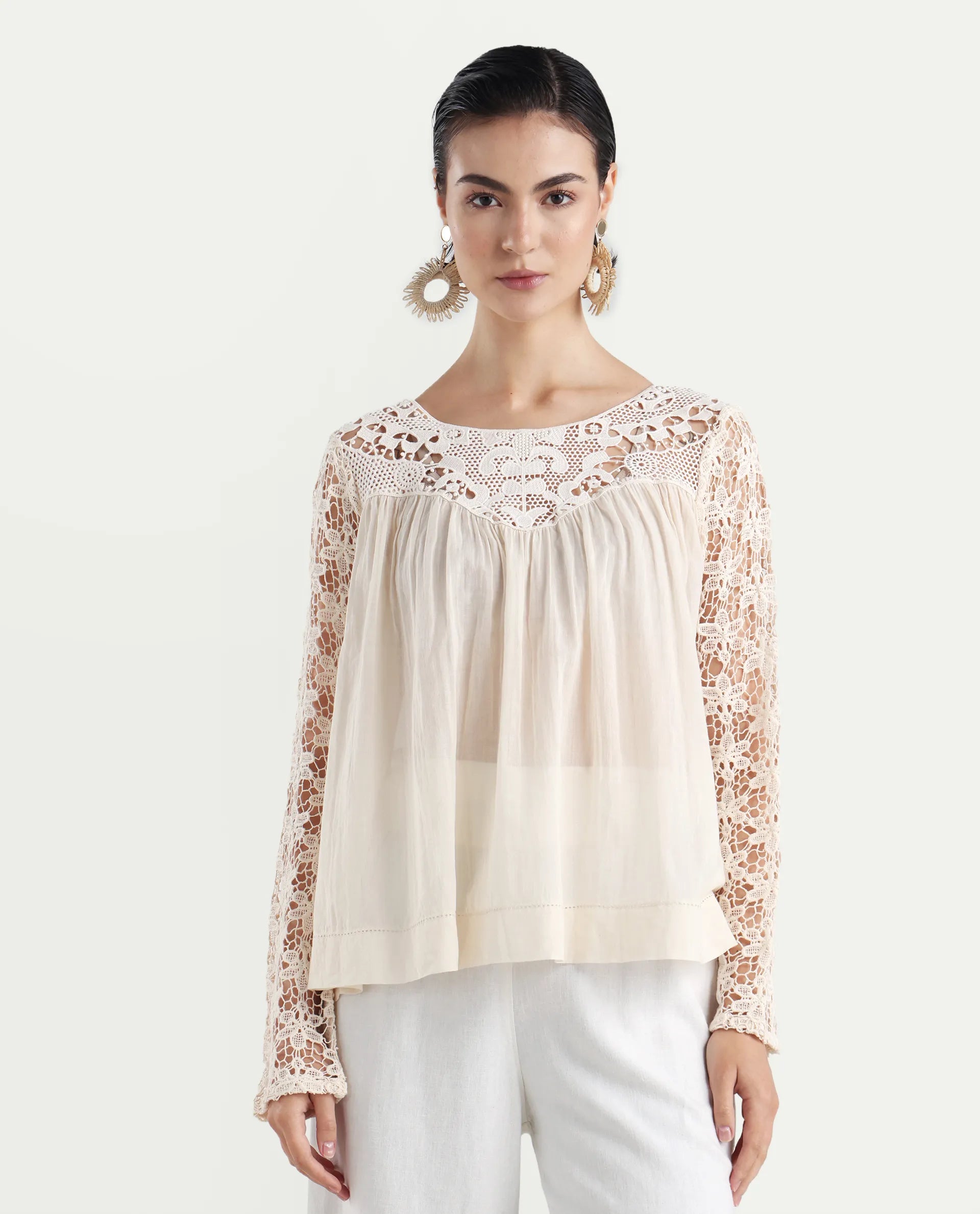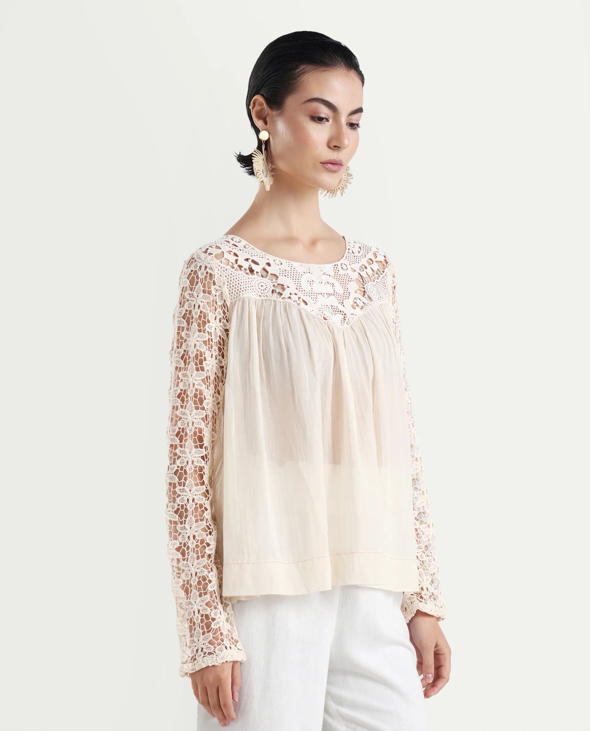 2. Elegant Lace Yoke: Features a delicate lace yoke detail, adding a touch of femininity and sophistication to the design.