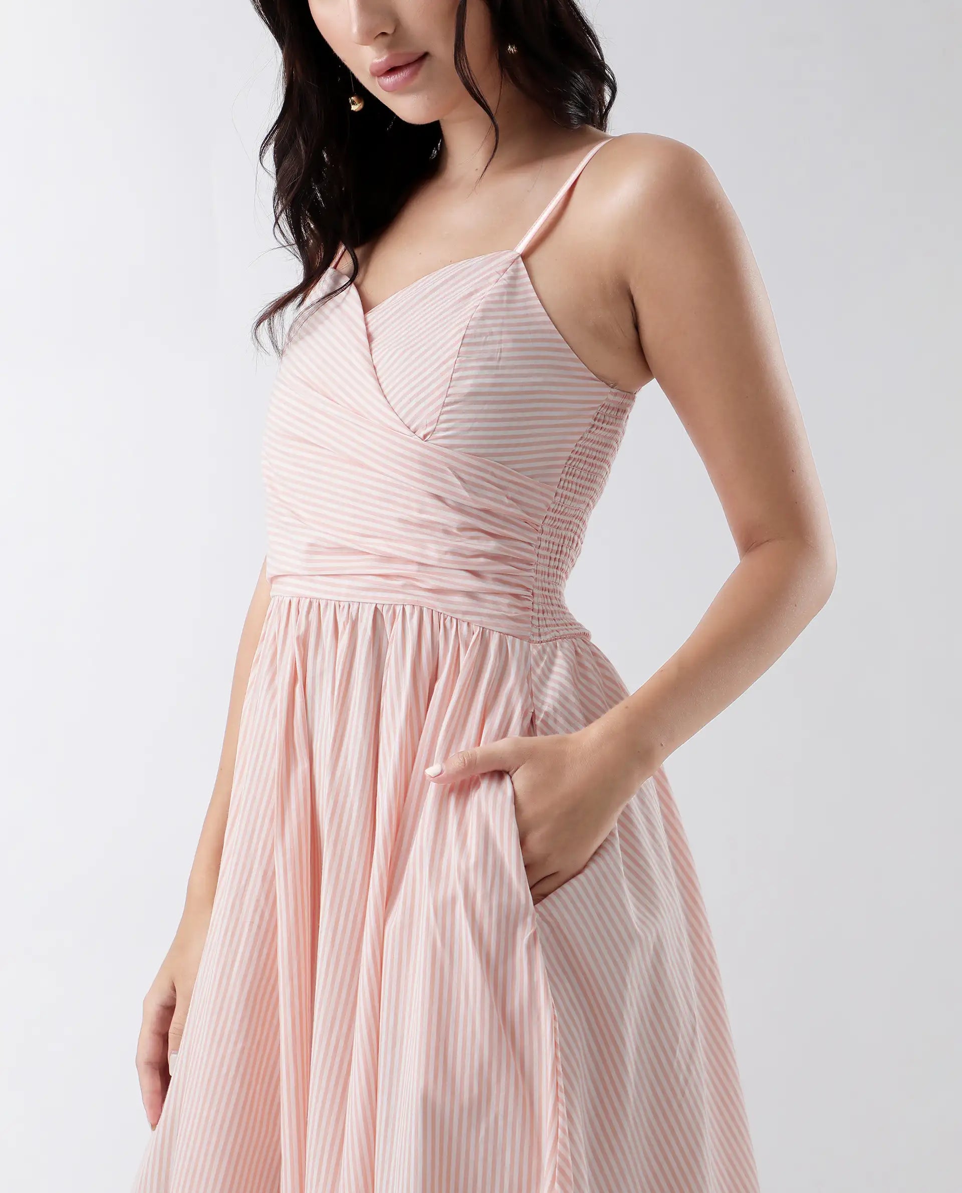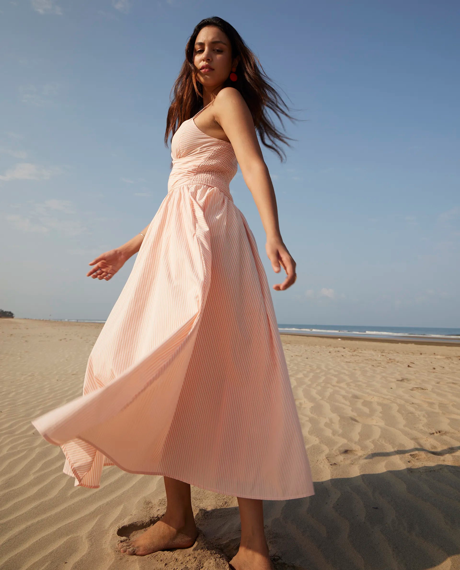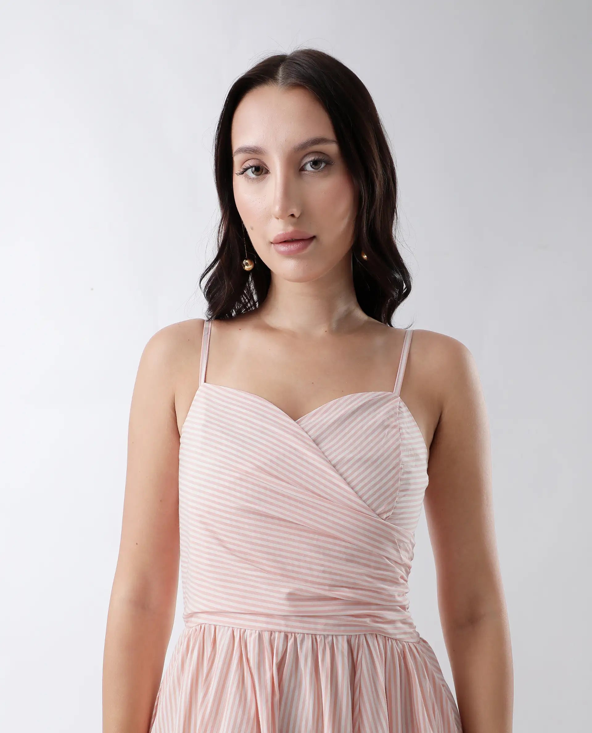 This Rareism Women Nuloon Dress features a soft, comfortable 100% cotton blend fabric, a stylish sweatheart neckline, and a flattering fit and flare design. The zipper closure and midi length make it a versatile and easy-to-wear dress, perfect for any occasion. Embrace your unique style with the trendy narrow stripes pattern.