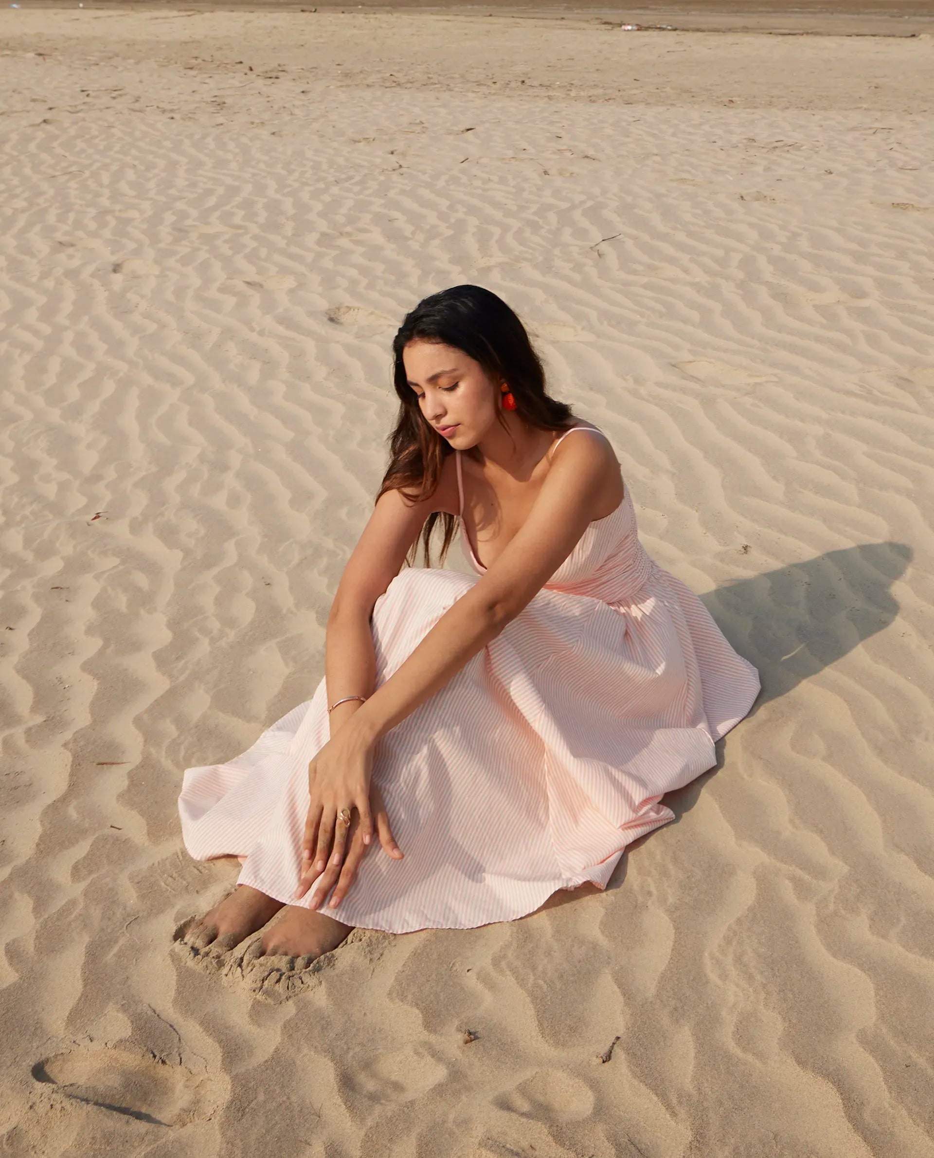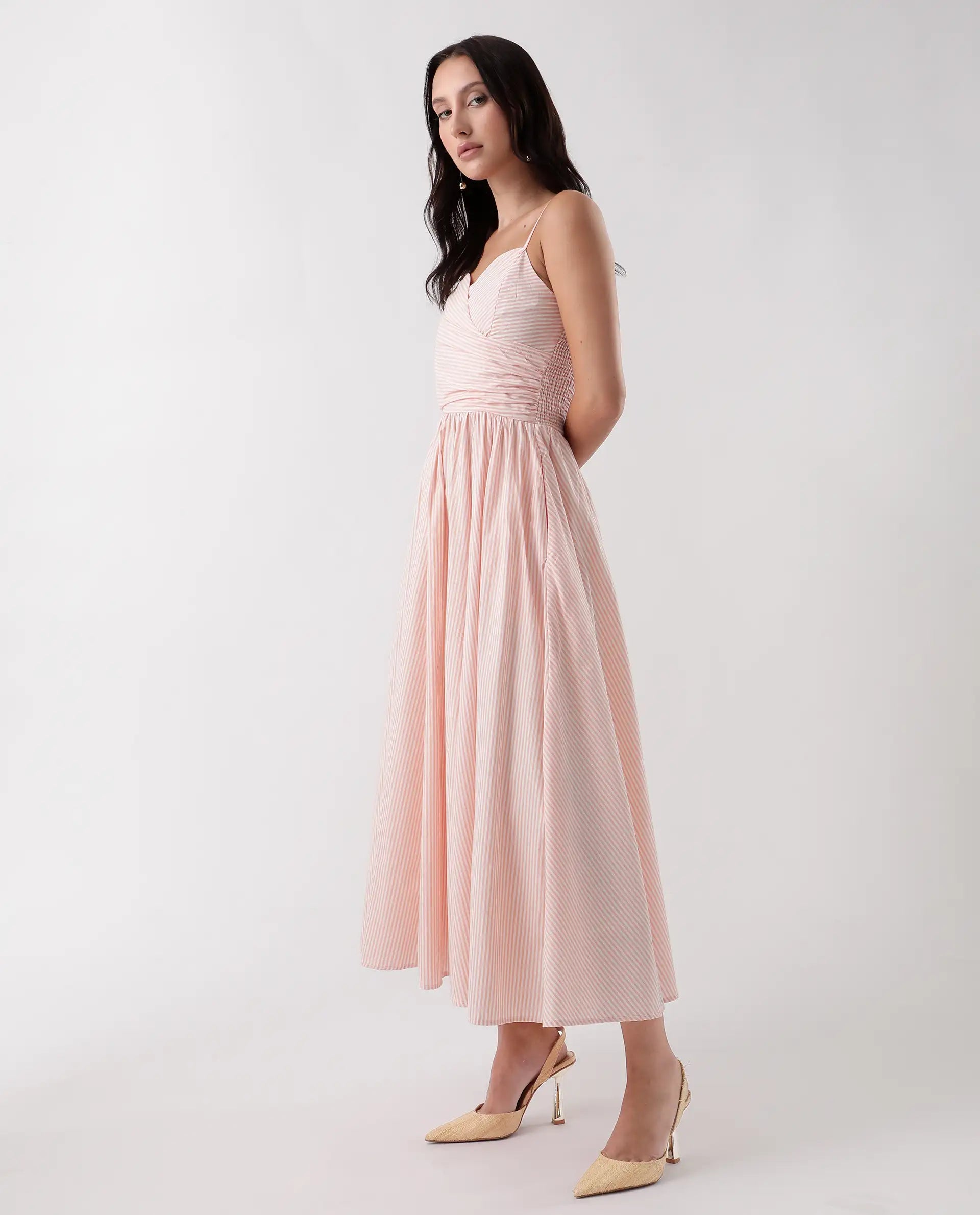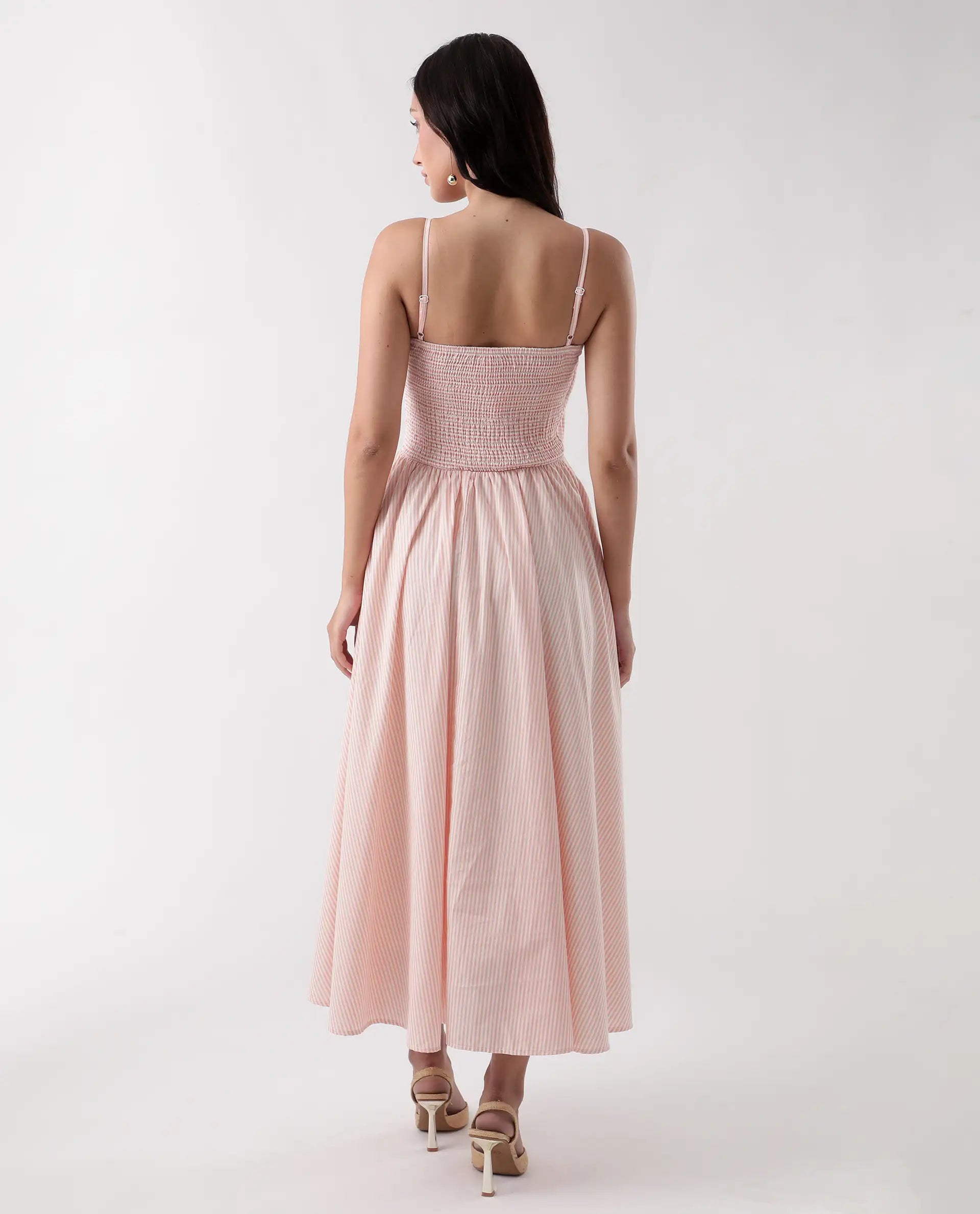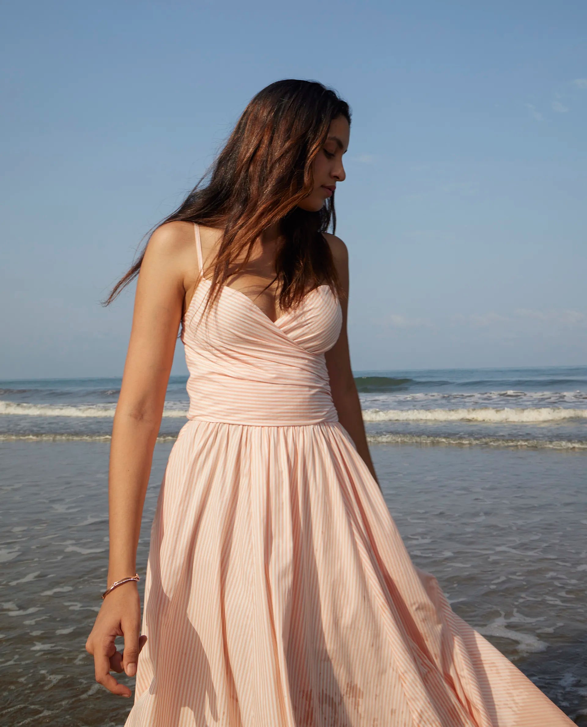This Rareism Women Nuloon Dress features a soft, comfortable 100% cotton blend fabric, a stylish sweatheart neckline, and a flattering fit and flare design. The zipper closure and midi length make it a versatile and easy-to-wear dress, perfect for any occasion. Embrace your unique style with the trendy narrow stripes pattern.