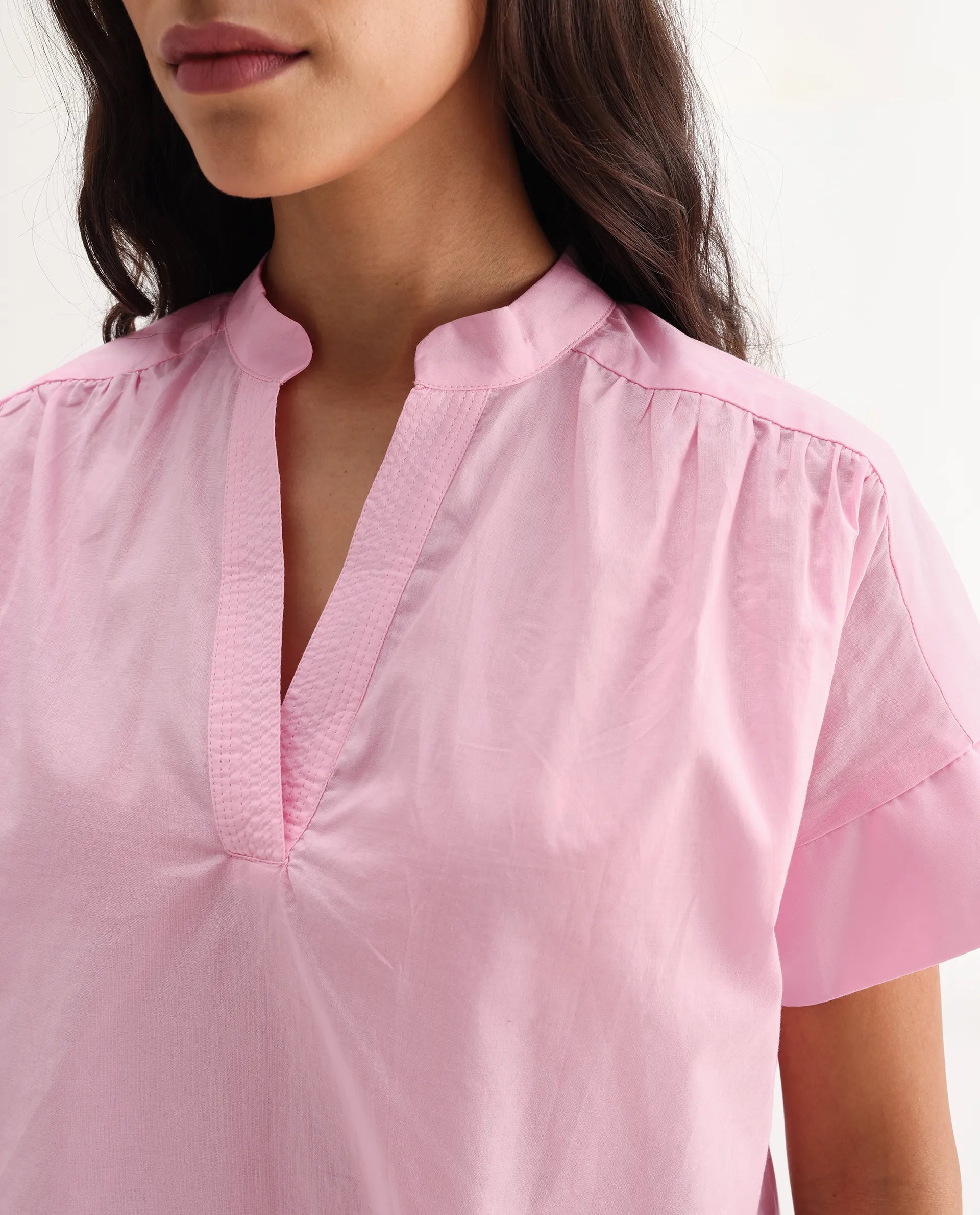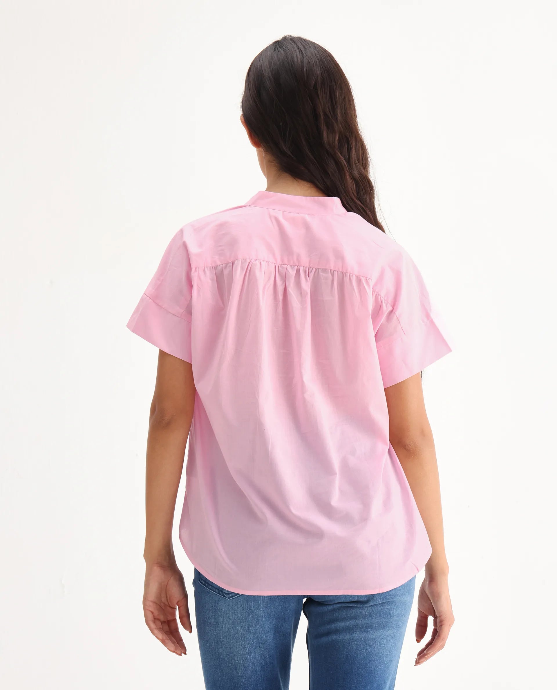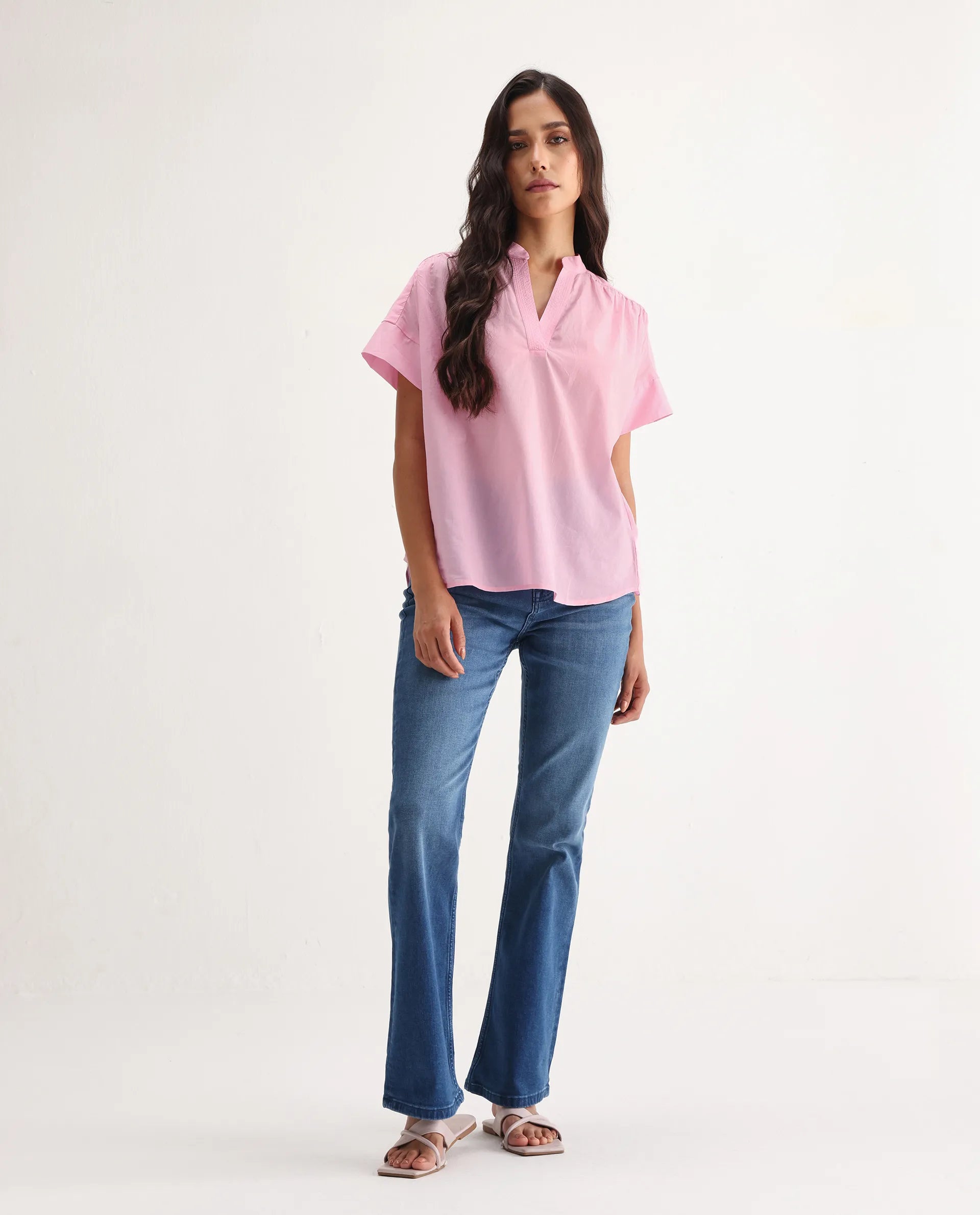 Elevate your wardrobe with the Rareism Women Nupto Pastel Pink Top, featuring a sophisticated mandarin collar and extended sleeves for a modern, polished look. Its relaxed fit ensures comfort throughout the day, while the plain pastel pink fabric offers versatile styling options. Perfect for both casual and semi-formal occasions, this top combines understated elegance with effortless wearability.