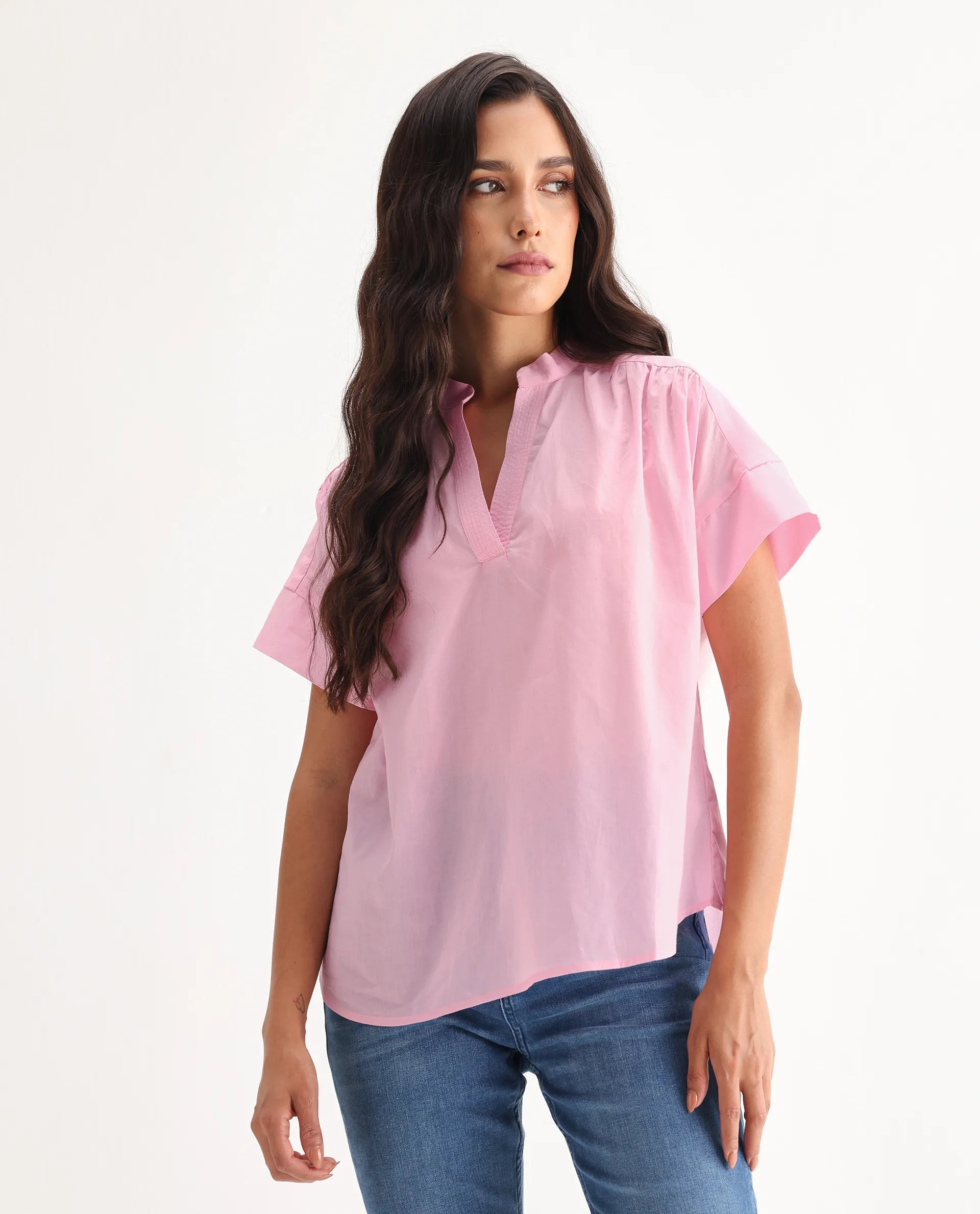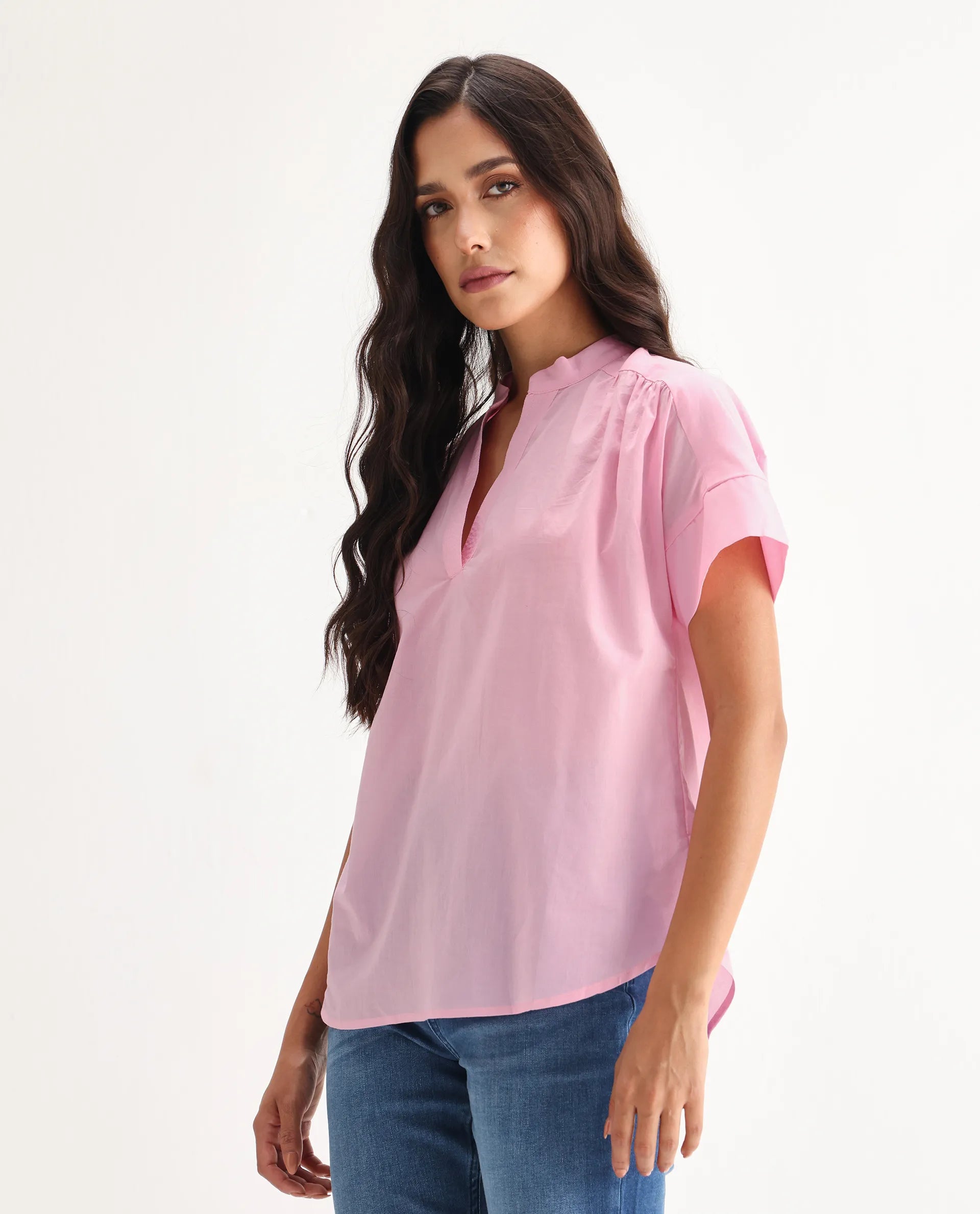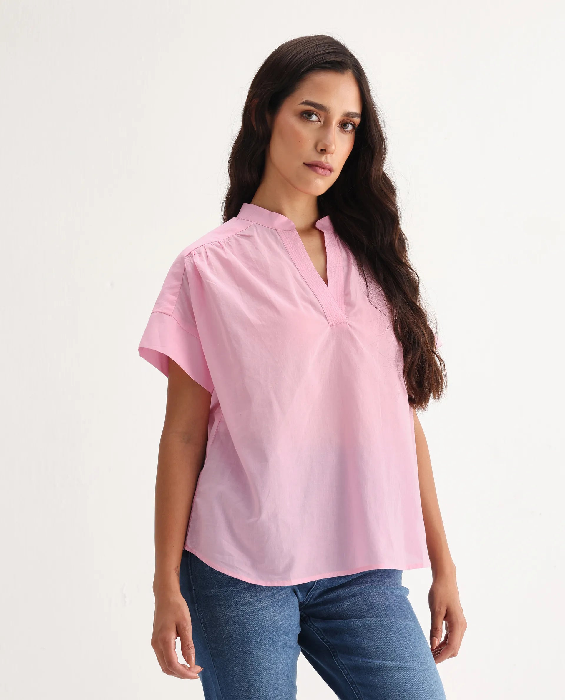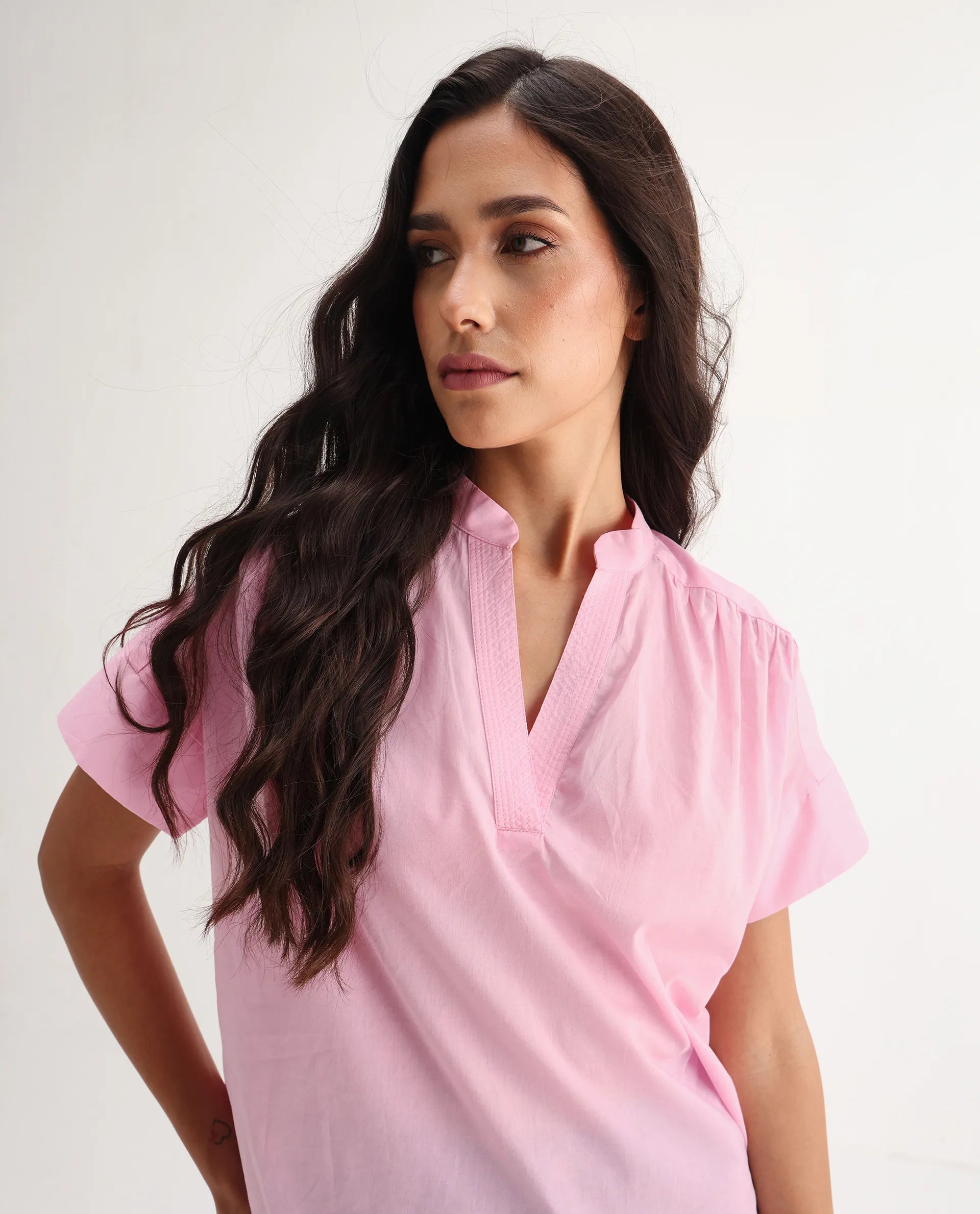 Elevate your wardrobe with the Rareism Women Nupto Pastel Pink Top, featuring a sophisticated mandarin collar and extended sleeves for a modern, polished look. Its relaxed fit ensures comfort throughout the day, while the plain pastel pink fabric offers versatile styling options. Perfect for both casual and semi-formal occasions, this top combines understated elegance with effortless wearability.