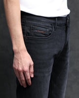 Rare Rabbit Men's Orleans Black Cotton Plain Hawk Slim Fit Jeans