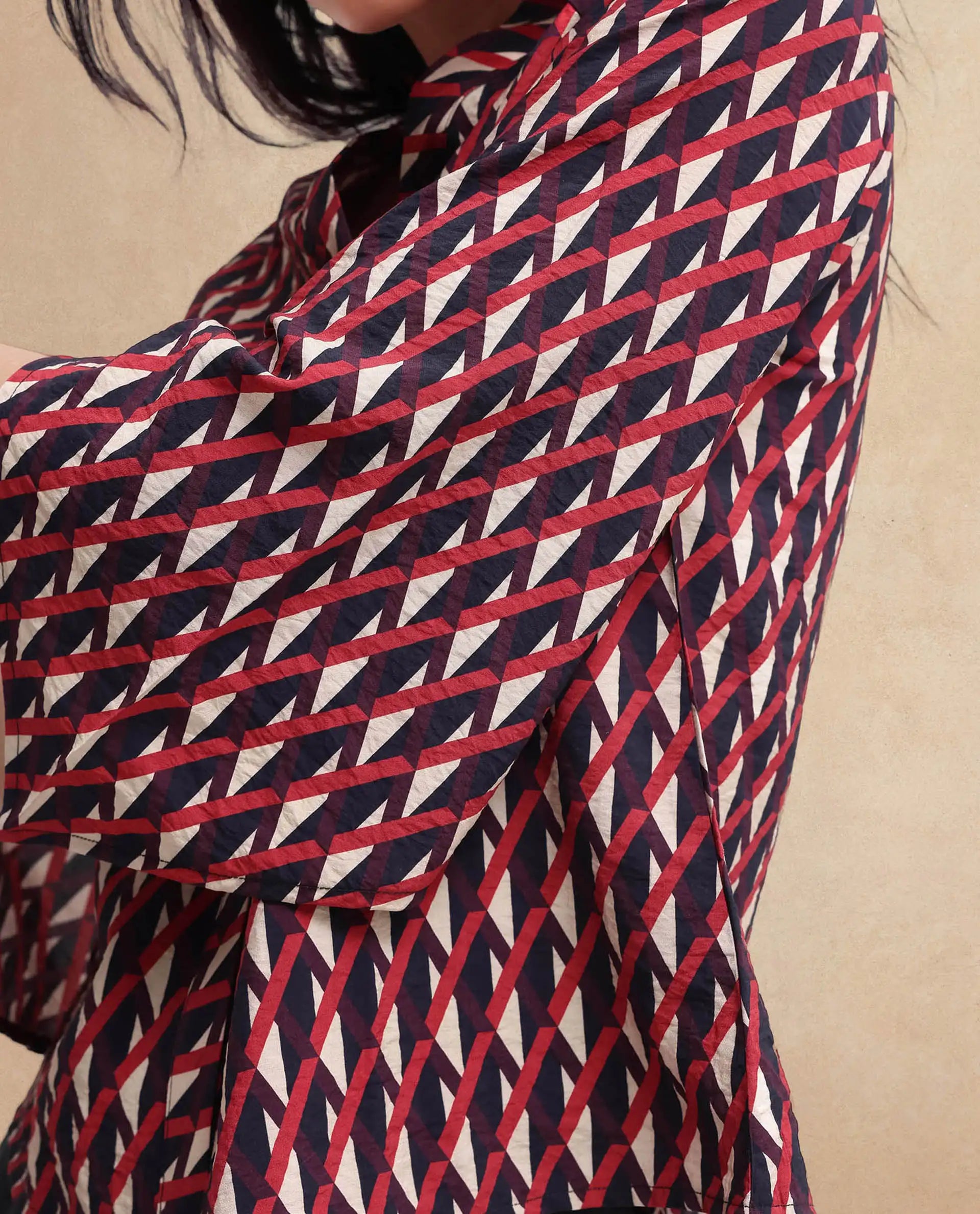 6. Statement Piece: The combination of geometric print and asymmetrical sleeve makes this top a standout choice.