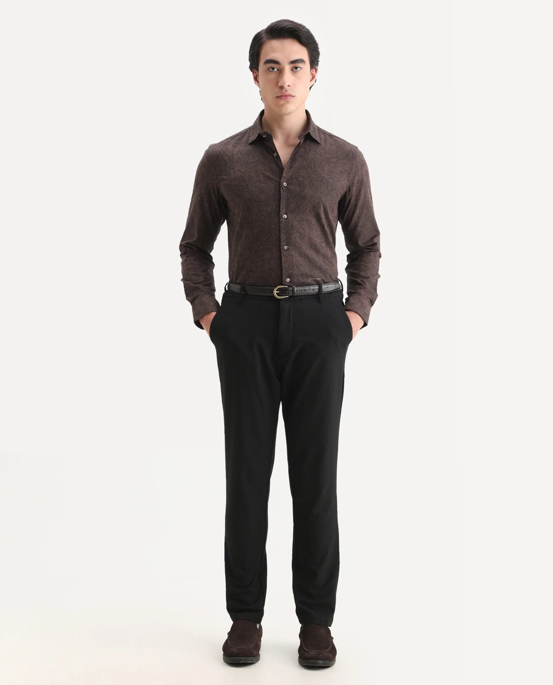 This mens shirt from RARE RABBIT carries a contemporary and minimal charm. Its neat styling keeps the outfit looking fresh and composed. A reliable pick for someone who prefers a soft, modern aesthetic.