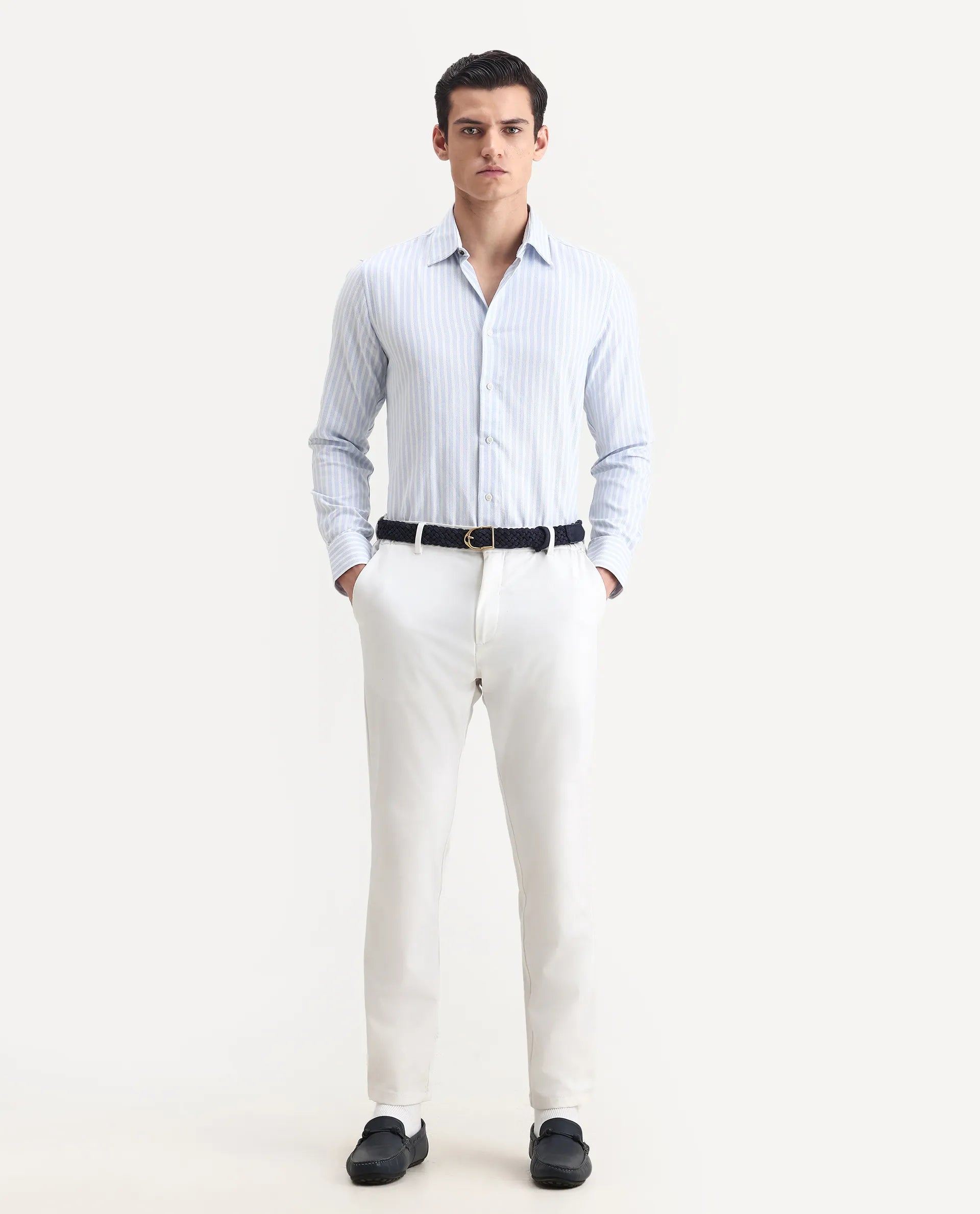 This mens shirt from RARE RABBIT carries a contemporary and minimal charm. Its neat styling keeps the outfit looking fresh and composed. A reliable pick for someone who prefers a soft, modern aesthetic.