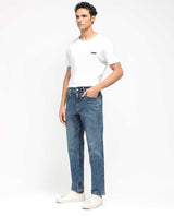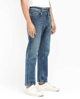 Rare Rabbit Men's Polin Dusky Blue Cotton Plain Morris Regular Fit Jeans