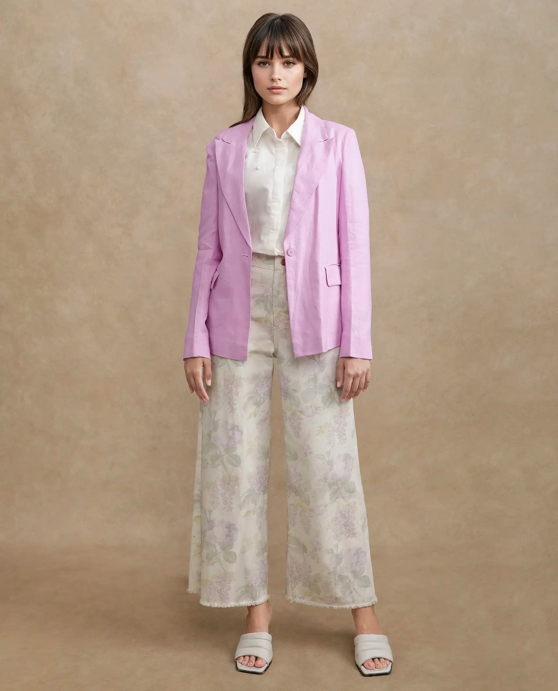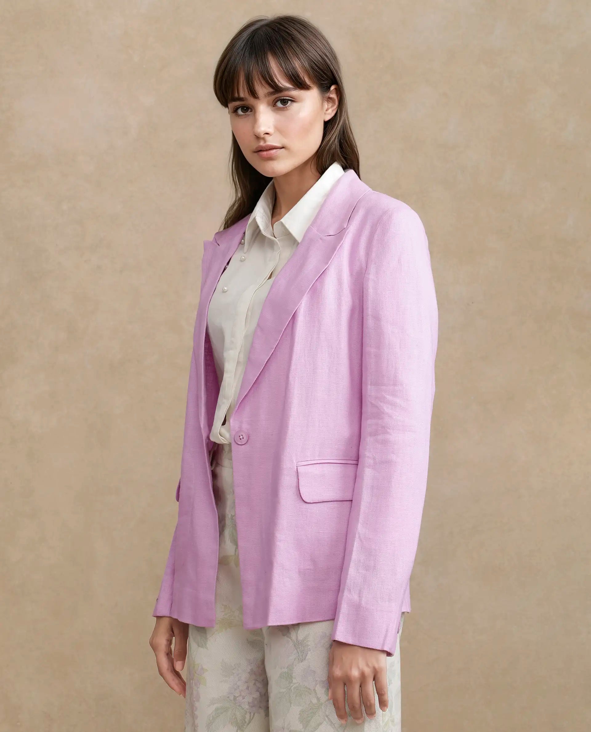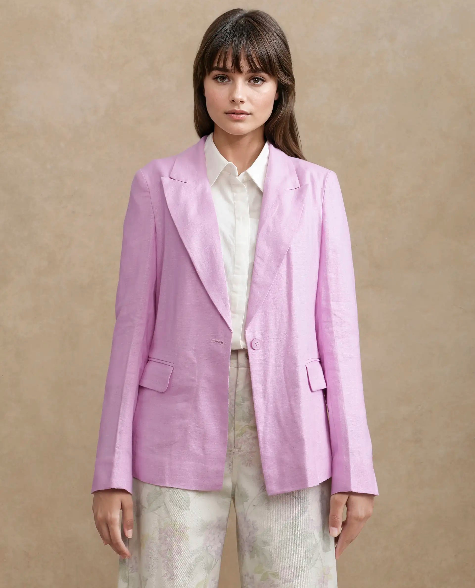 Introducing the Rareism Women Precy Pink Blazer, expertly crafted with a blend of 55% viscose and 45% linen fabric. Featuring full sleeves, a lapel neck design, and a button closure, this regular plain blazer is the perfect blend of style and comfort. Elevate your wardrobe with this versatile and high-quality piece.