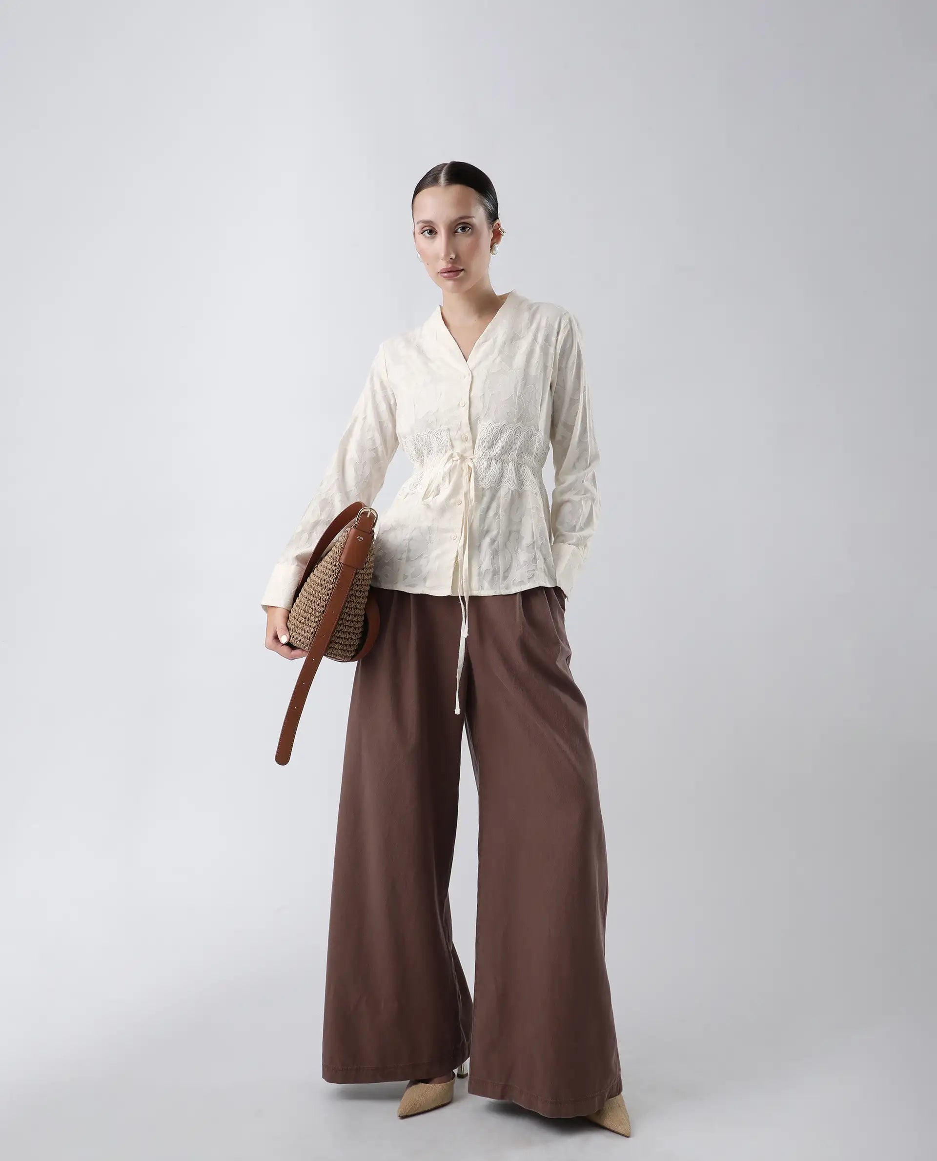 This Rareism cuffed sleeve top is made of soft, high-quality cotton fabric. The build-up neck and button details give it a chic touch. Perfect for any occasion, this top is versatile and easy to style. Upgrade your wardrobe with this must-have piece.